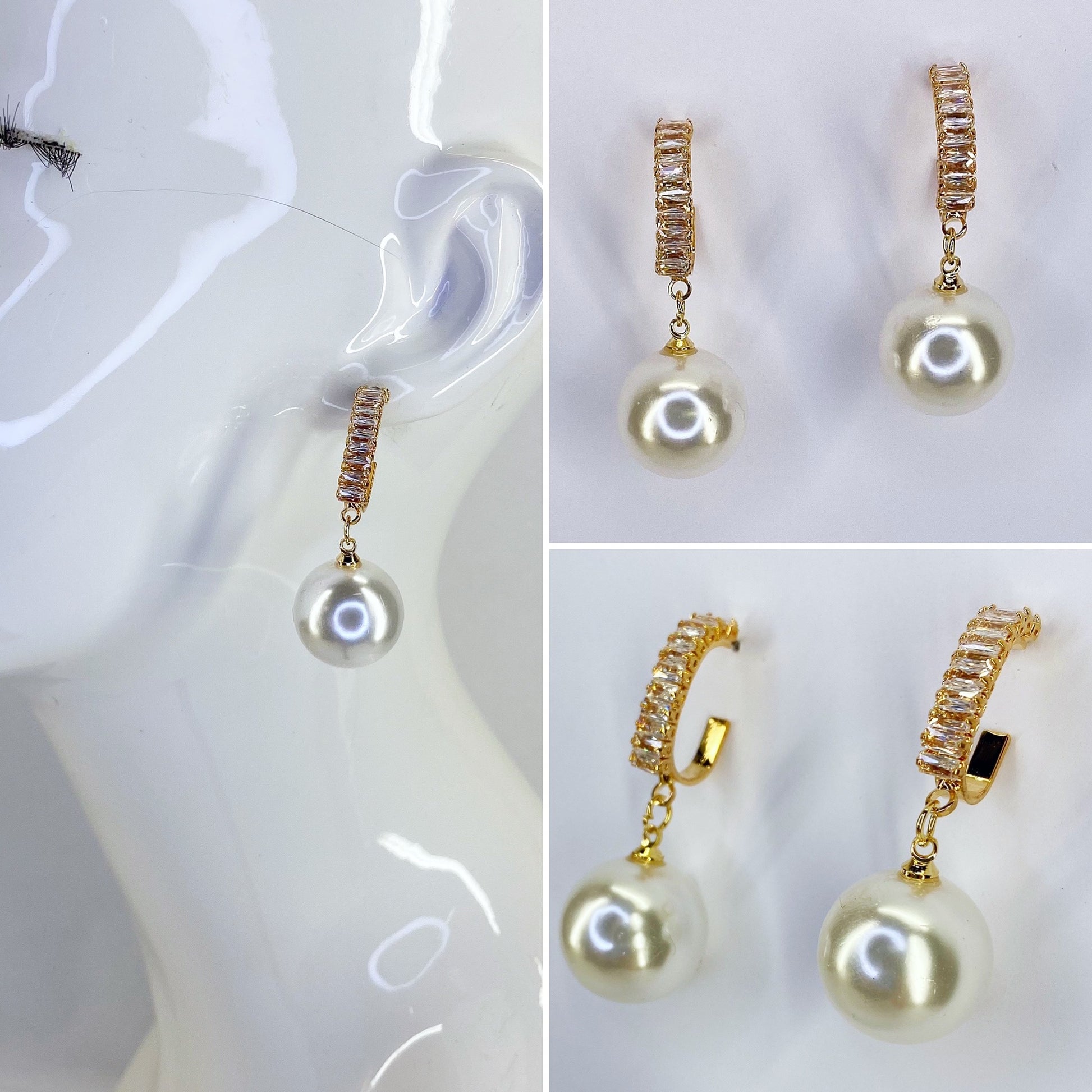 Add a touch of elegance to your look with these stunning Drop Dangle Pearl Earrings adorned with sparkling rhinestones.