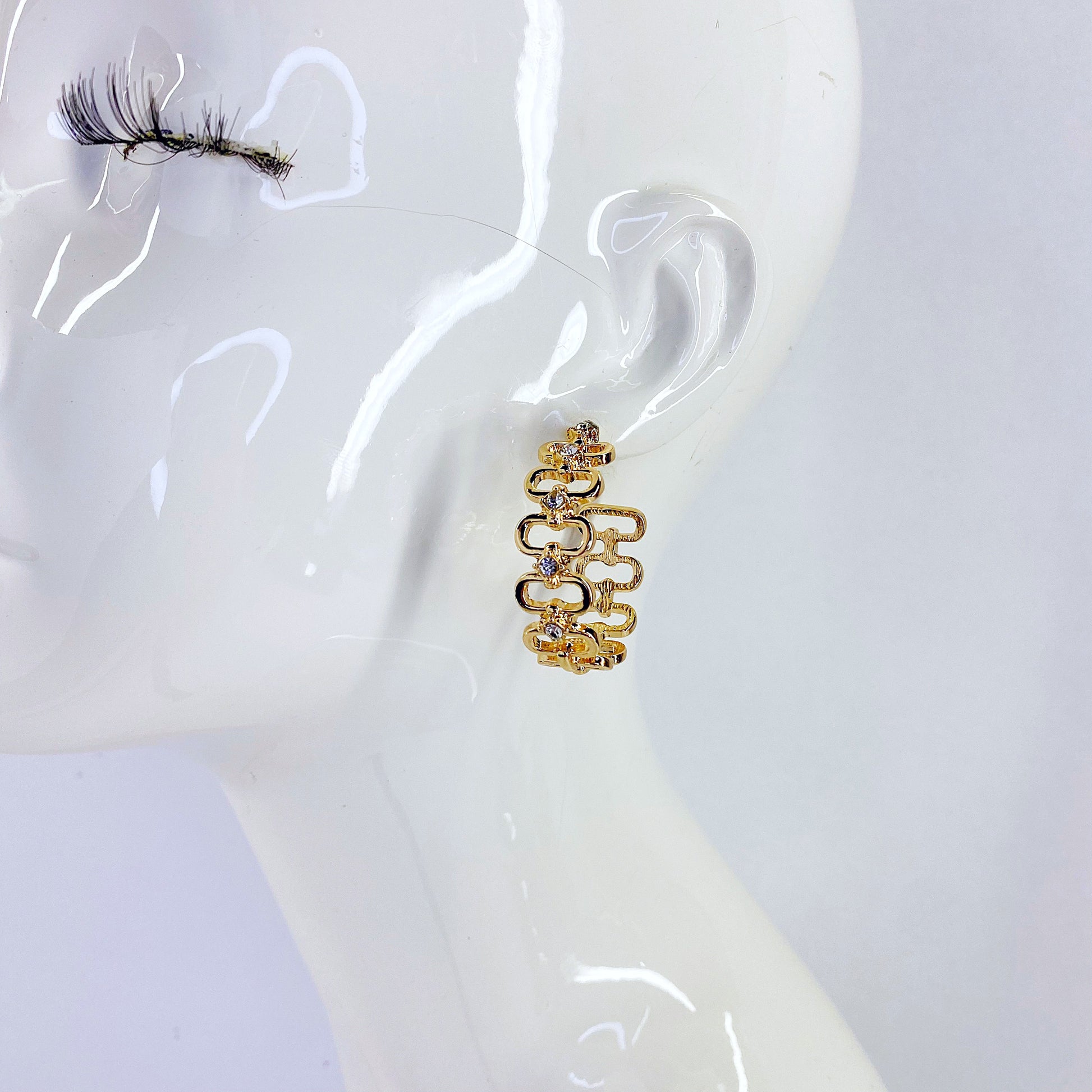 Link Hoop Earrings adorned with a beautiful stone or pearl.