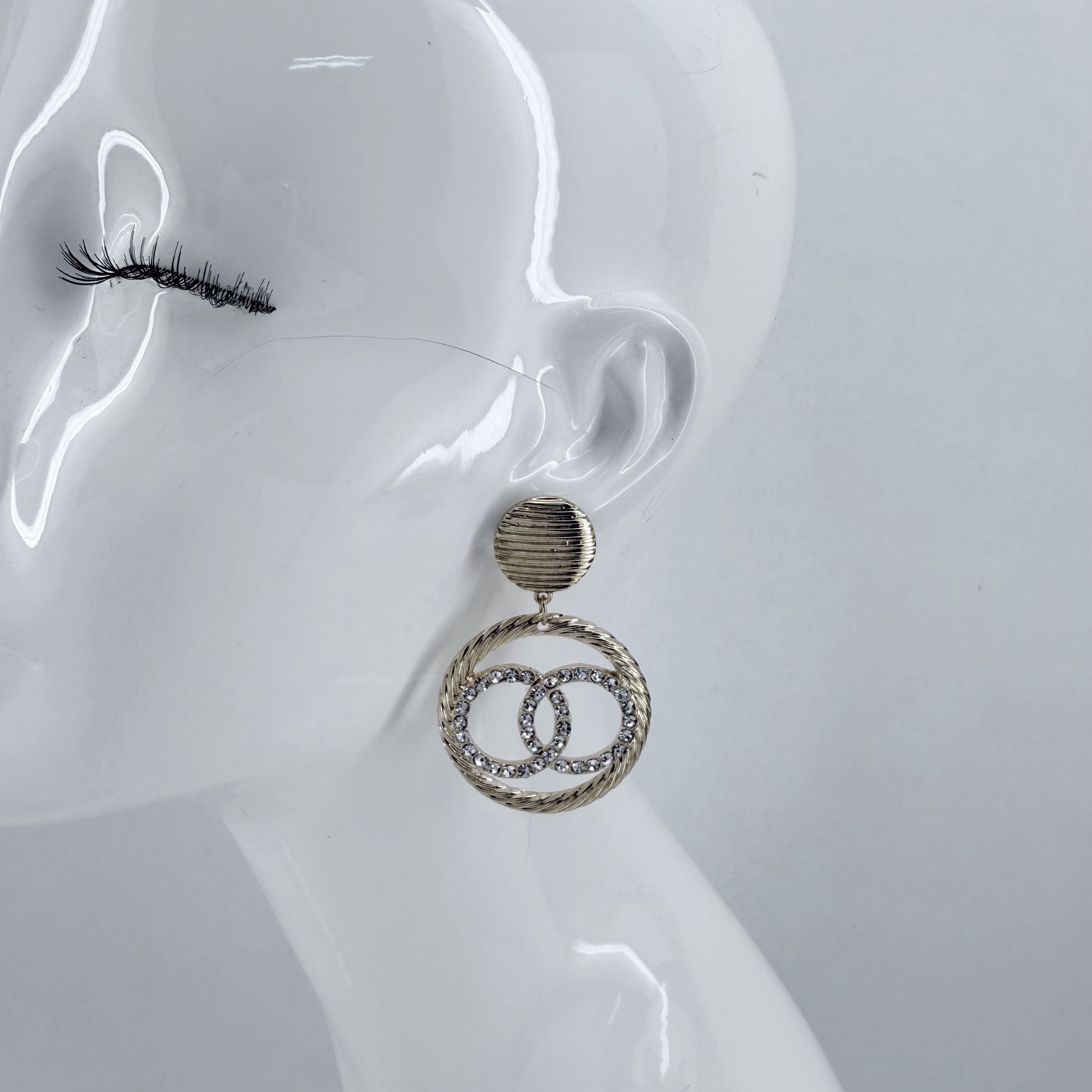 Make a statement with these stunning Post Back Earrings featuring a Double Circle Designer-Inspired Dangle and sparkling rhinestones. Elevate your style and feel confident with this unique and eye-catching accessory.