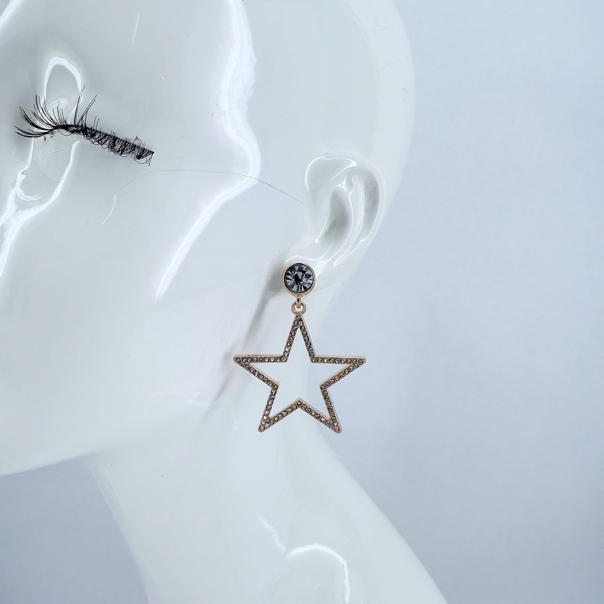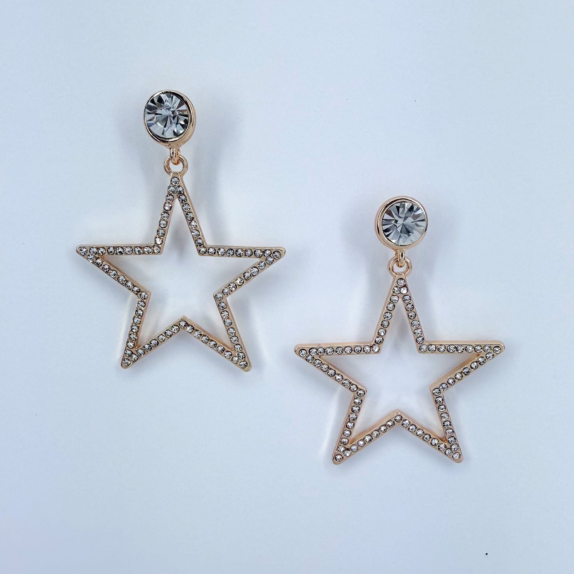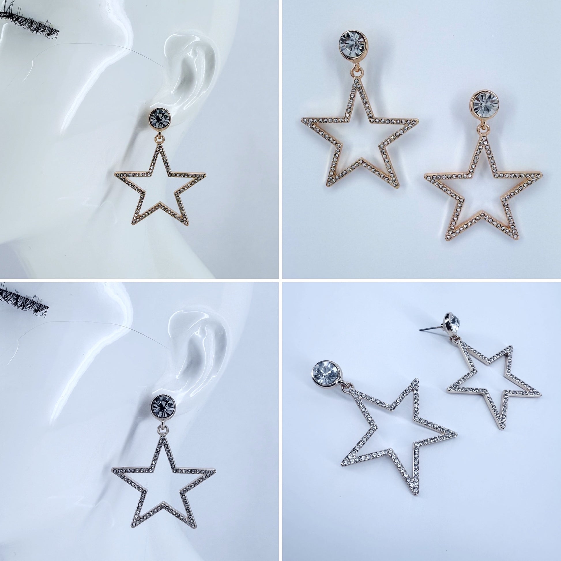 Gold or Silver Finish with clear Rhinestones Drop Dangle Star Shape Earrings