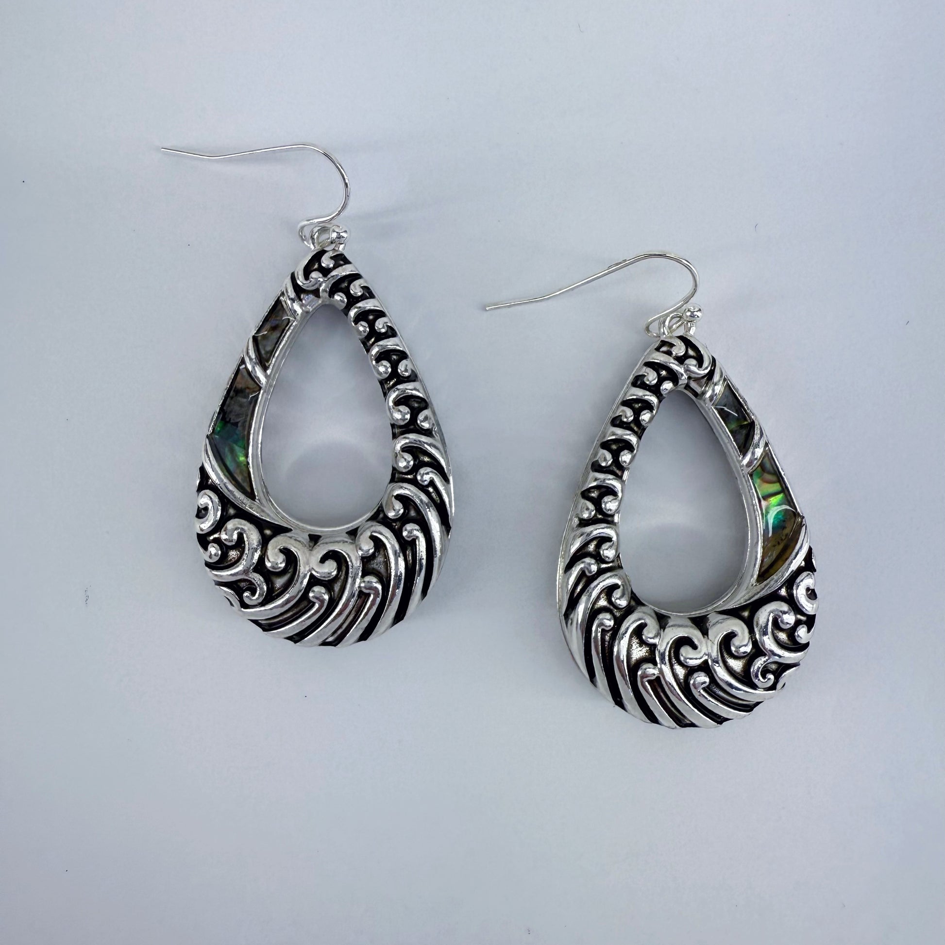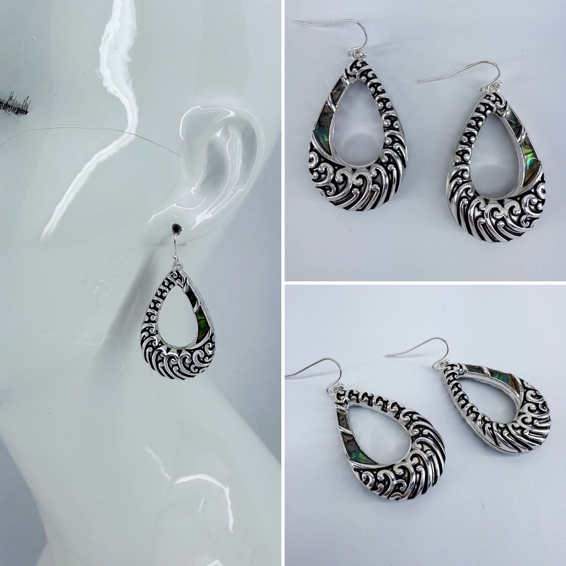 Elevate your style with these silver-finished fish hook earrings featuring a custom Avalone teardrop dangle design, perfect for adding a touch of elegance to any outfit.
