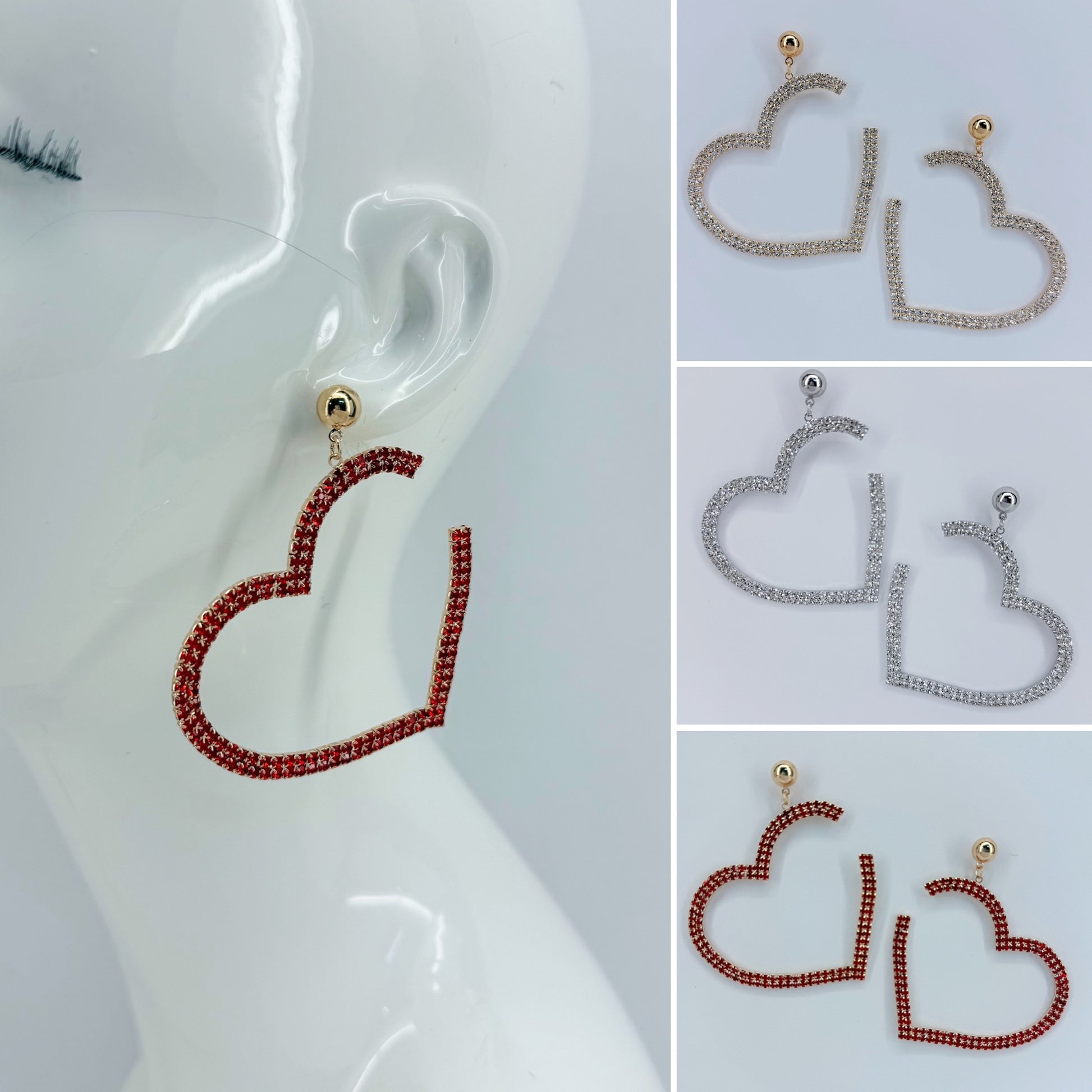 Add an extra touch of glamour to your outfit with the Post Back Heart Rhinestone Dangle Design, available in stunning gold, silver, or fiery red rhinestones!