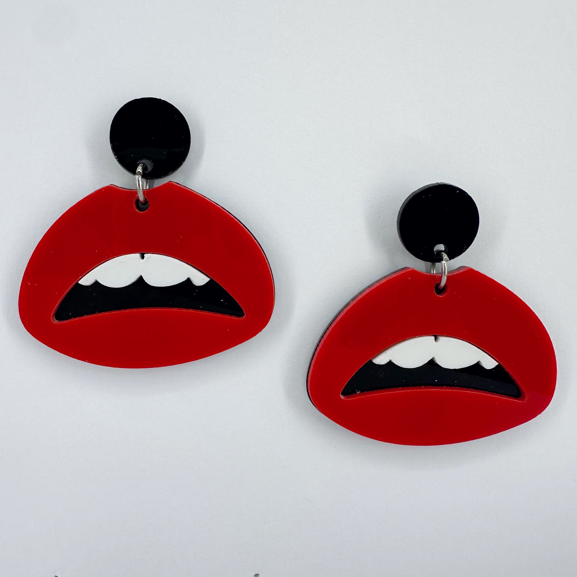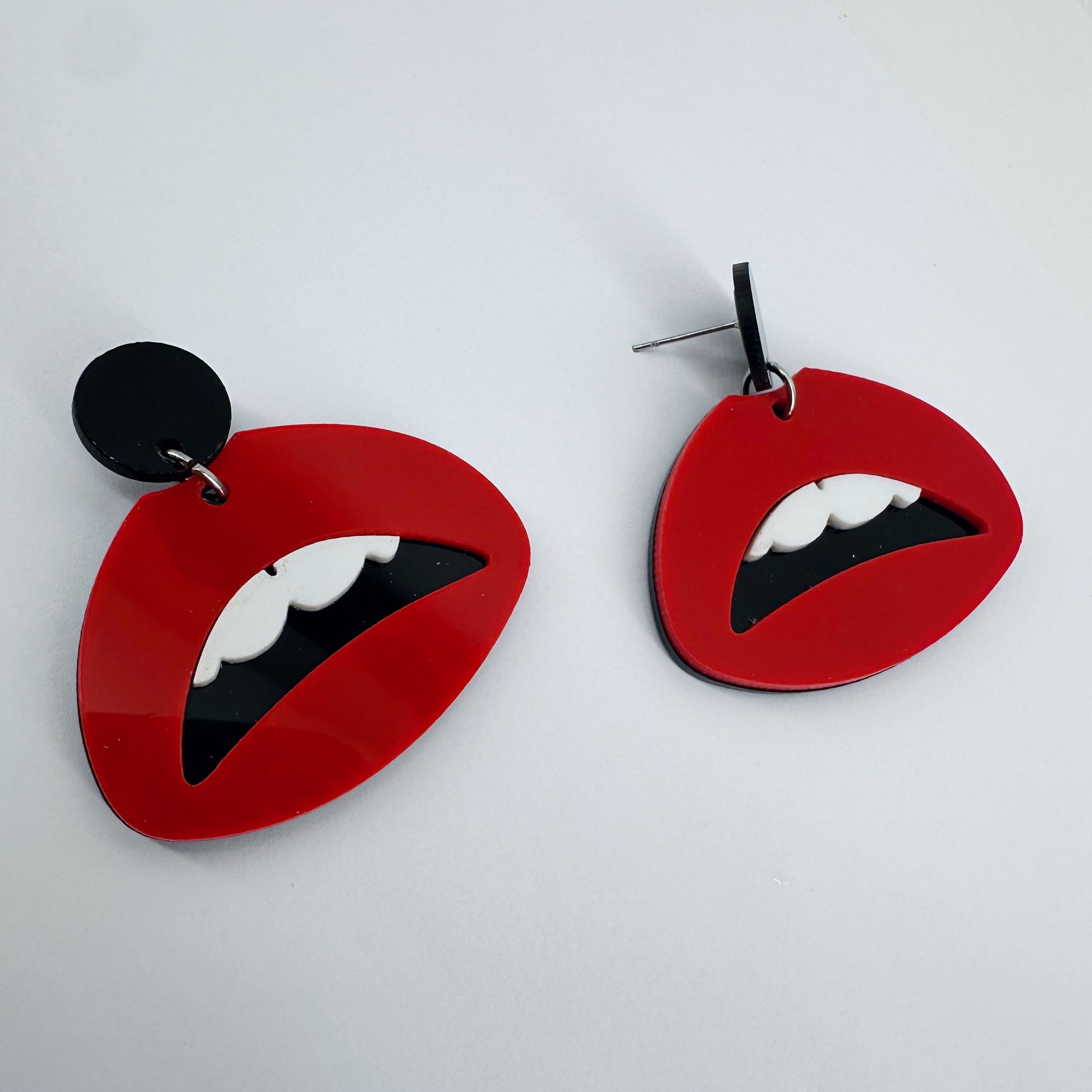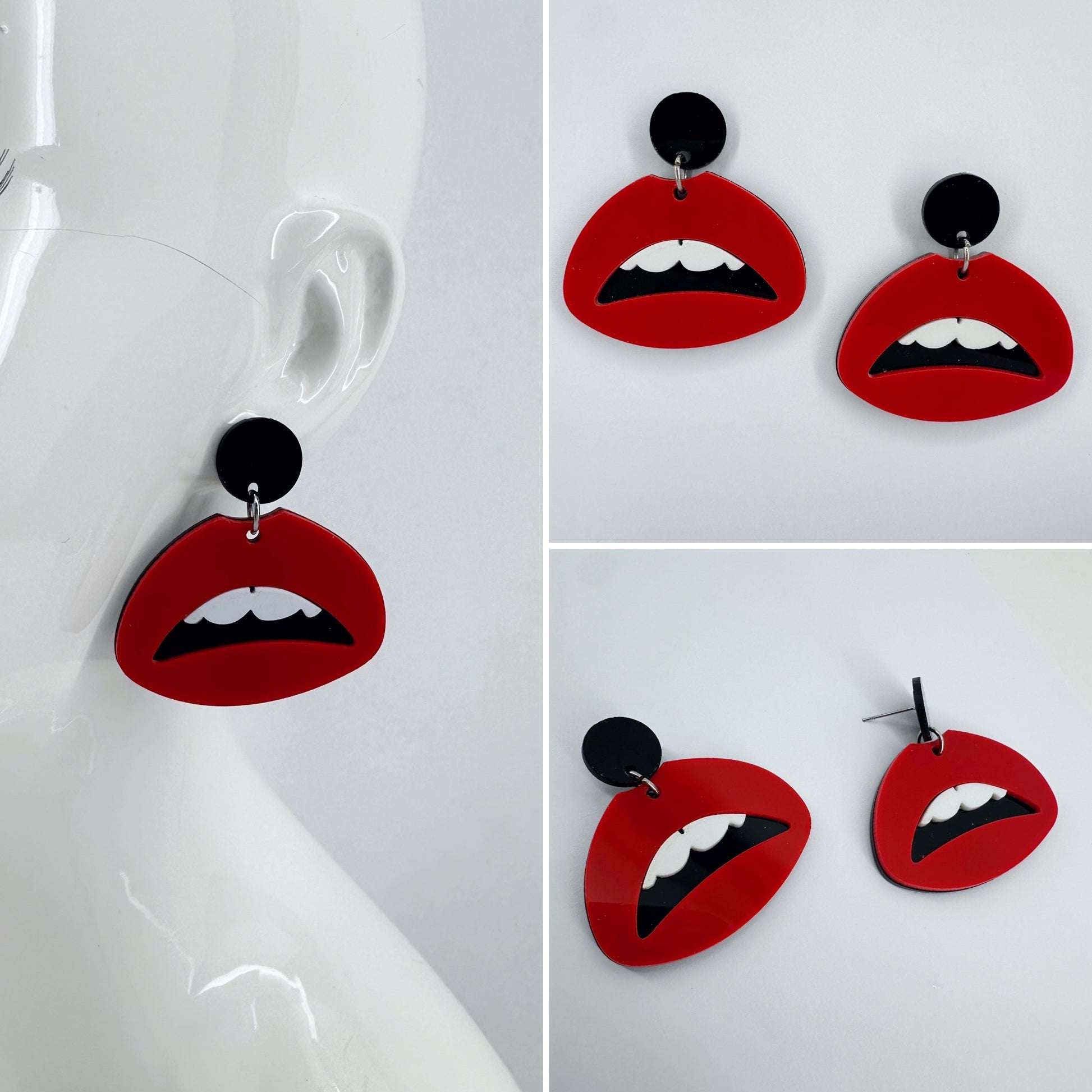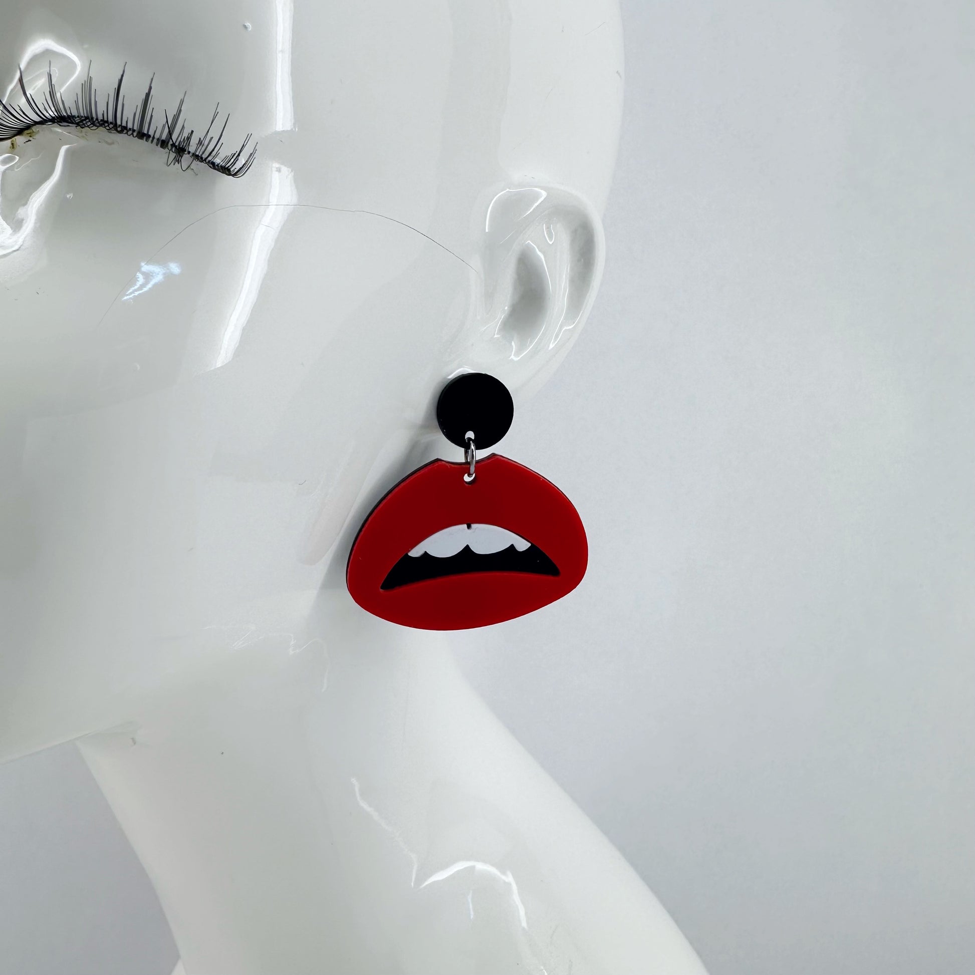 Enhance your elegance with these post back earrings featuring a bold red lips acrylic design.