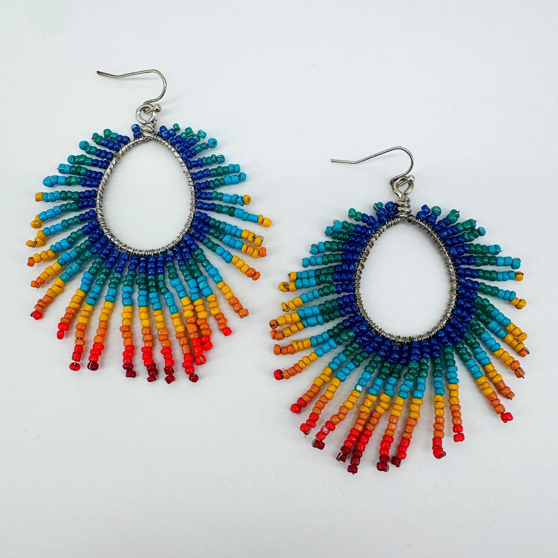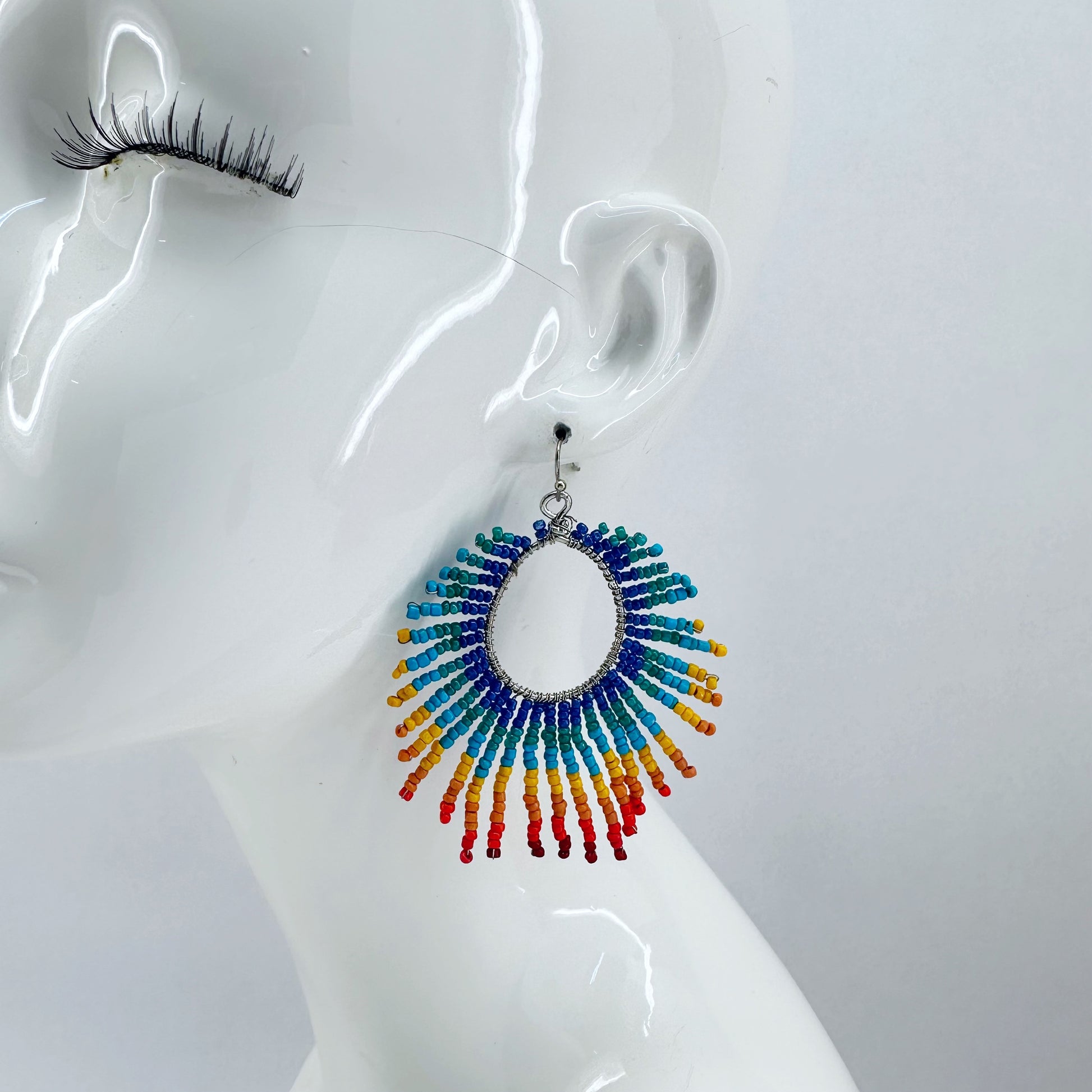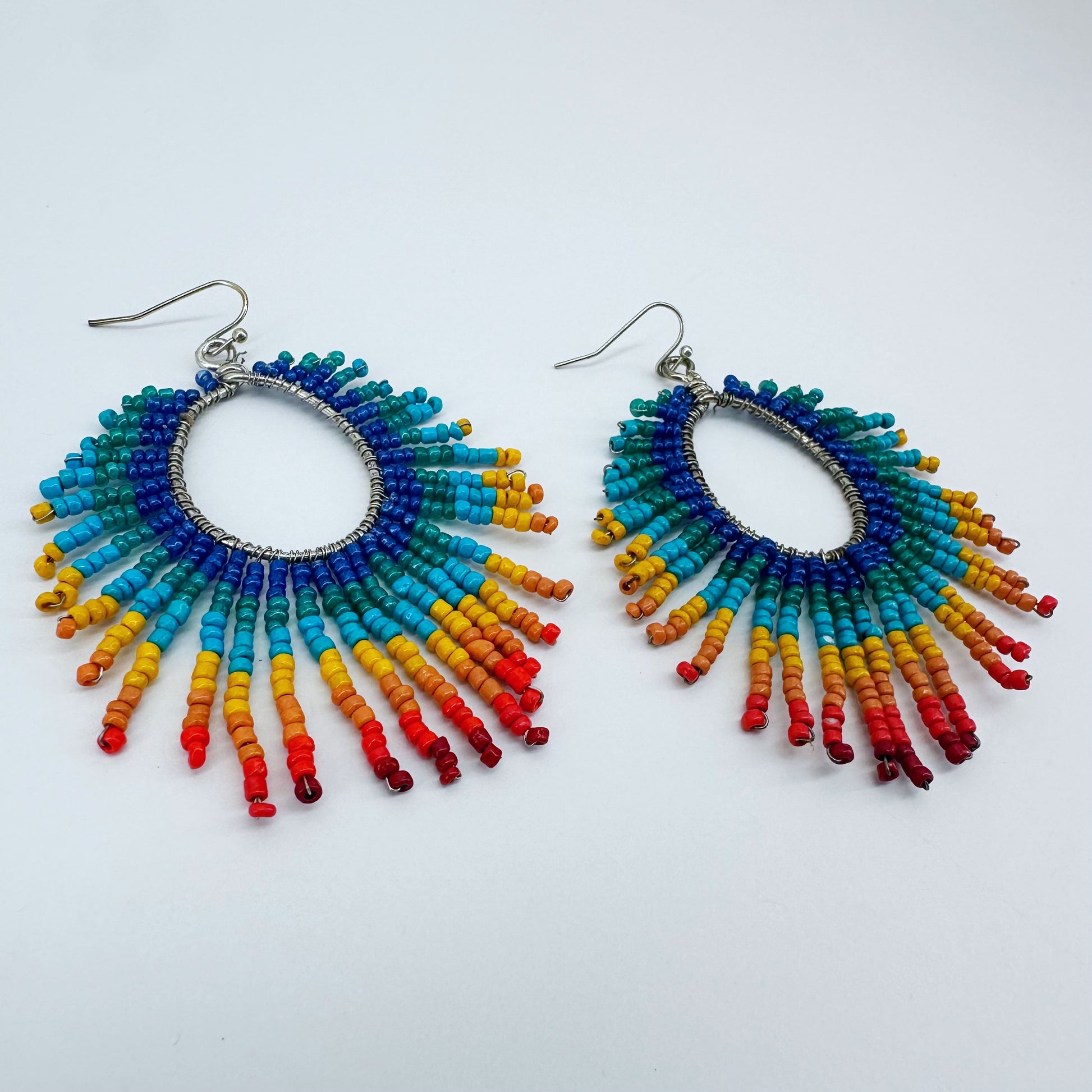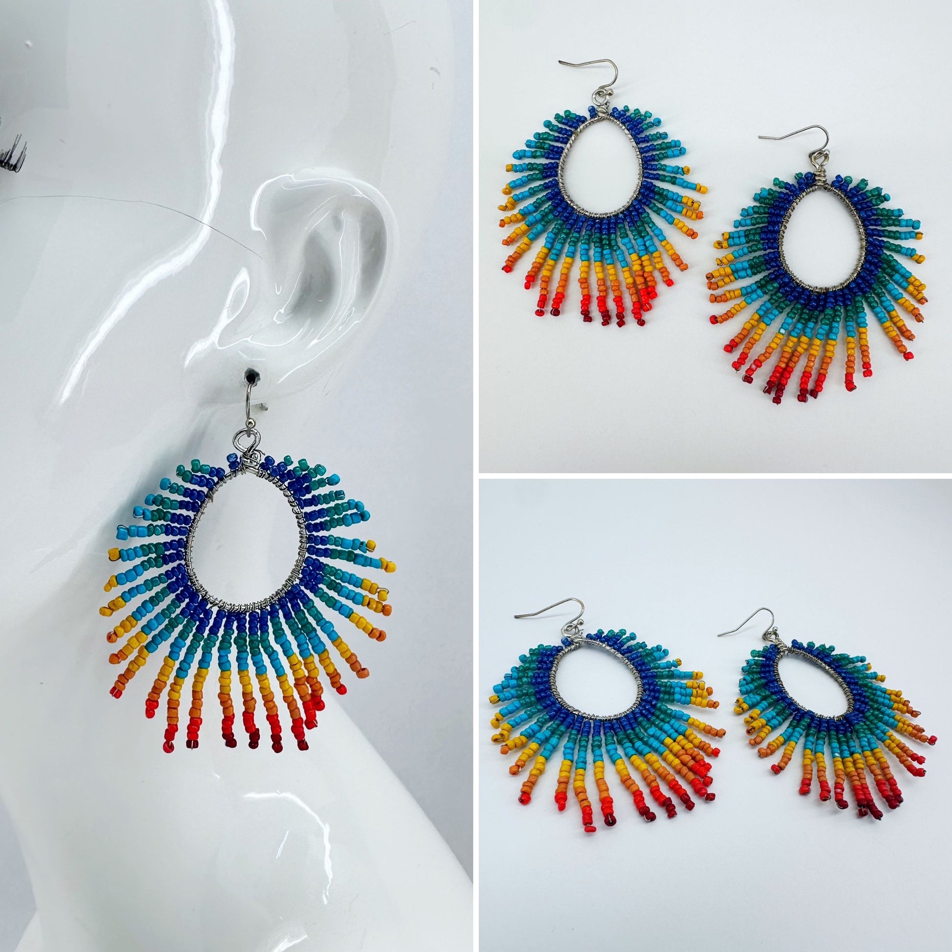 Multicolor Fish Hook Handmade Seed Bead Teardrop Earring