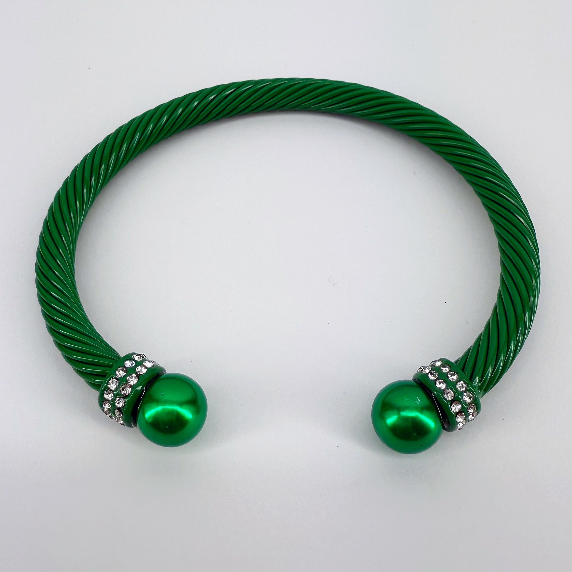 Elevate your style with this stunning cable bracelet, adorned with sparkling rhinestones for a designer-inspired look that captures attention and adds a touch of elegance to any outfit.
