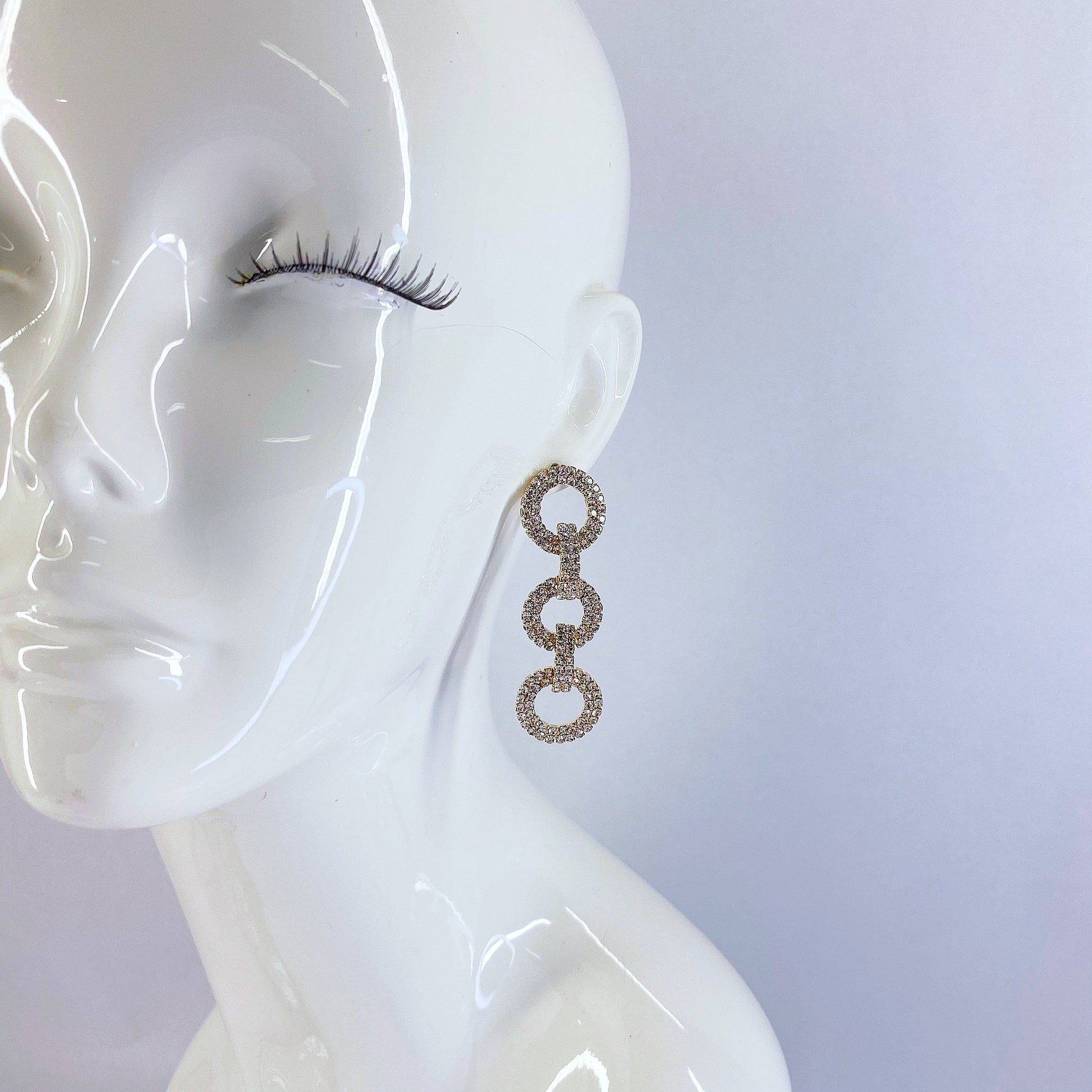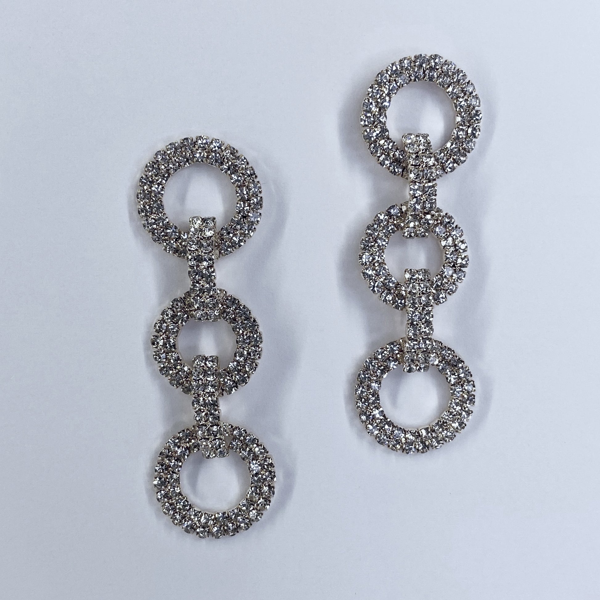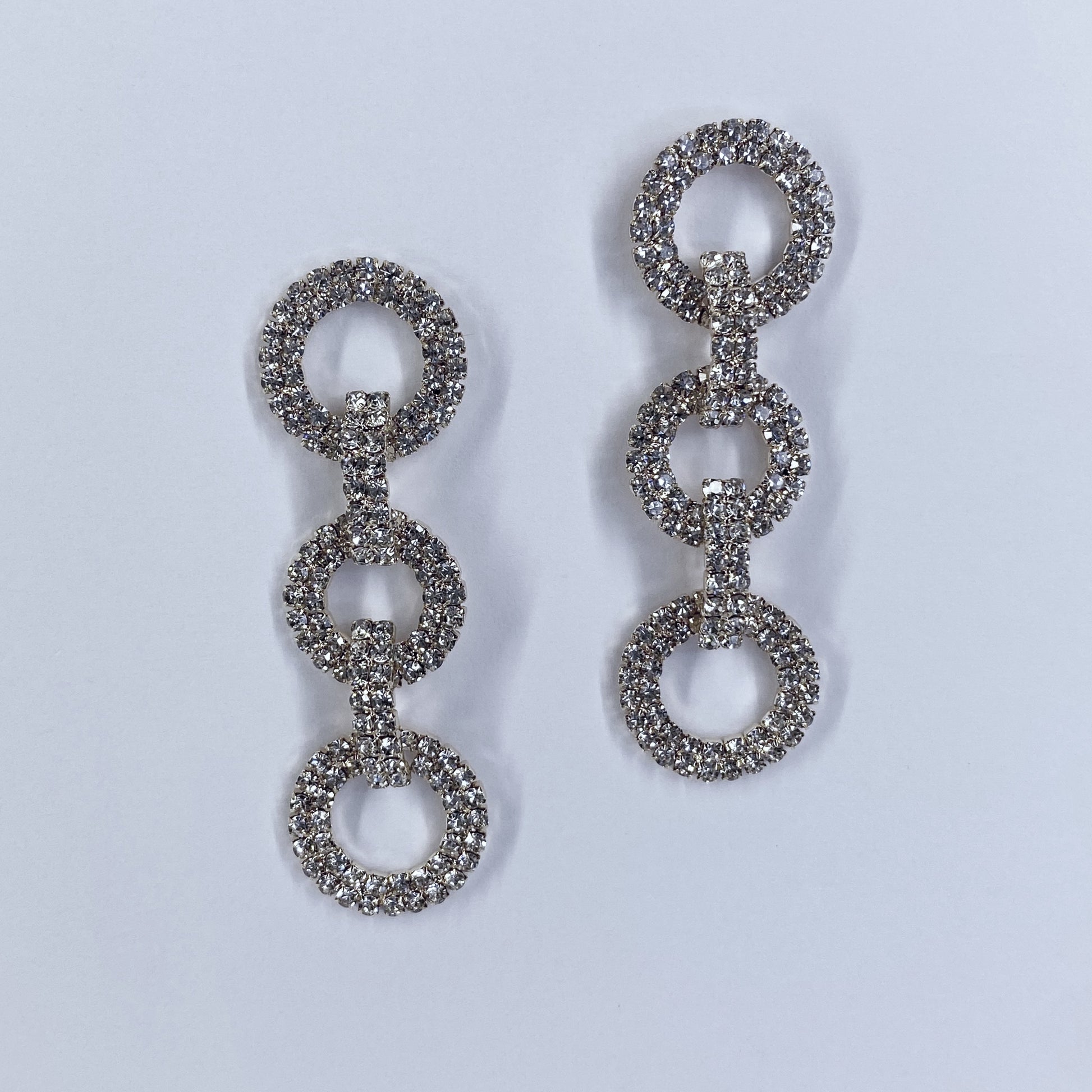 Choose between a Gold or Silver Finish adorned with Clear Rhinestones, and complete your look with our Drop Dangle Post Back Triple Circle Earrings.