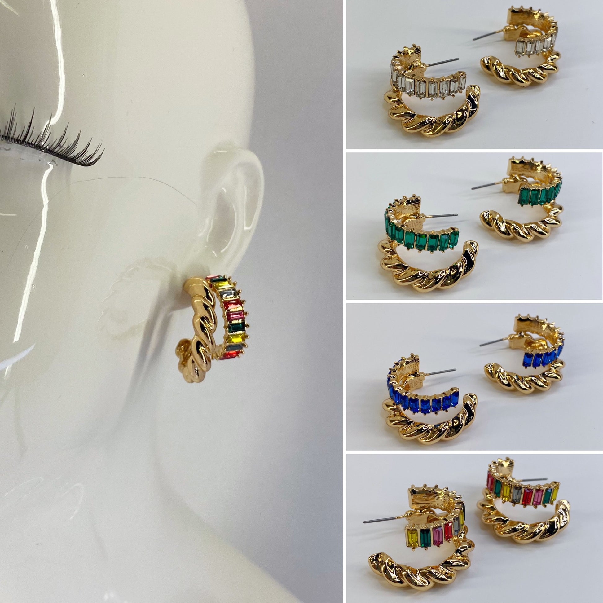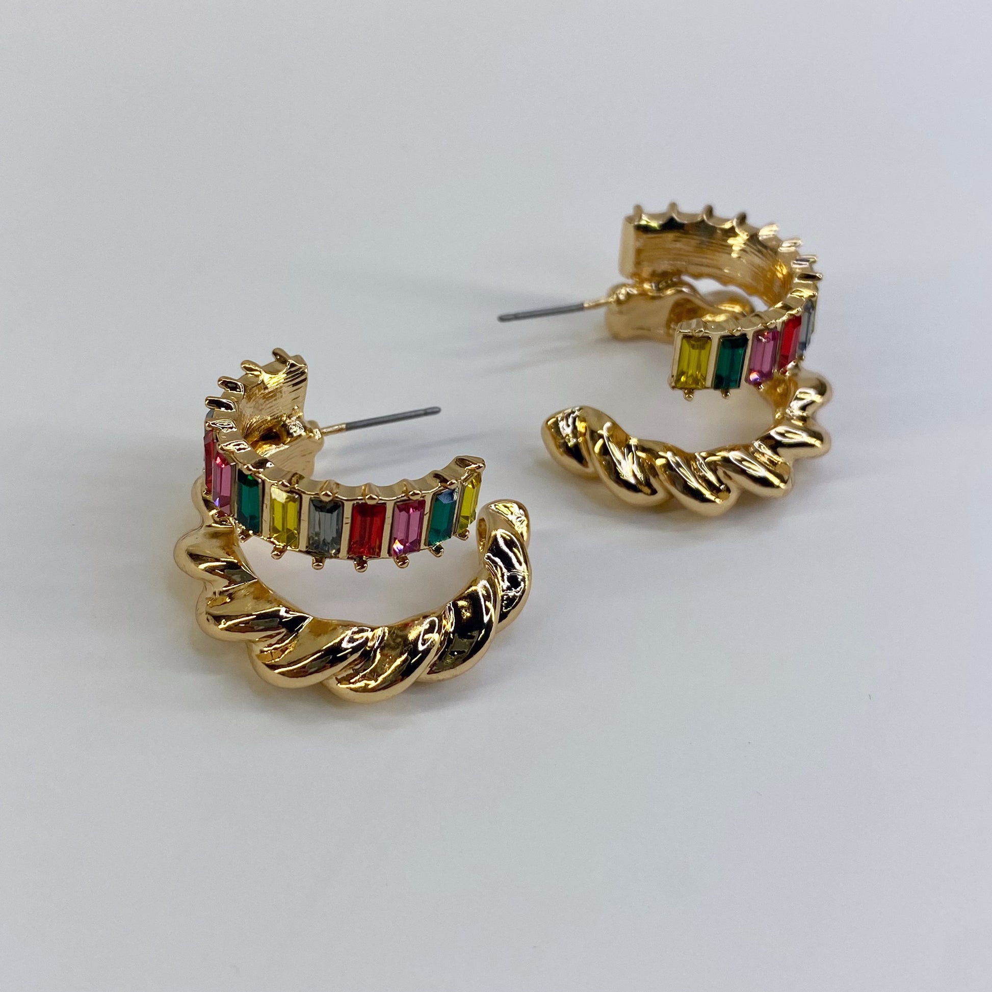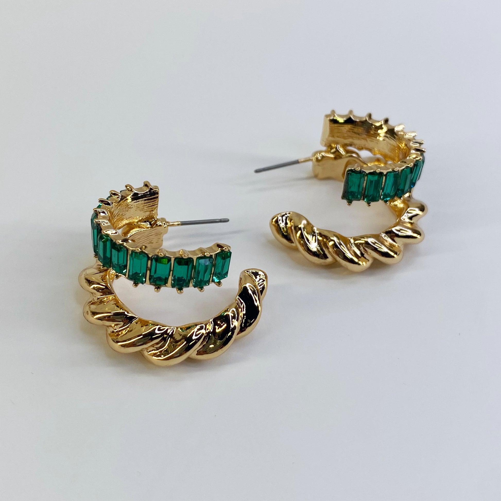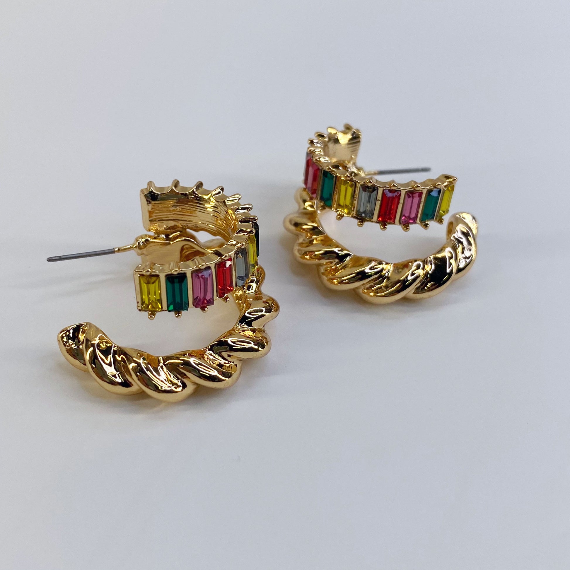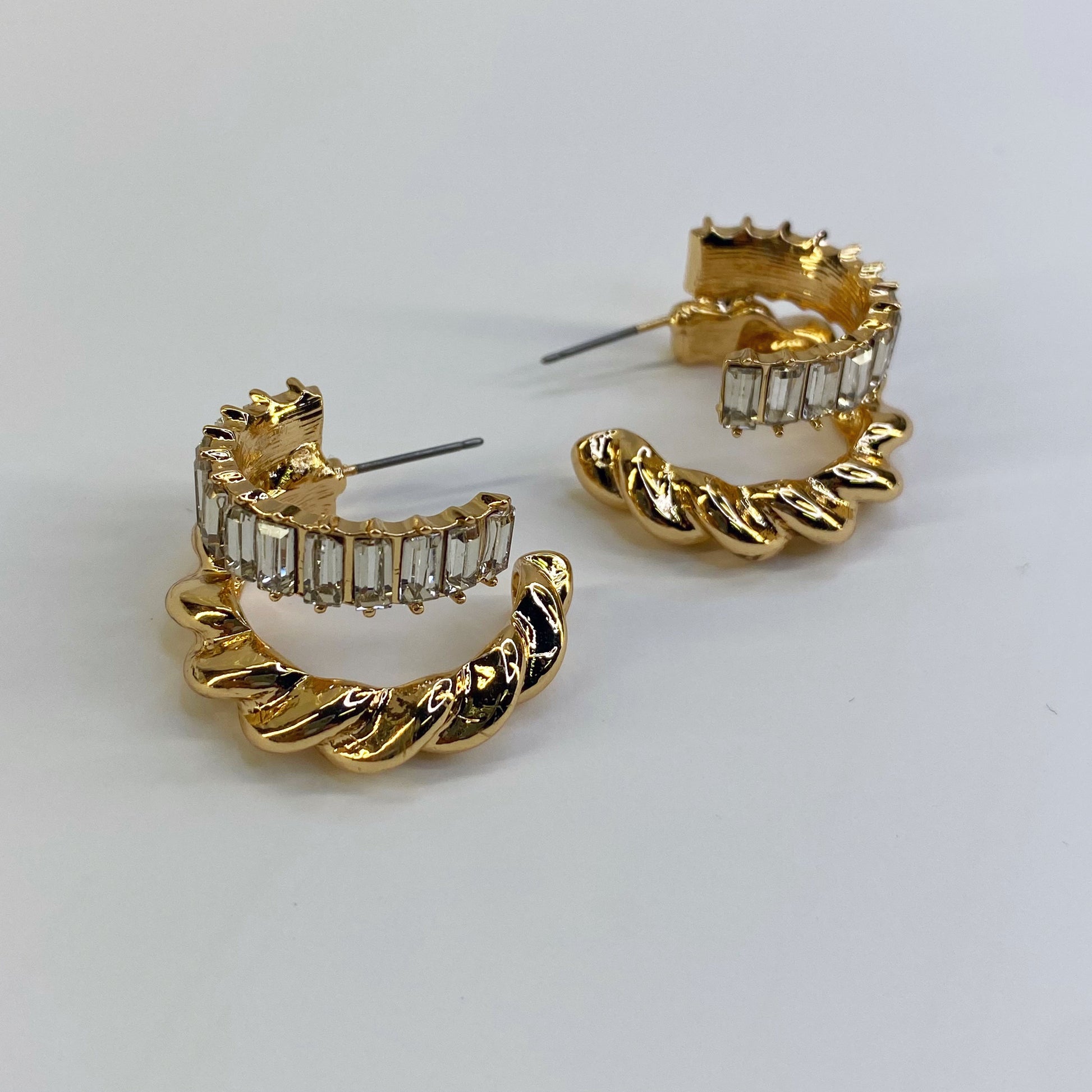 GOLD TWIST BAGUETTE EARRING