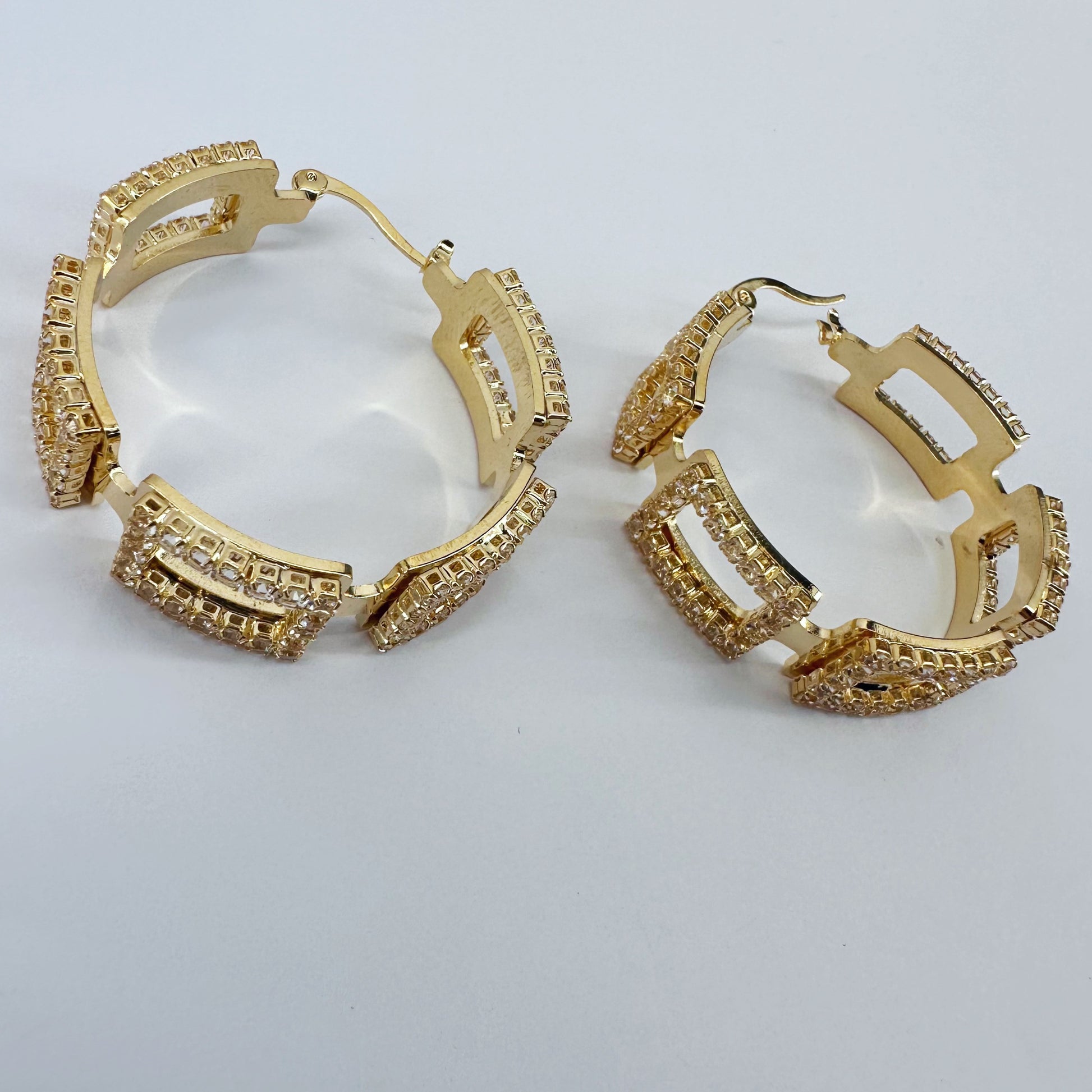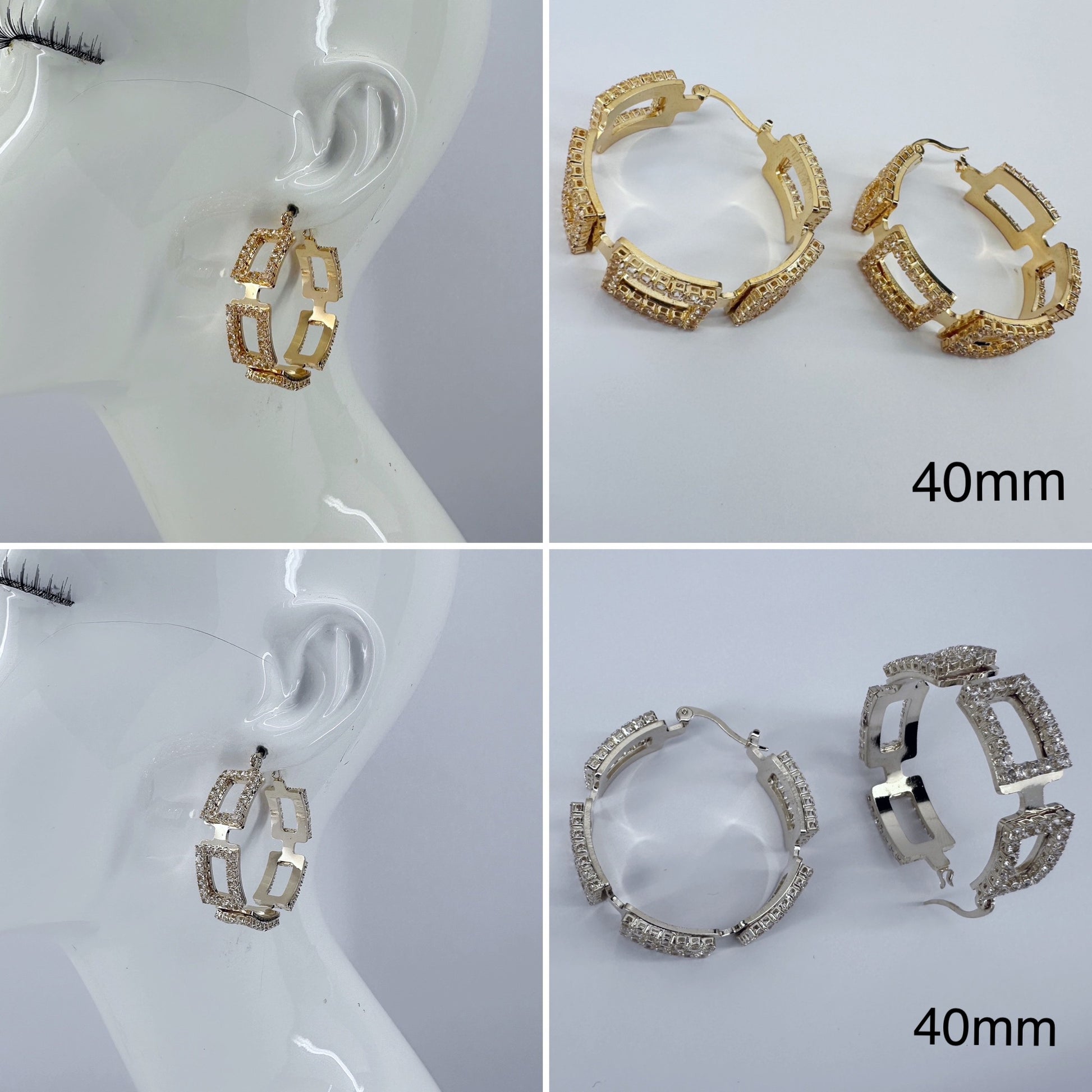 Gold or Silver Finish 40mm Hoop Earrings Rectangle full of Rhinestones