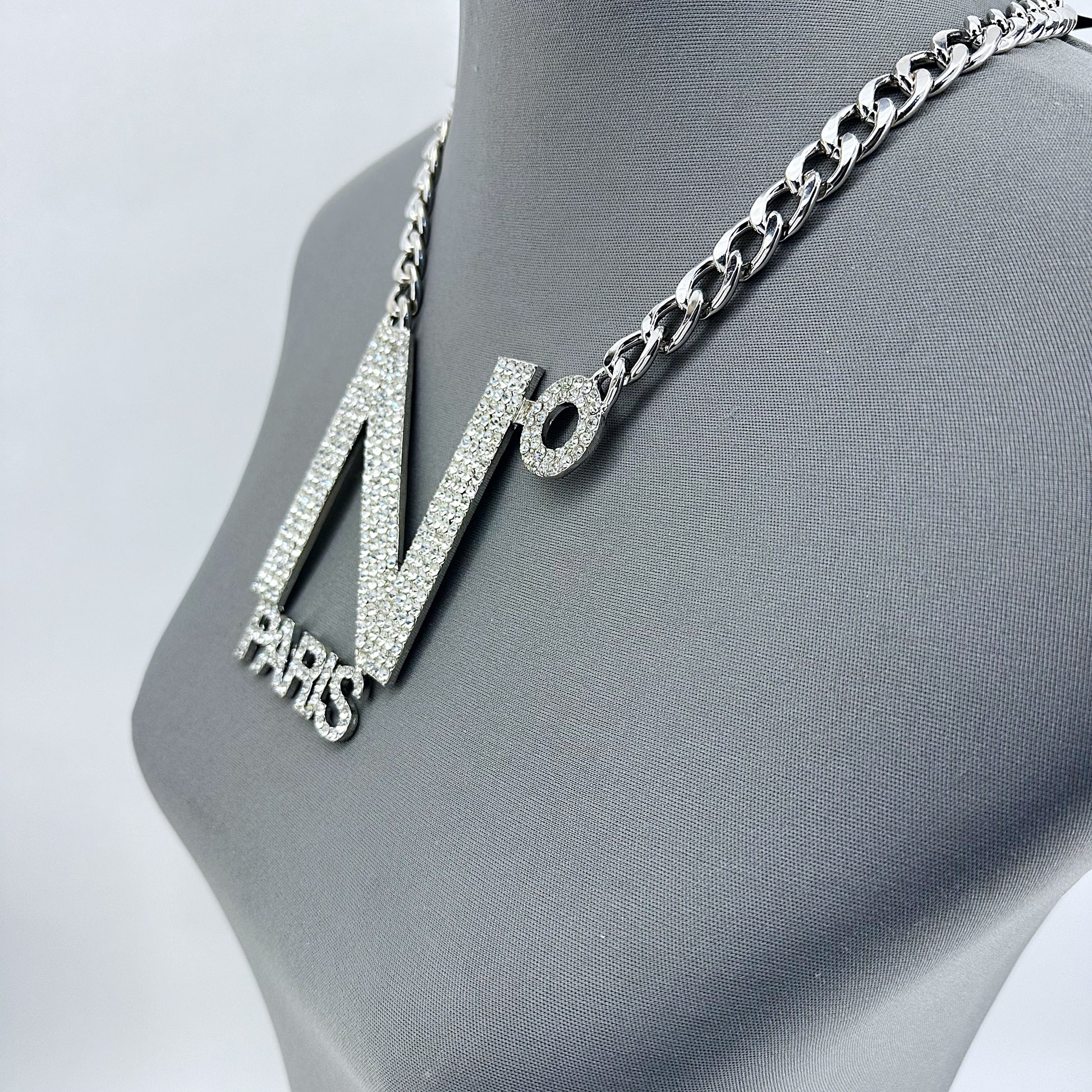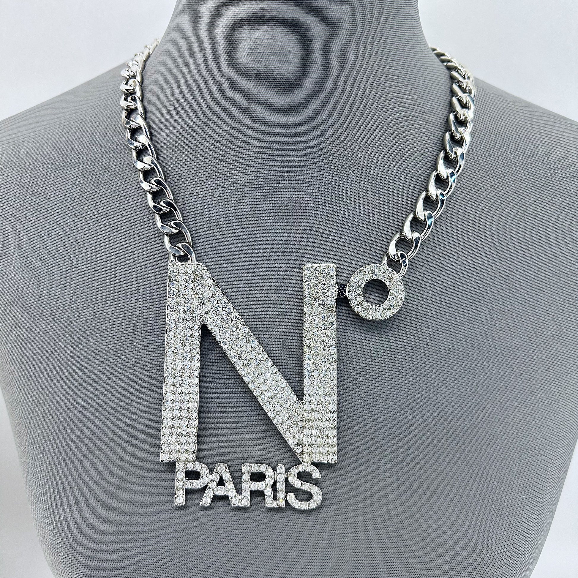 Silver Chain Necklace With Rhinestone Number Paris Pendant