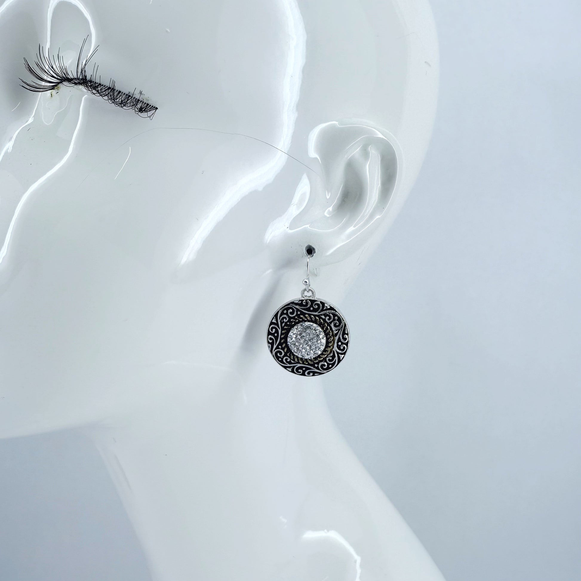 Silver Finish with Gold and Filigree Clear Rhinestone Hook Earrings