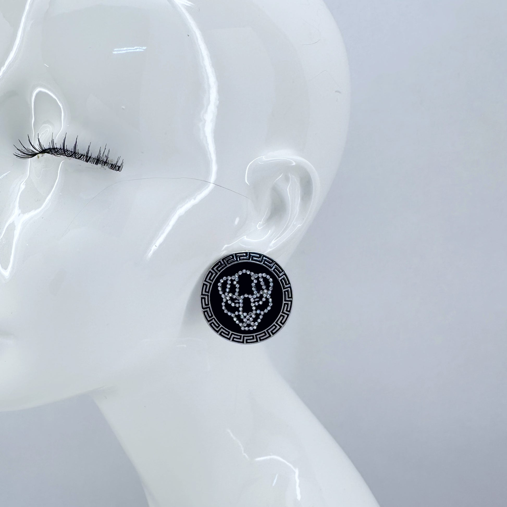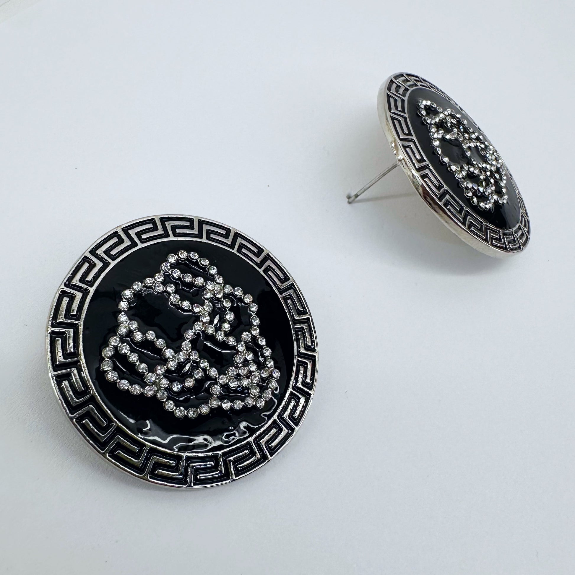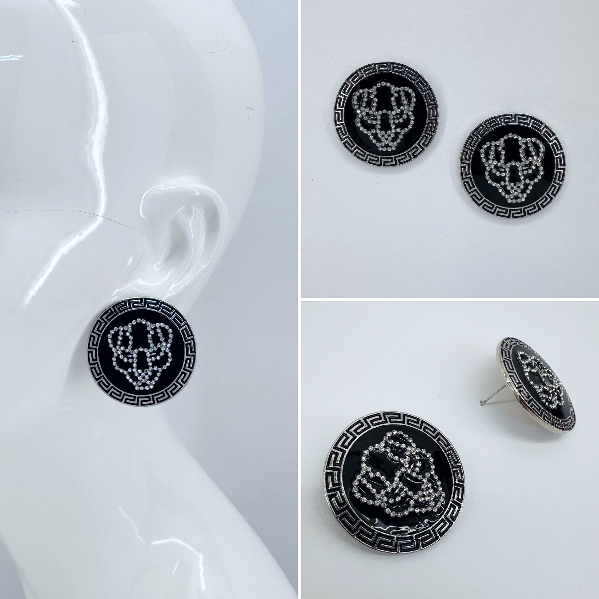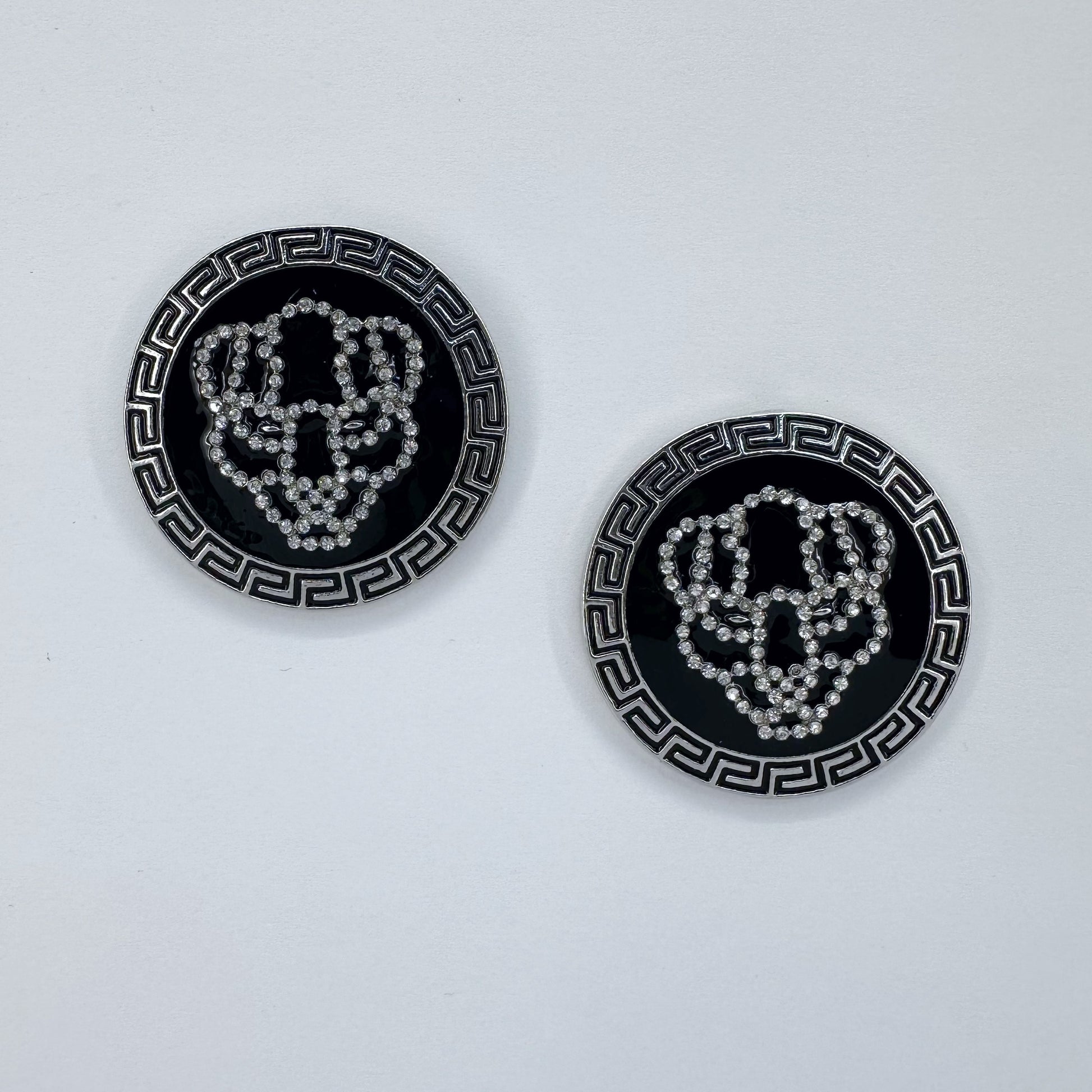Silver Finish Round Rhinestone Tiger And Greek Symbol