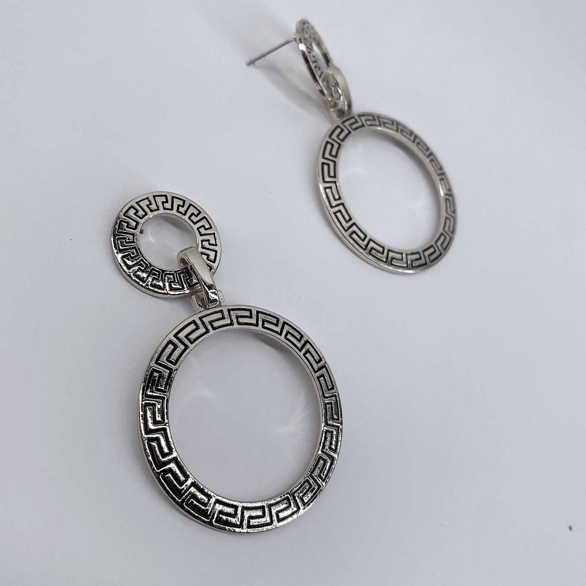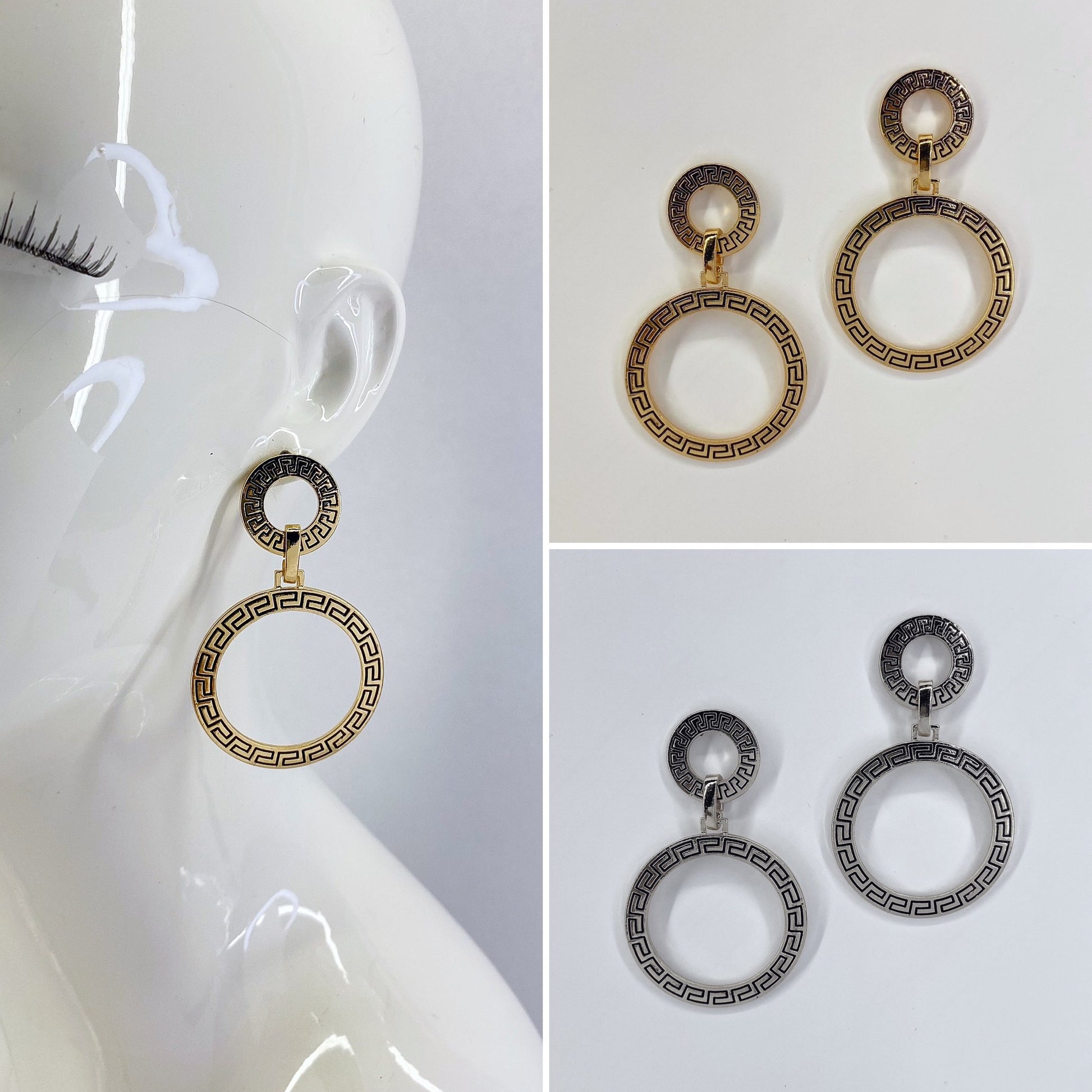 Circle Greek Symbol Post Back With Circle Greek Symbol Dangle Gold Or Silver Finish