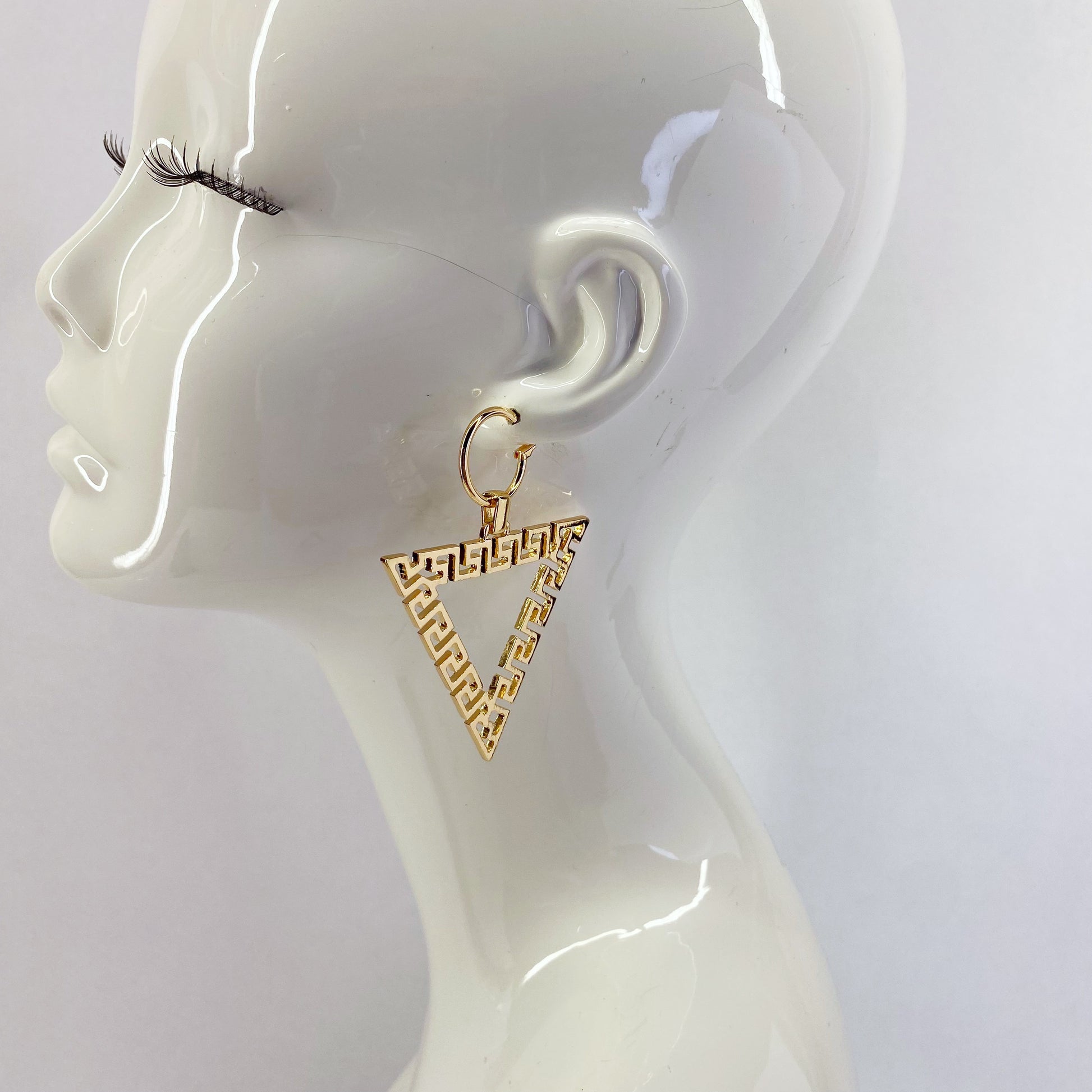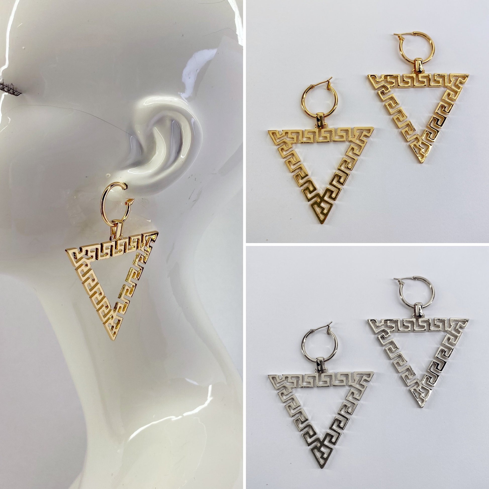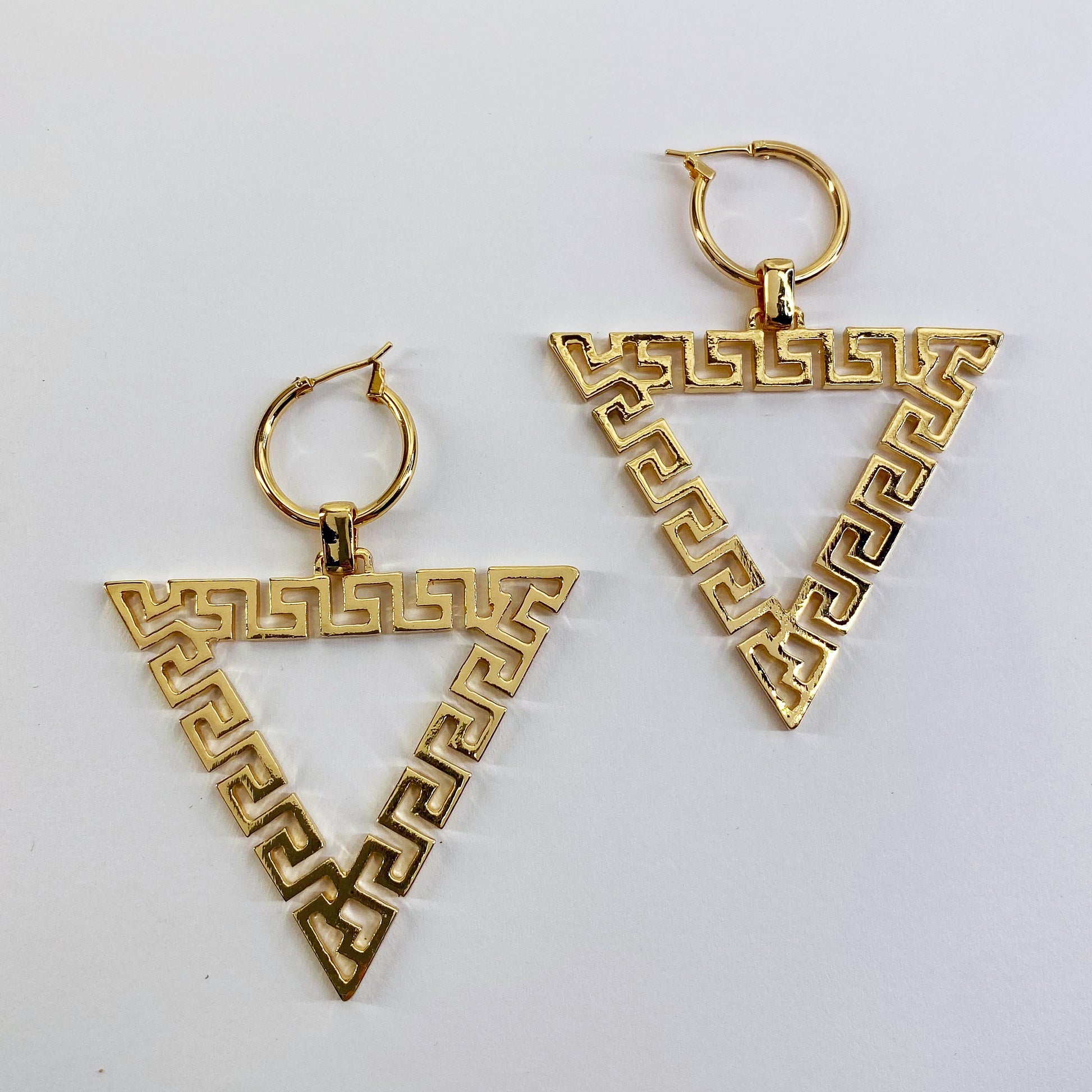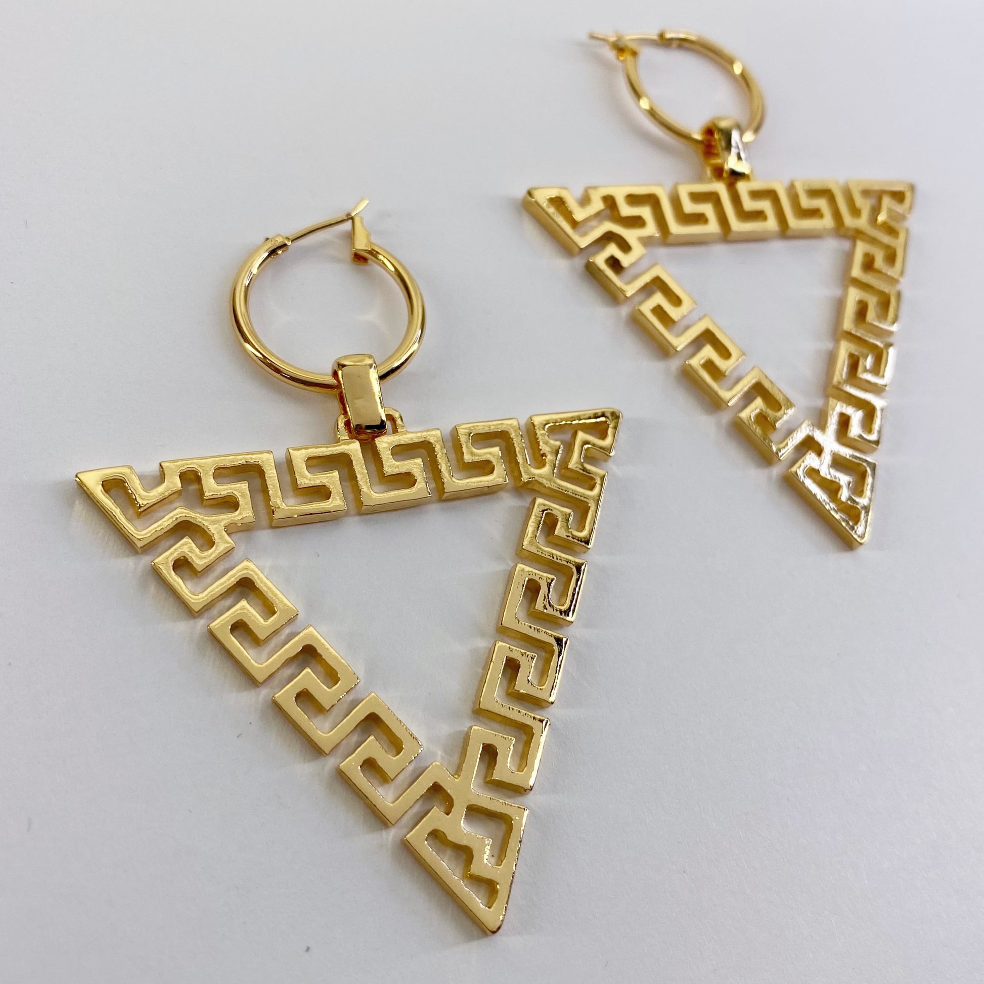 Hoop Earrings With Triangle Greek Symbol Dangle
