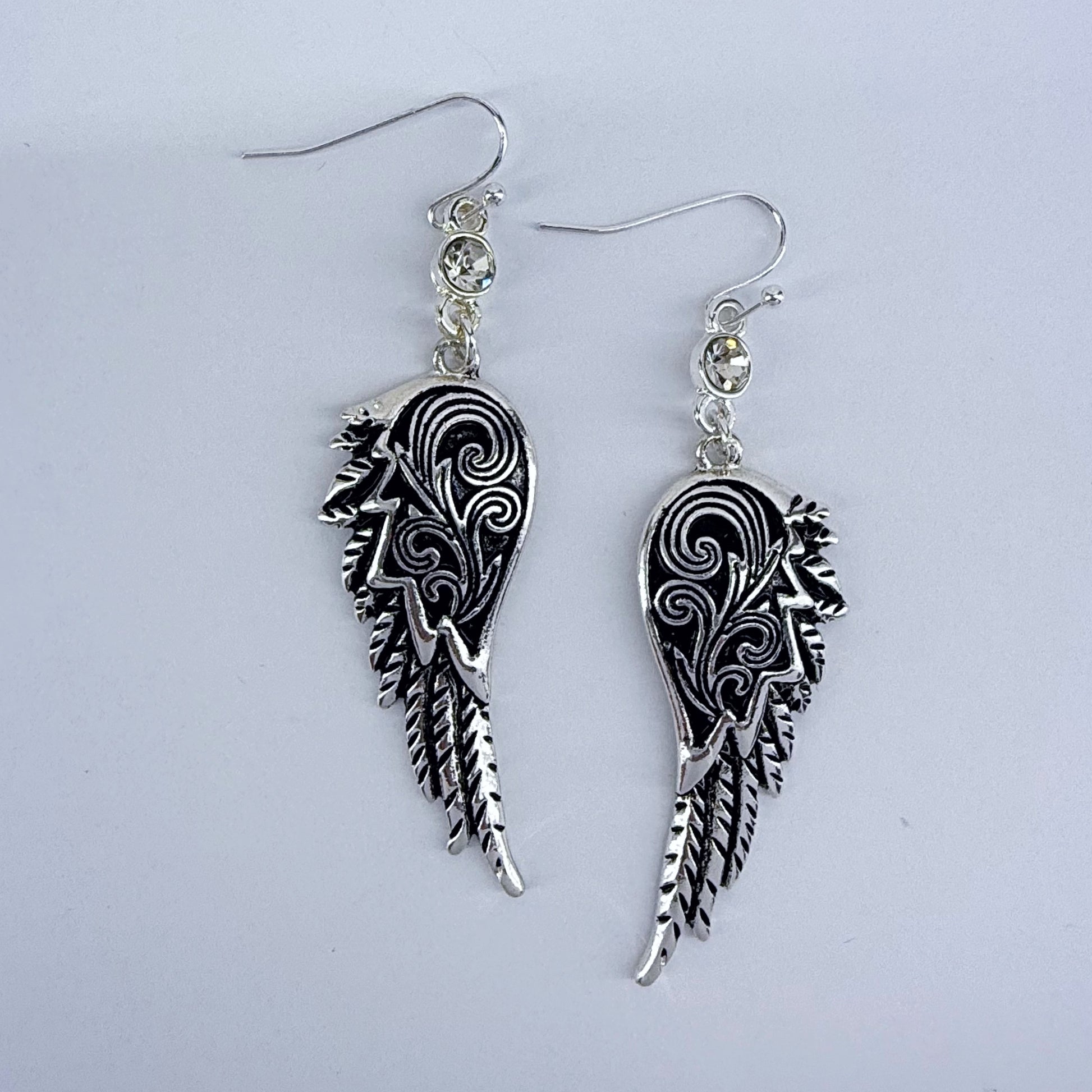 Discover the elegance of Silver Fish Hooks with a Tailored Wing Design Dangle. Perfect for adding a touch of sophistication to any outfit.