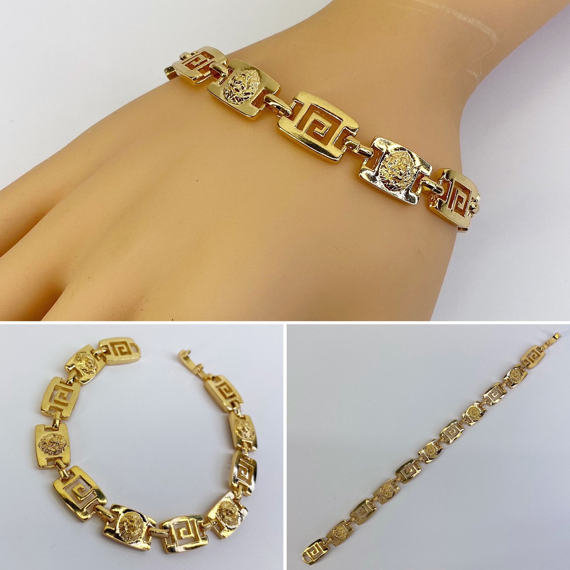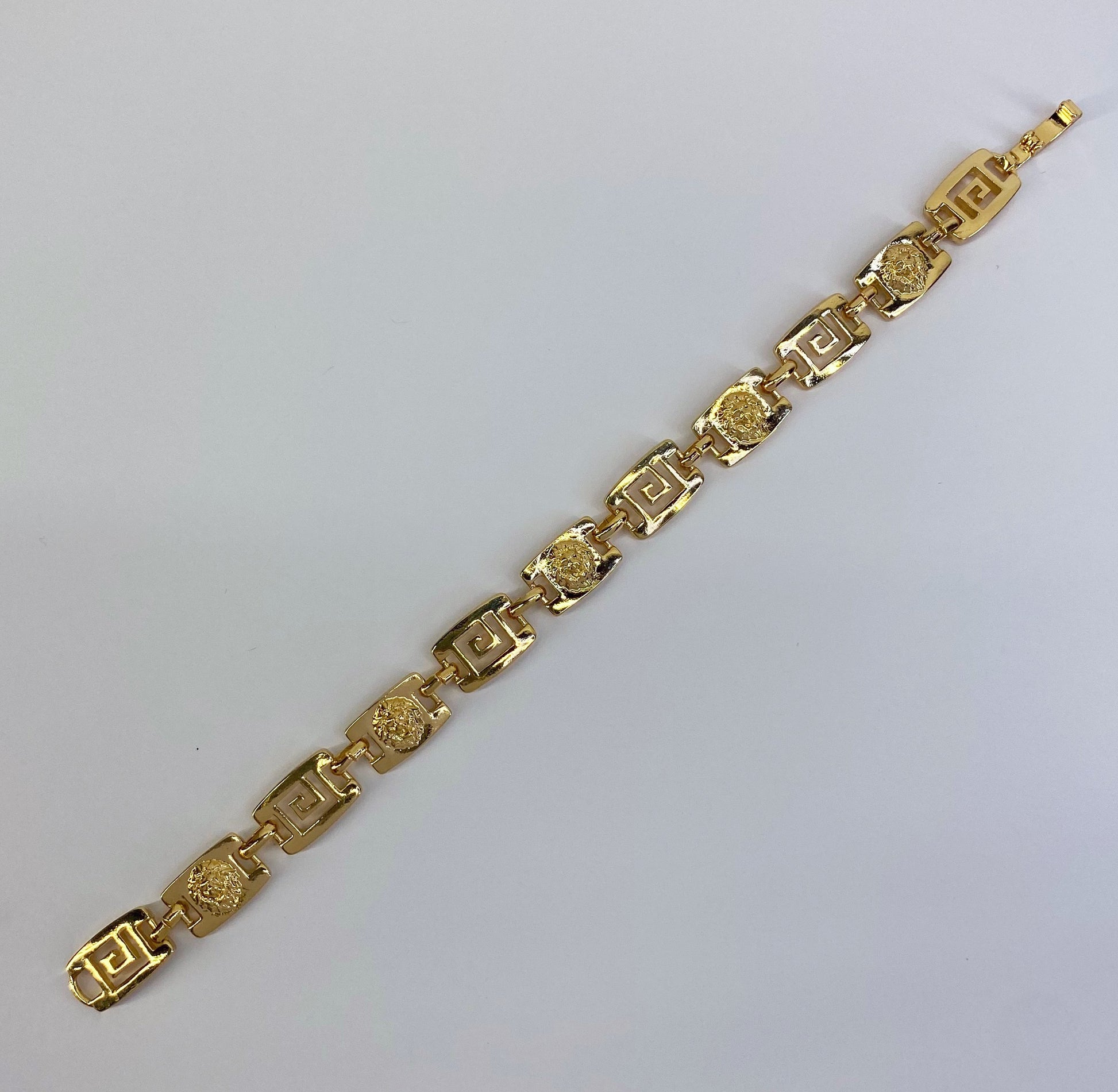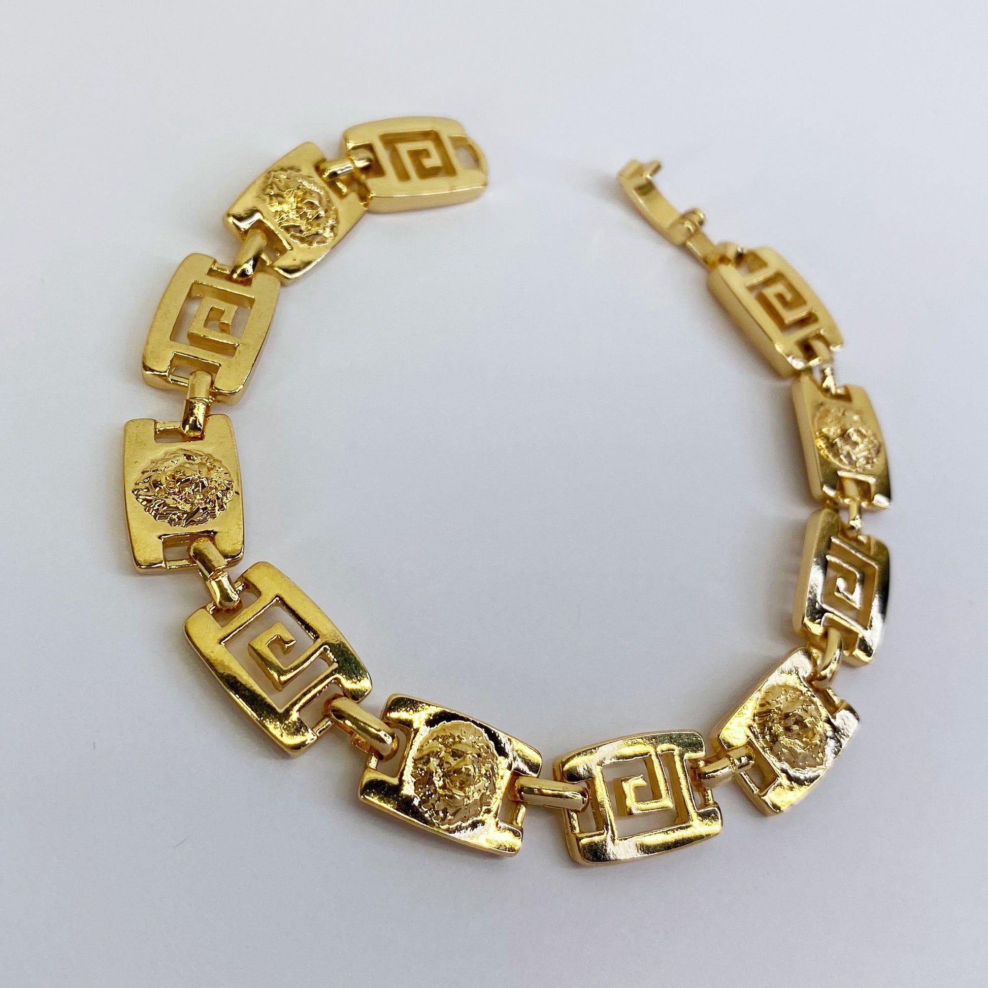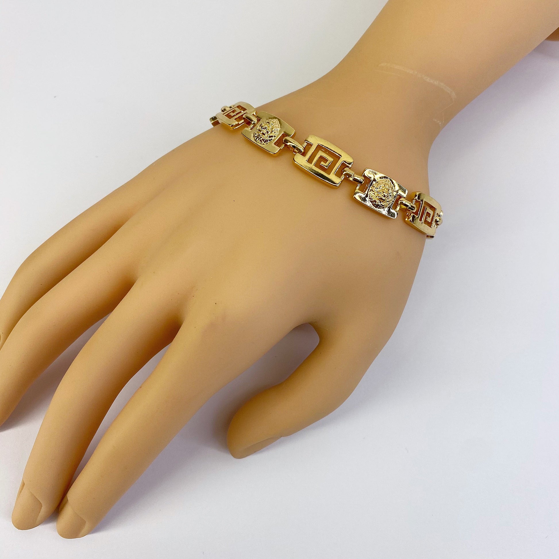 Gold Finish Greek Symbol And Lion Head Bracelet