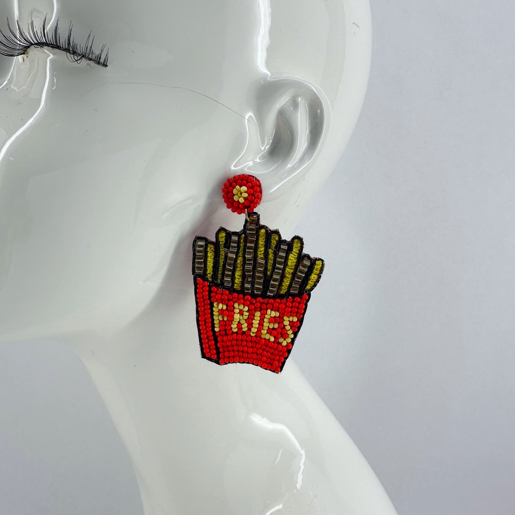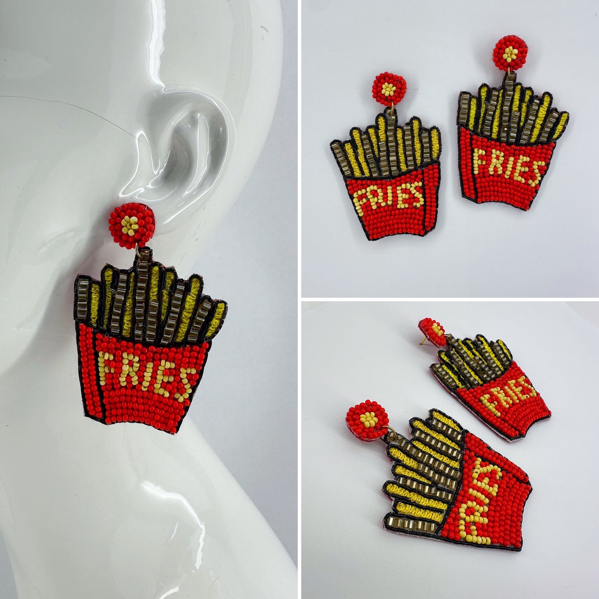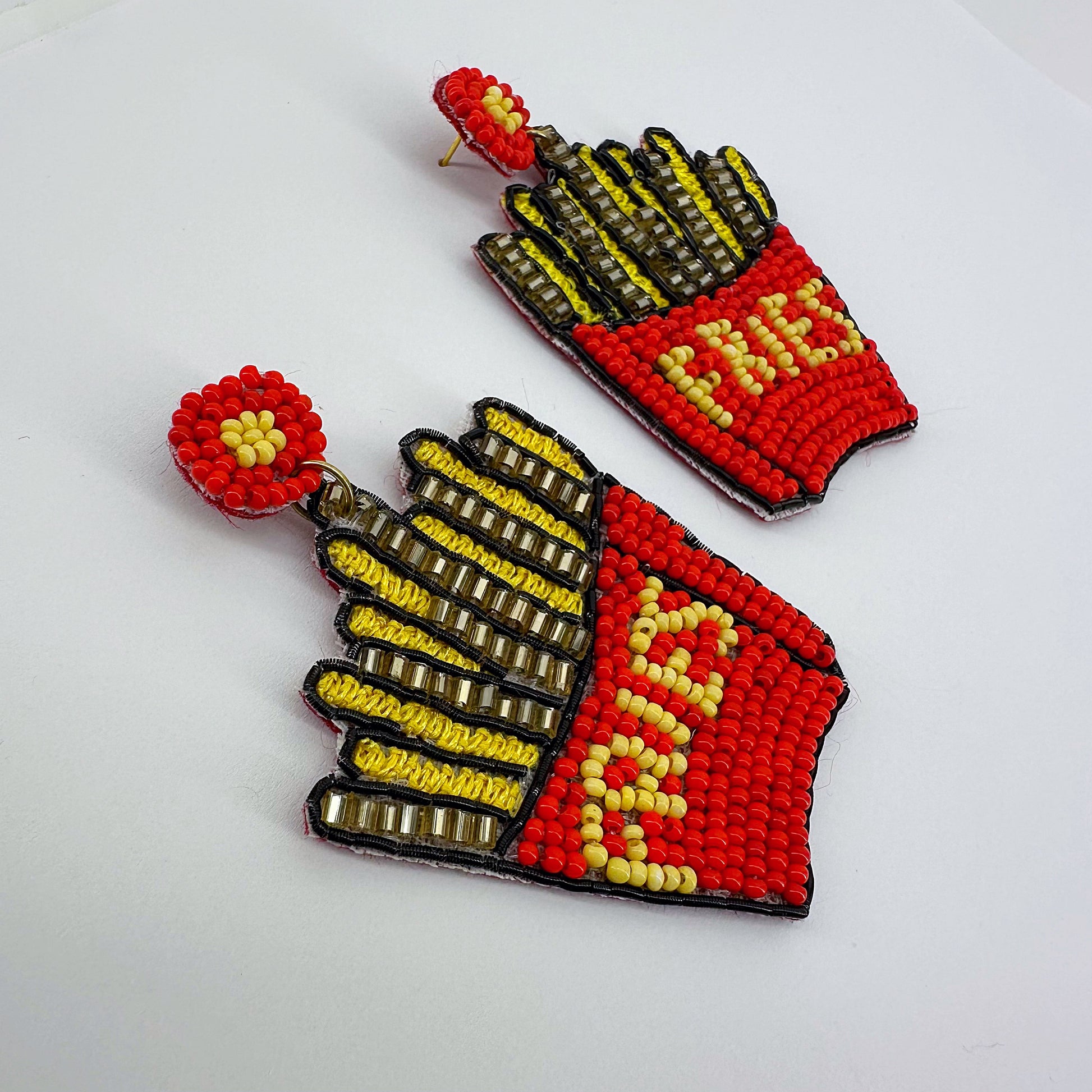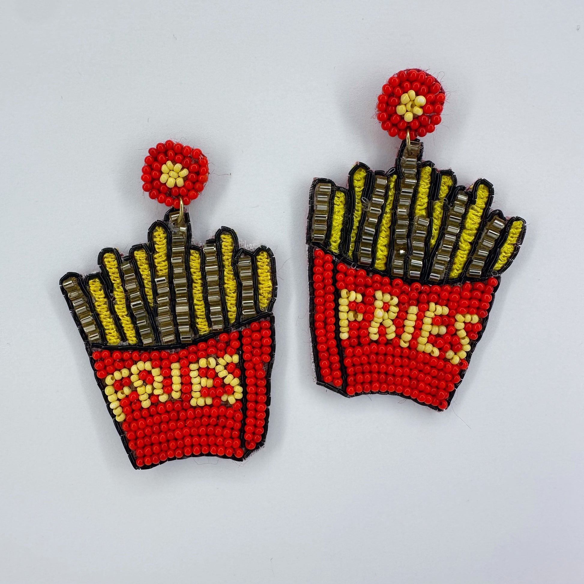 Gold Finish Post Back Seed Bead French Fries Design Earring