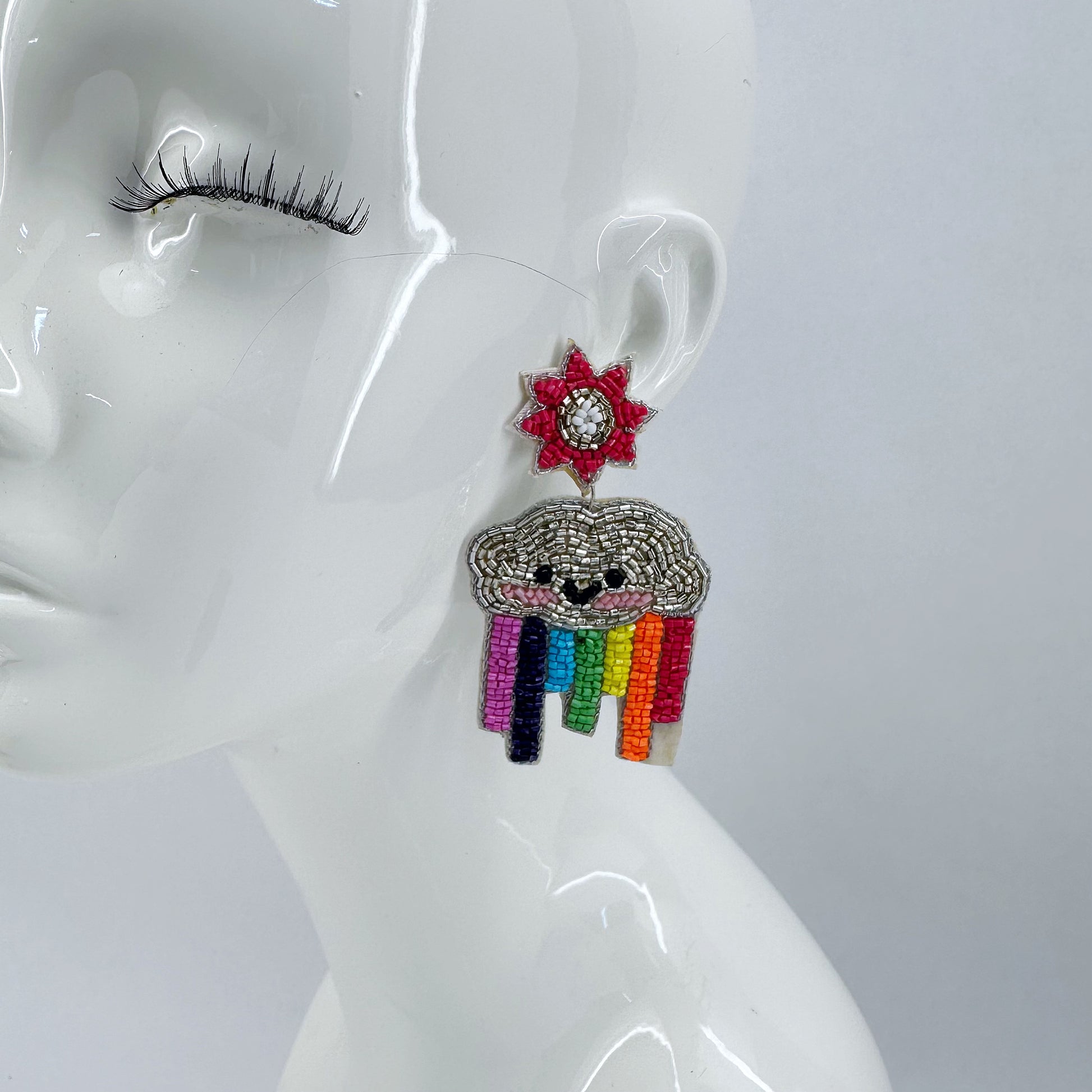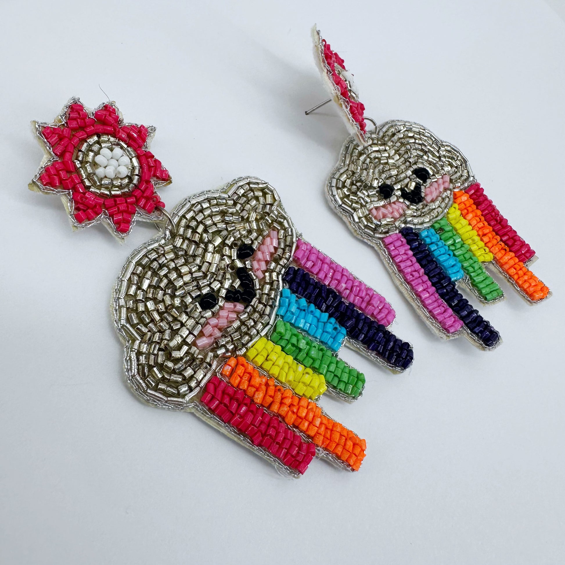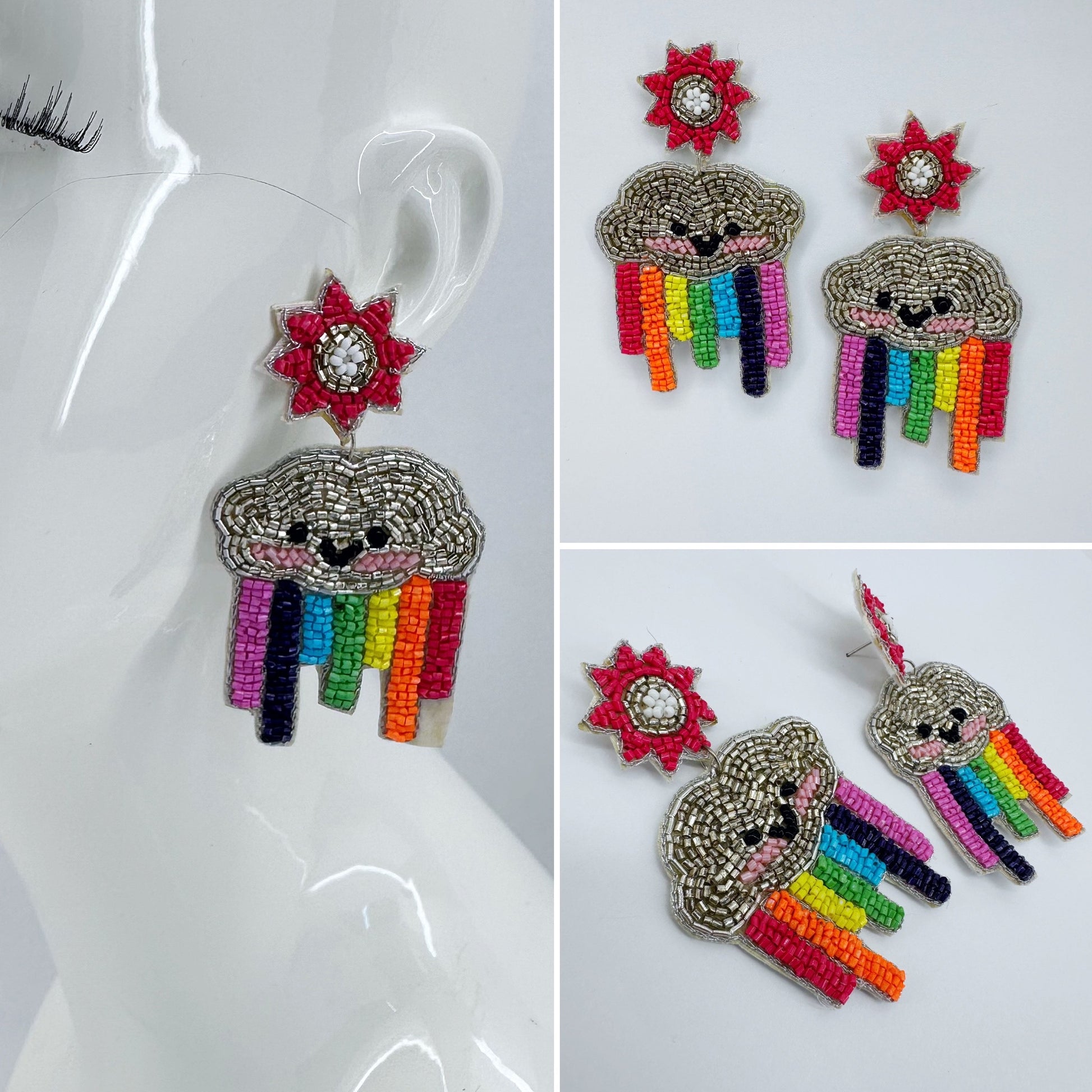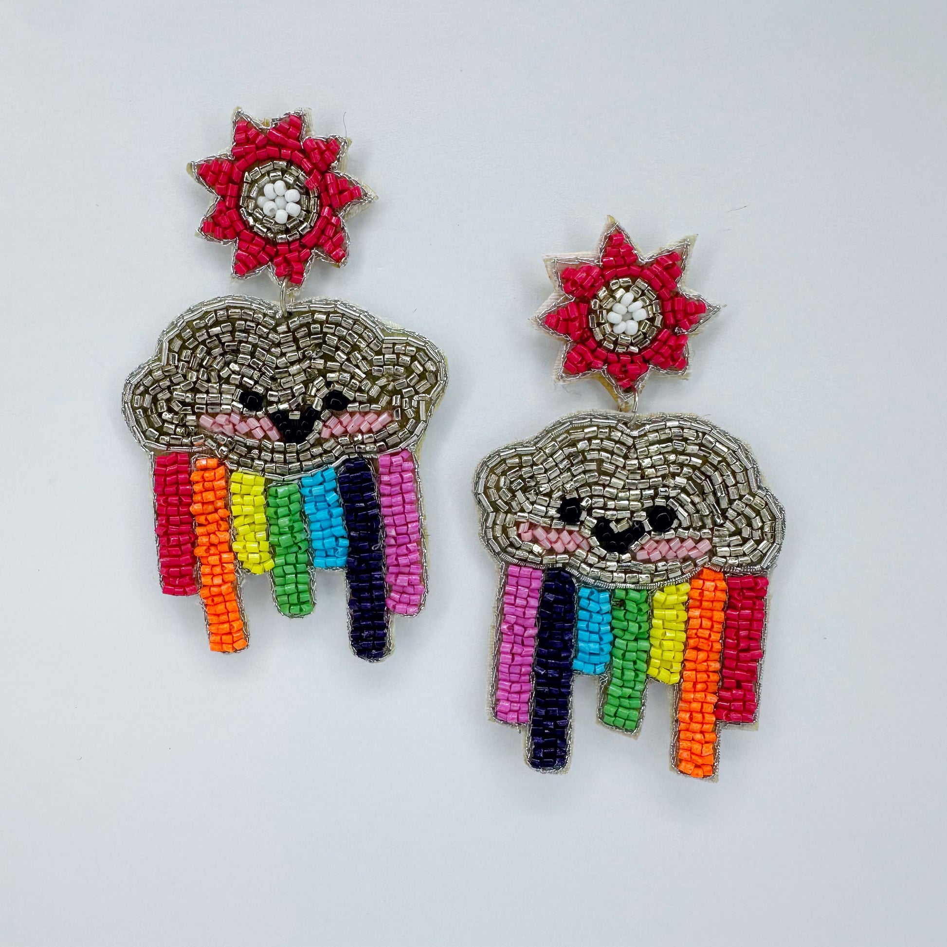 Post Back Bead Seed Earring Sun And Rainbow Design