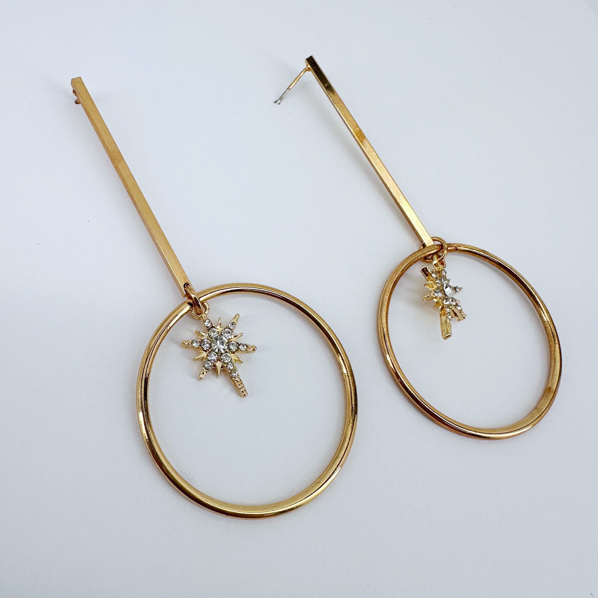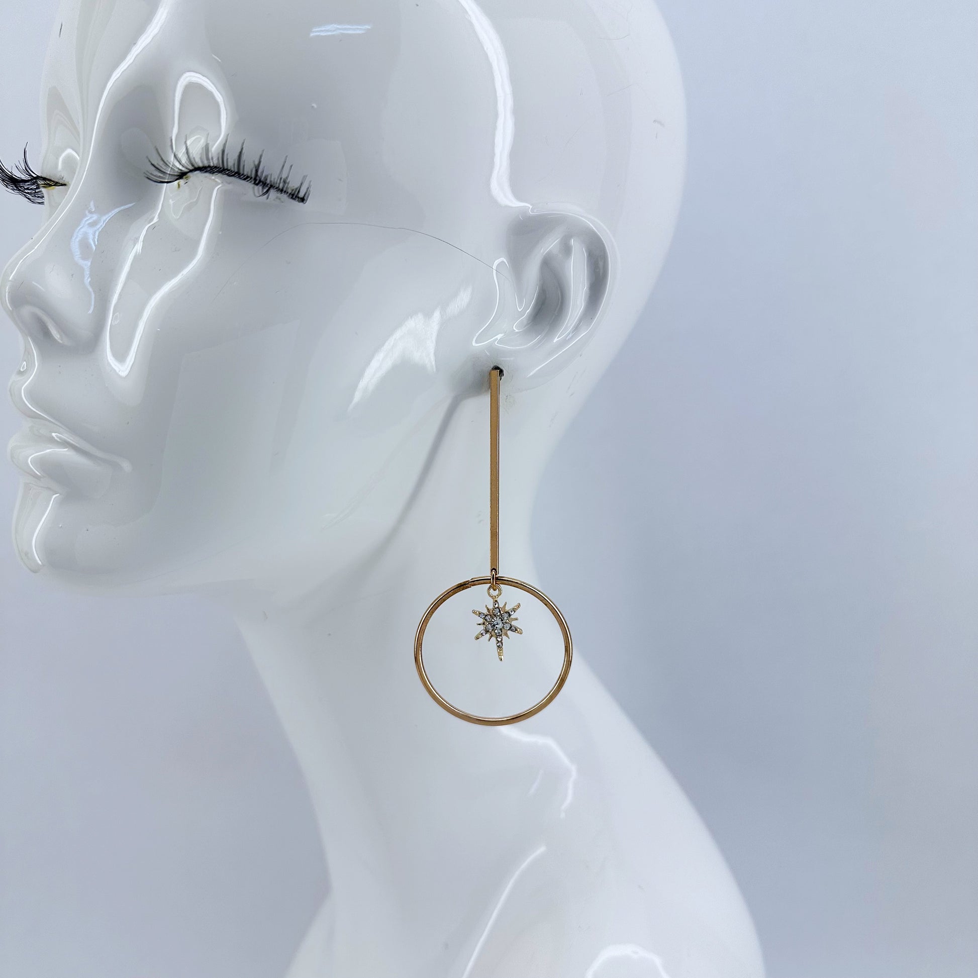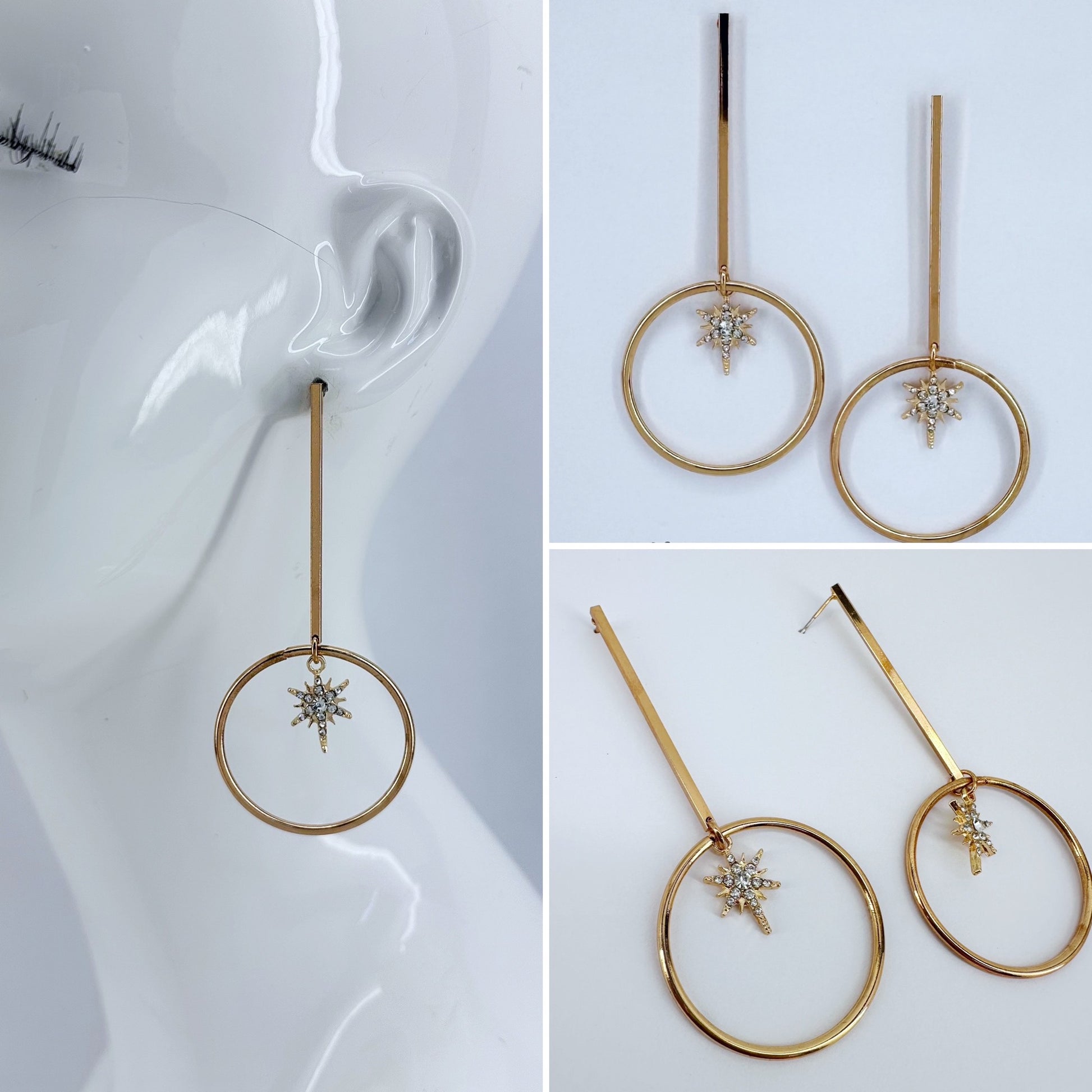 Post Back Bar Gold Finish With Circle And Start Rhinestone Dangle