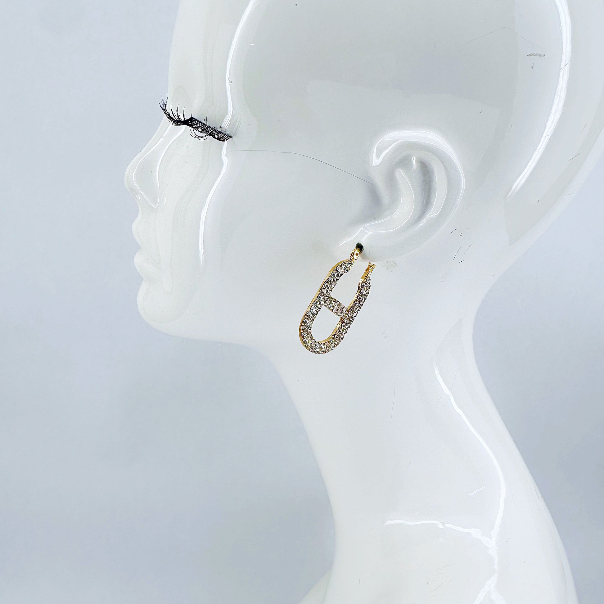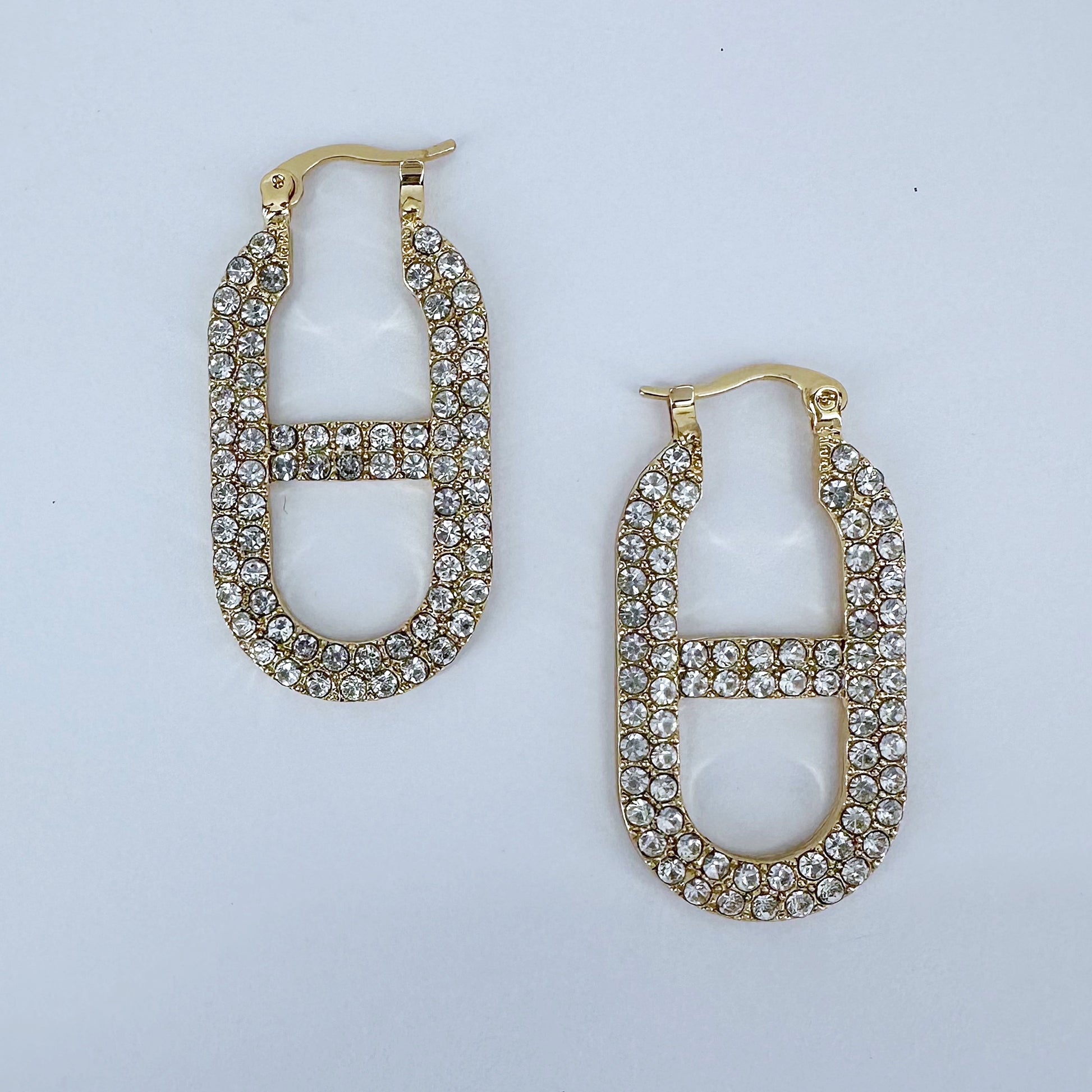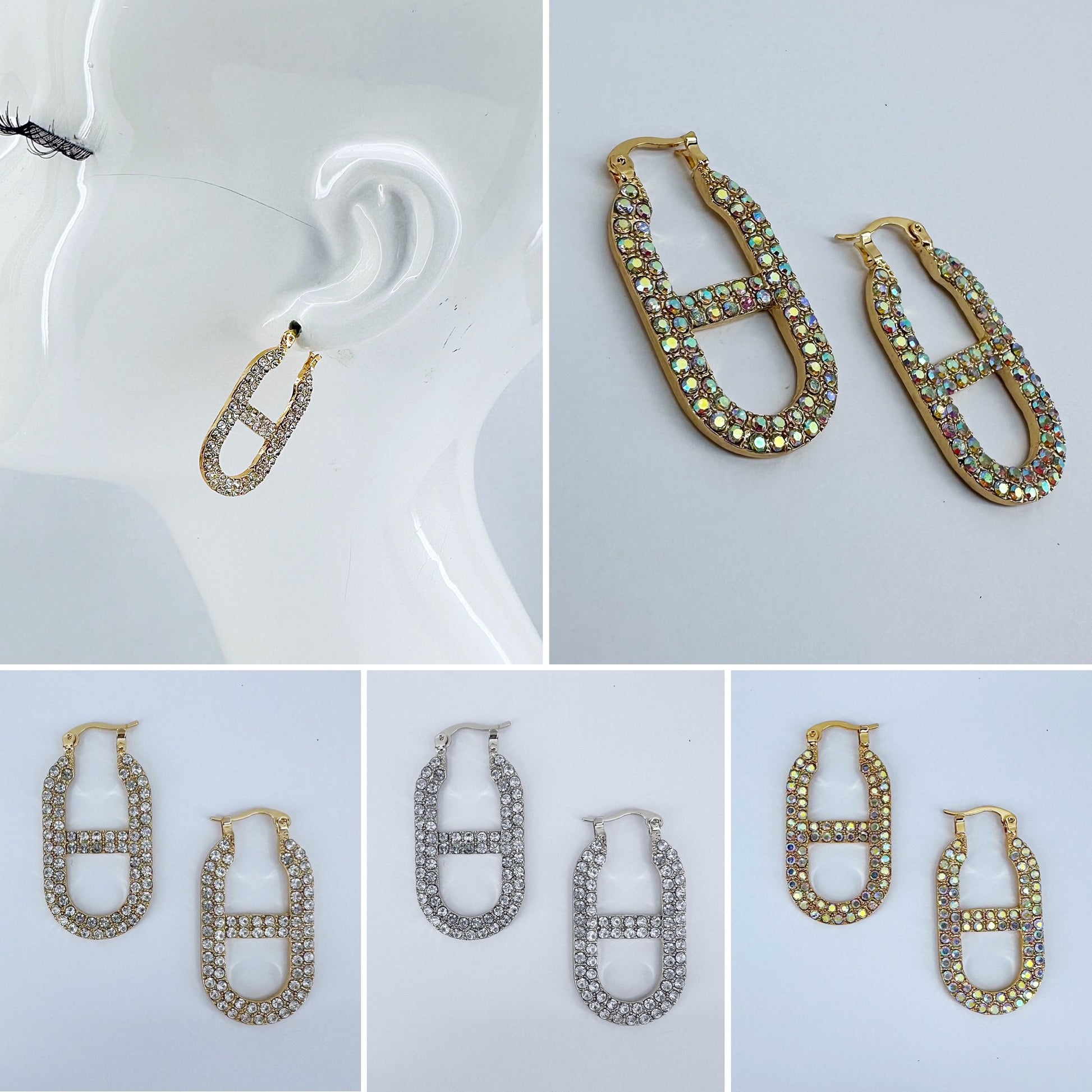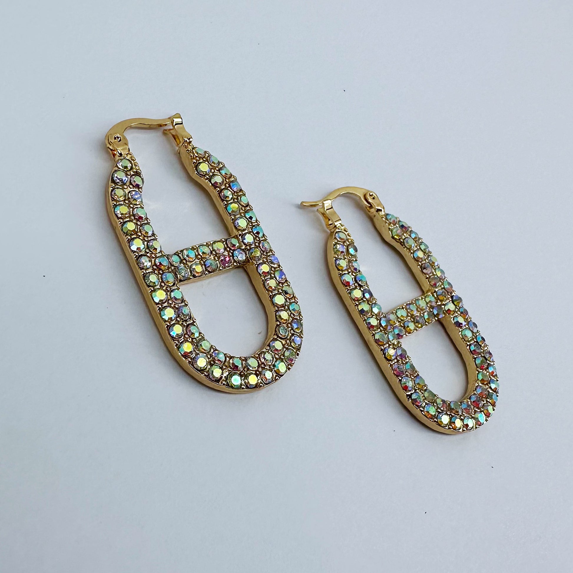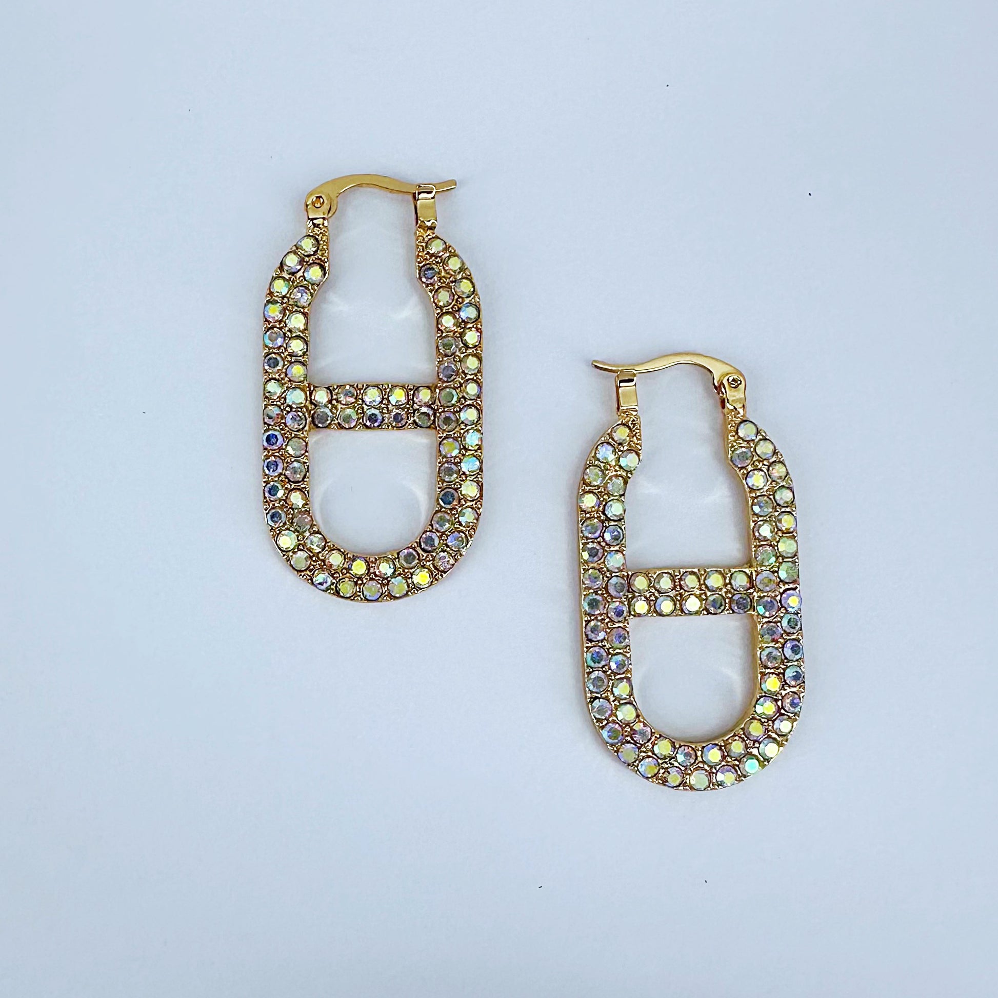 Gold, Silver or Gold AB Rhinestone Mariner Link Chain Hoop Earring