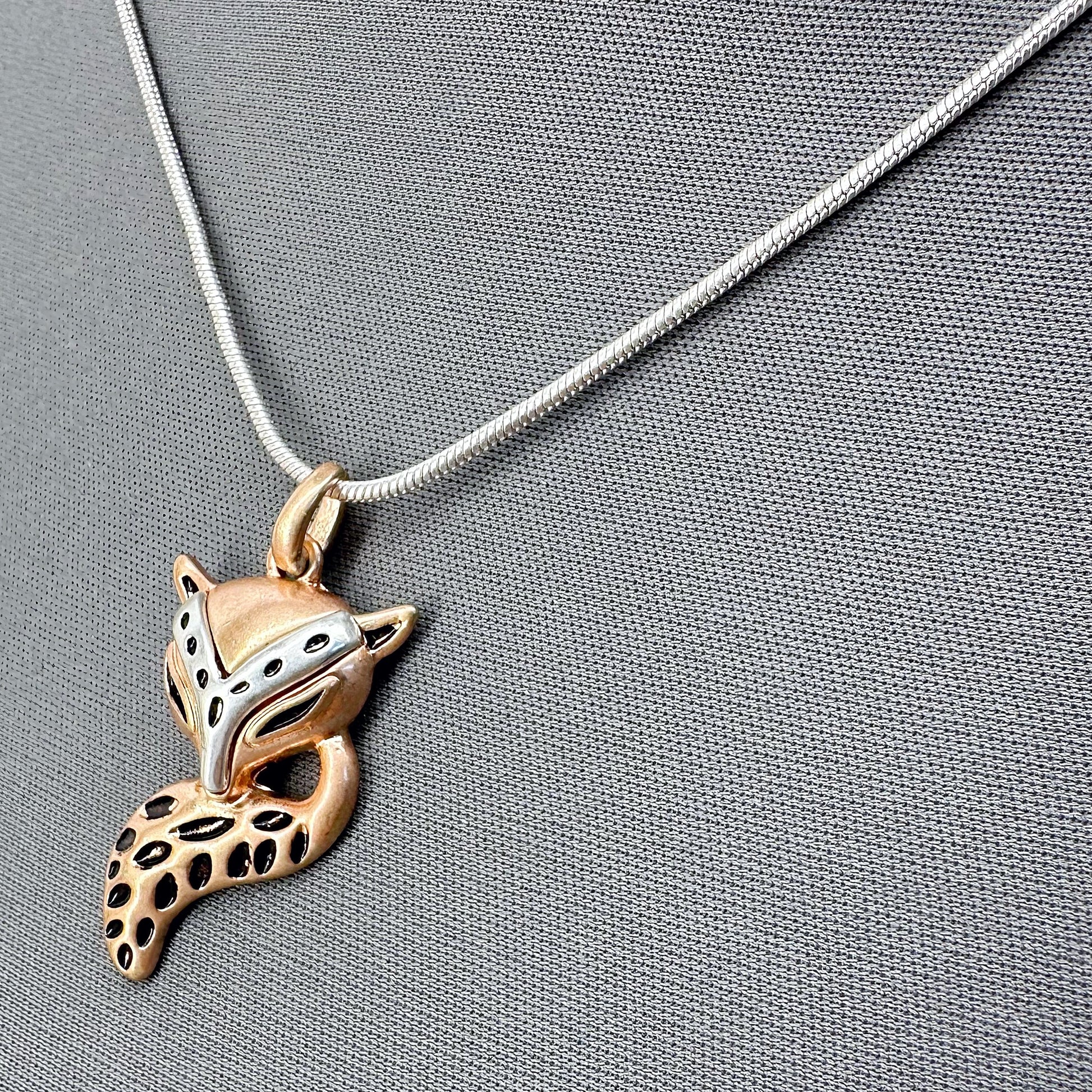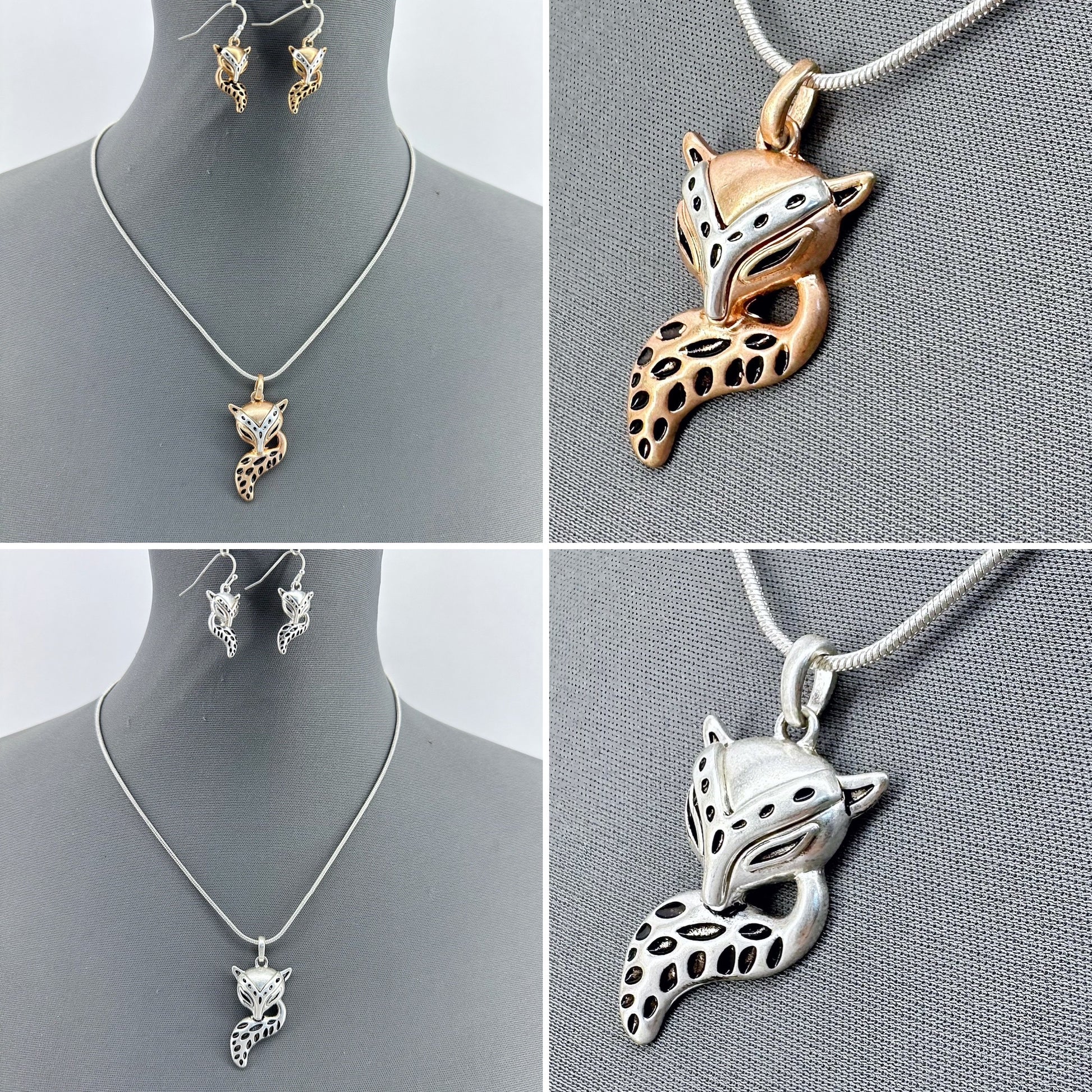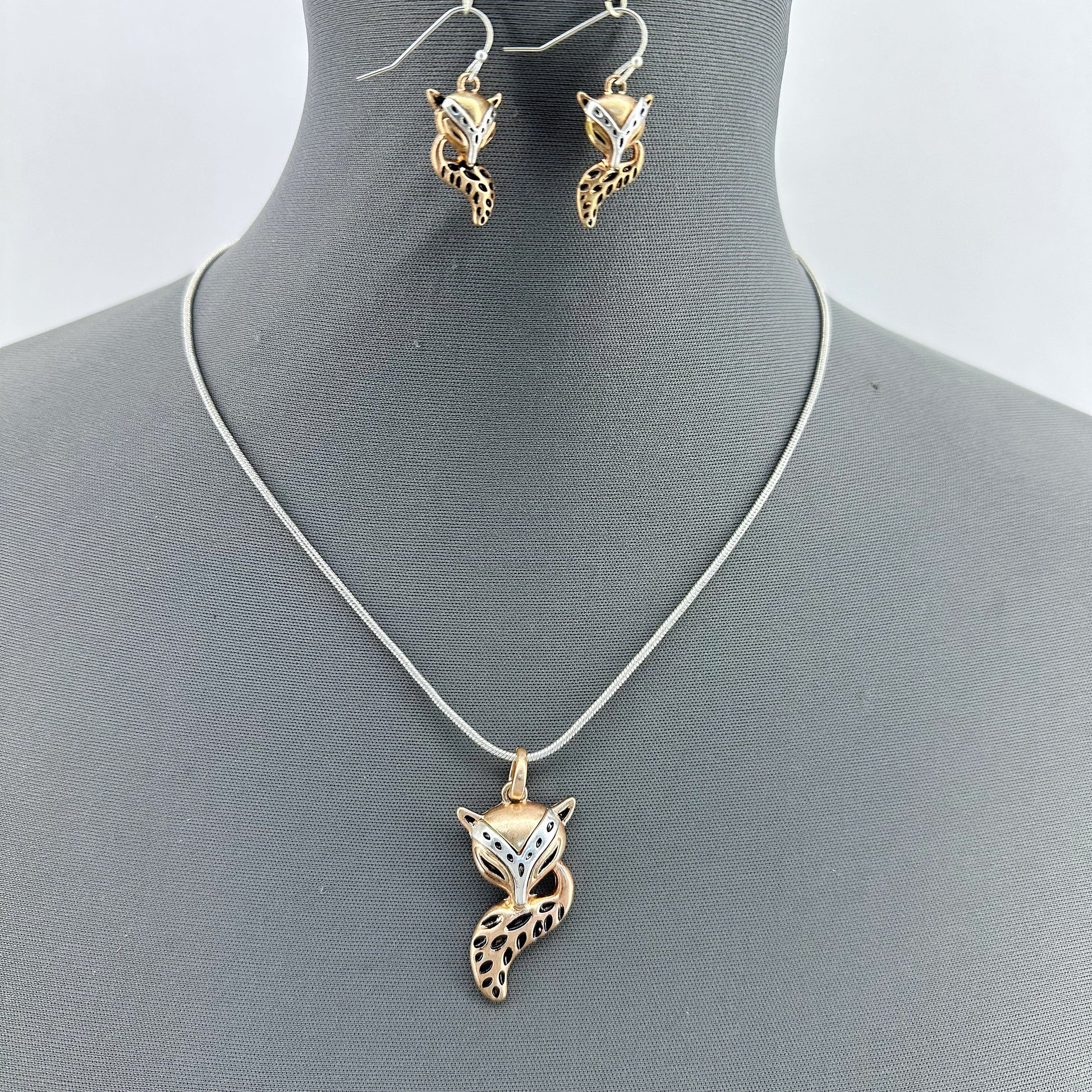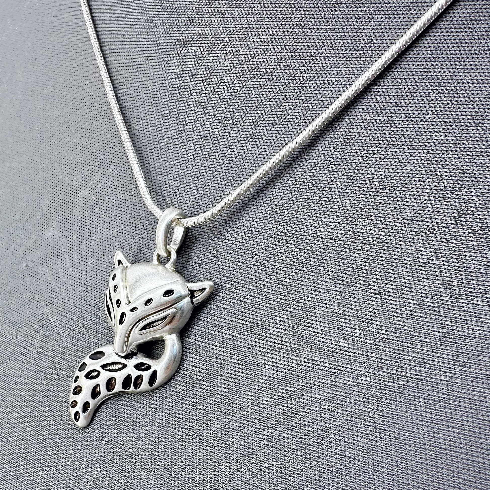 Silver Long Necklace With Fox Pendant And Fish Hook Fox Dangle
