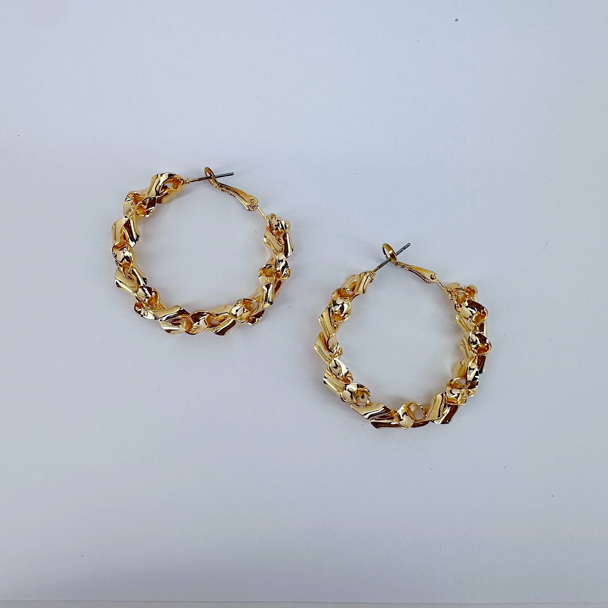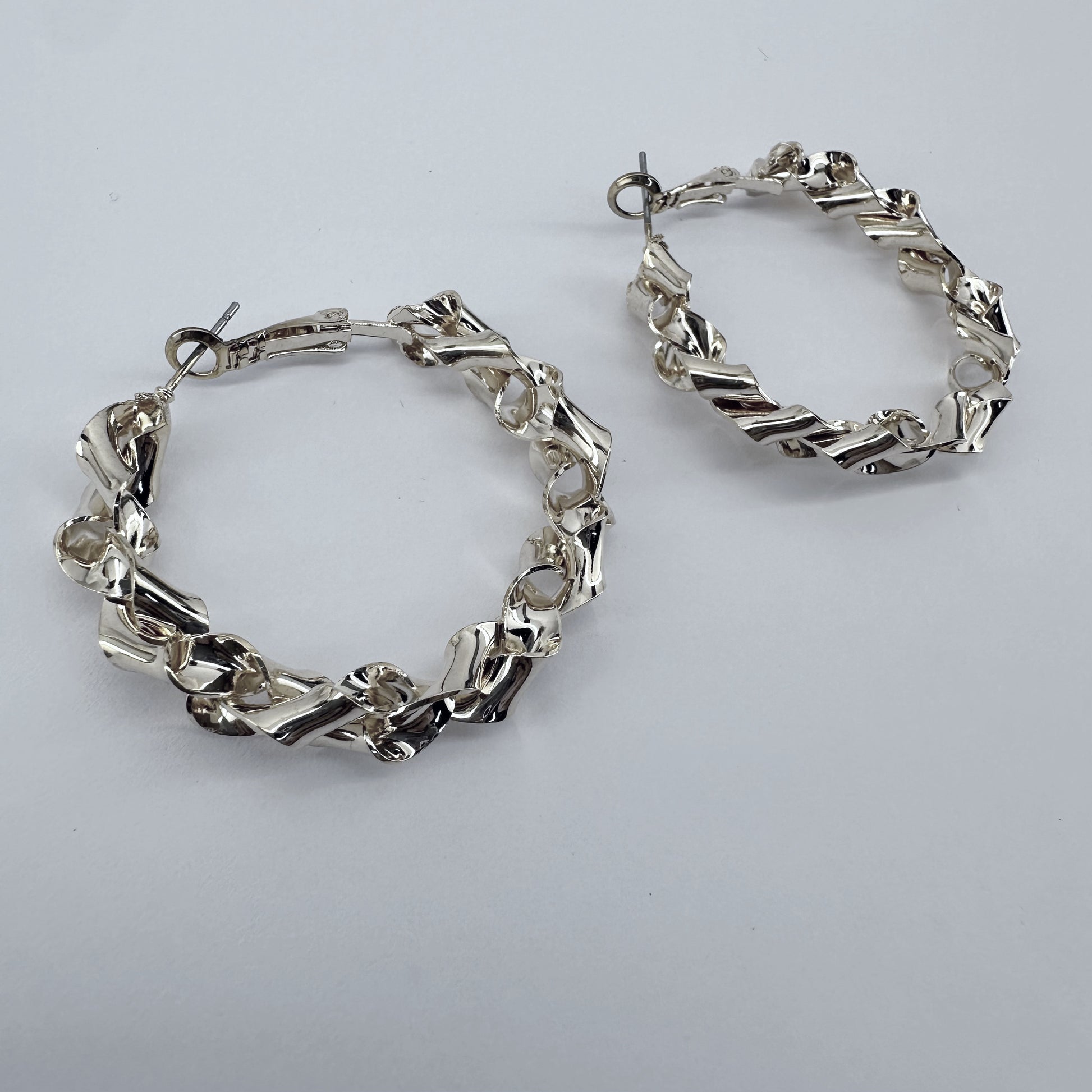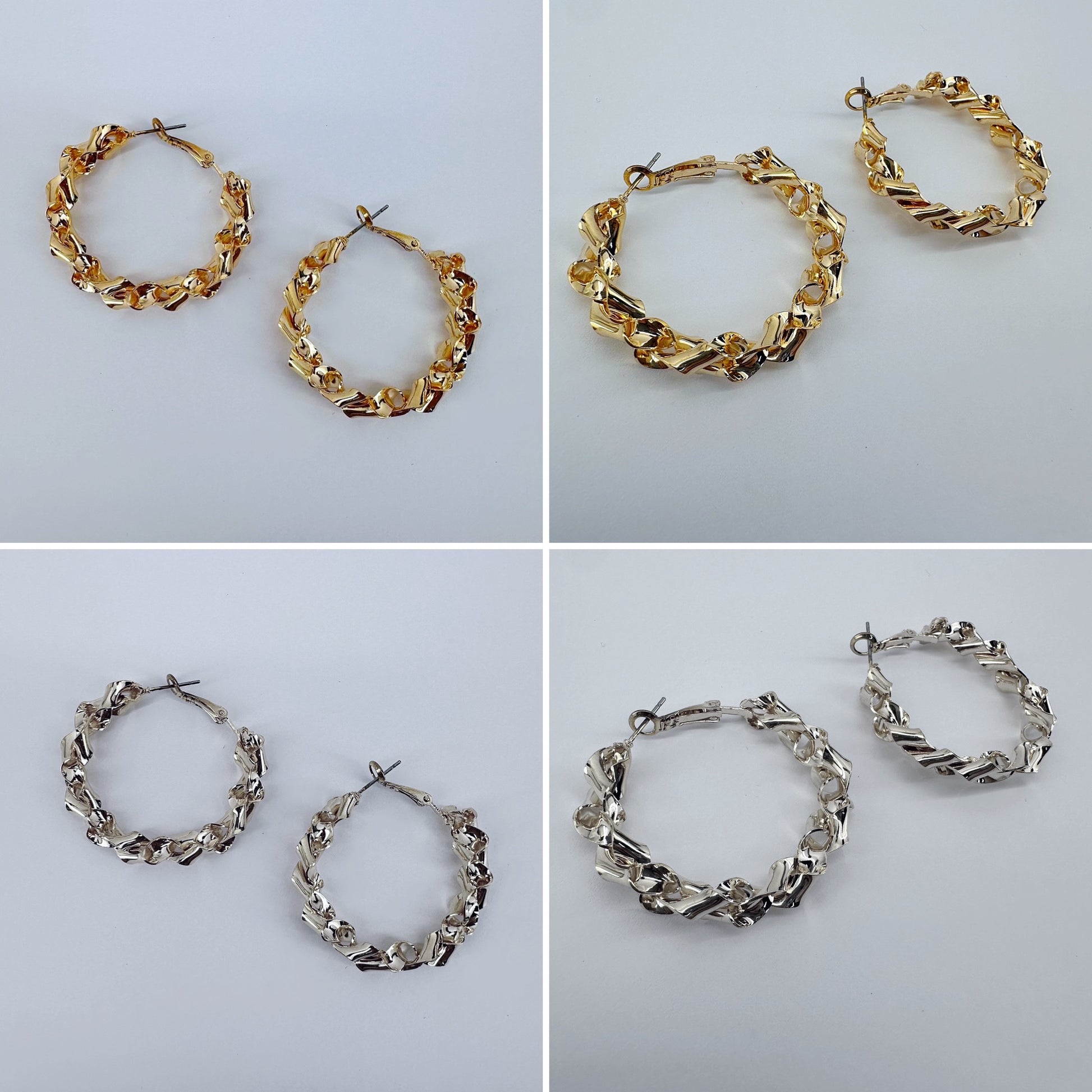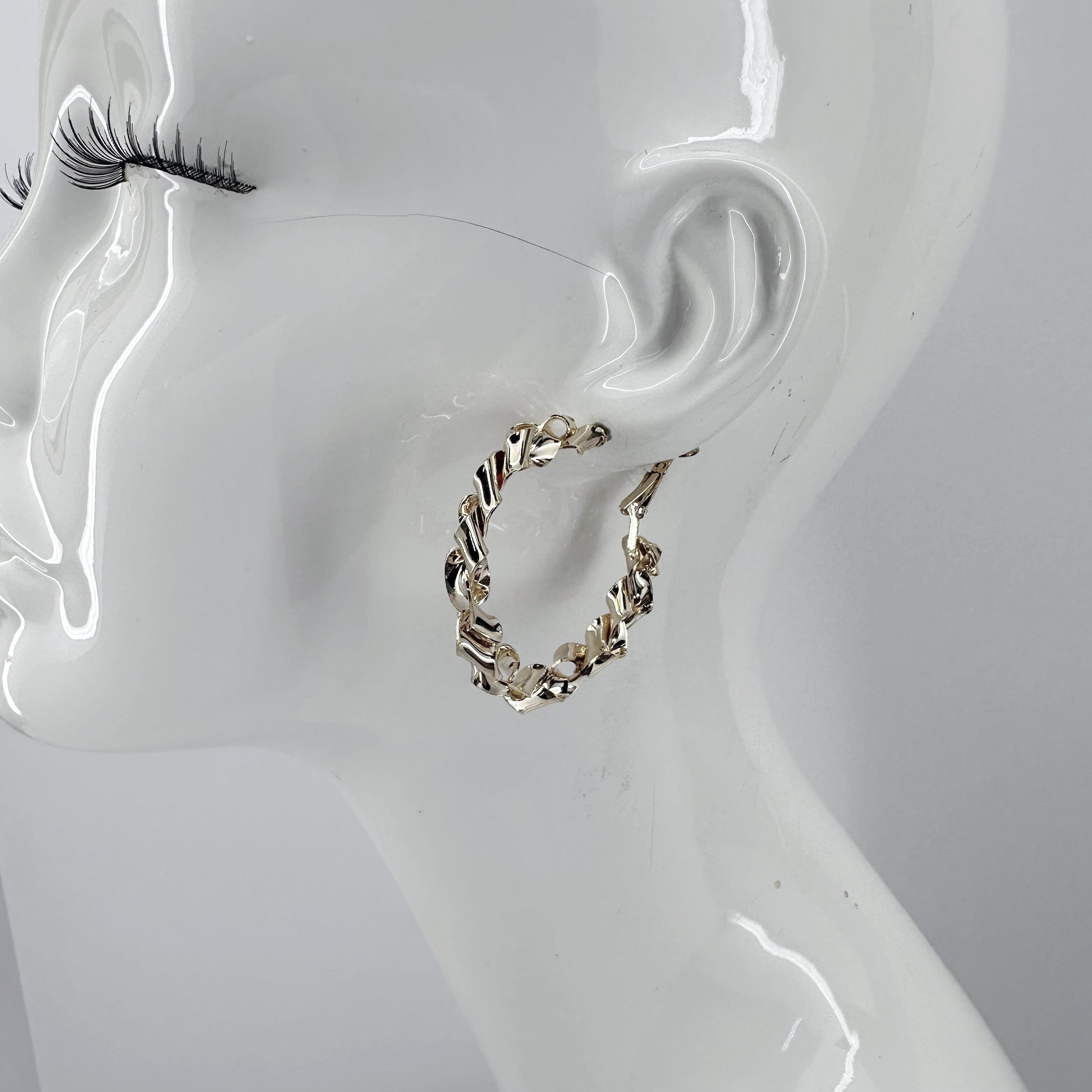 Gold or Silver Finish Twisted Metal Design Hoop Earrings
