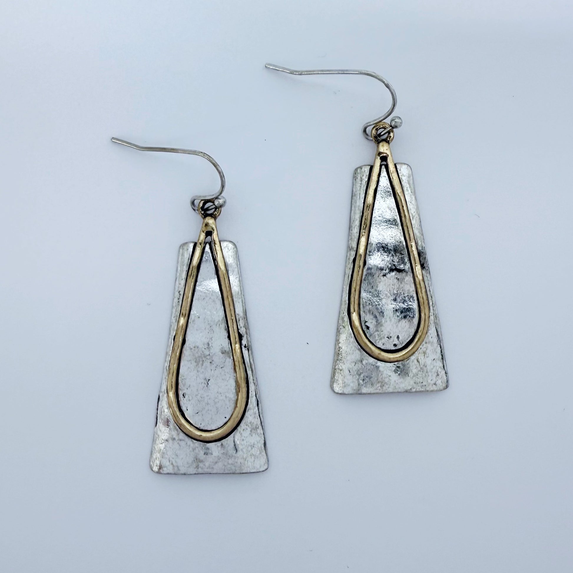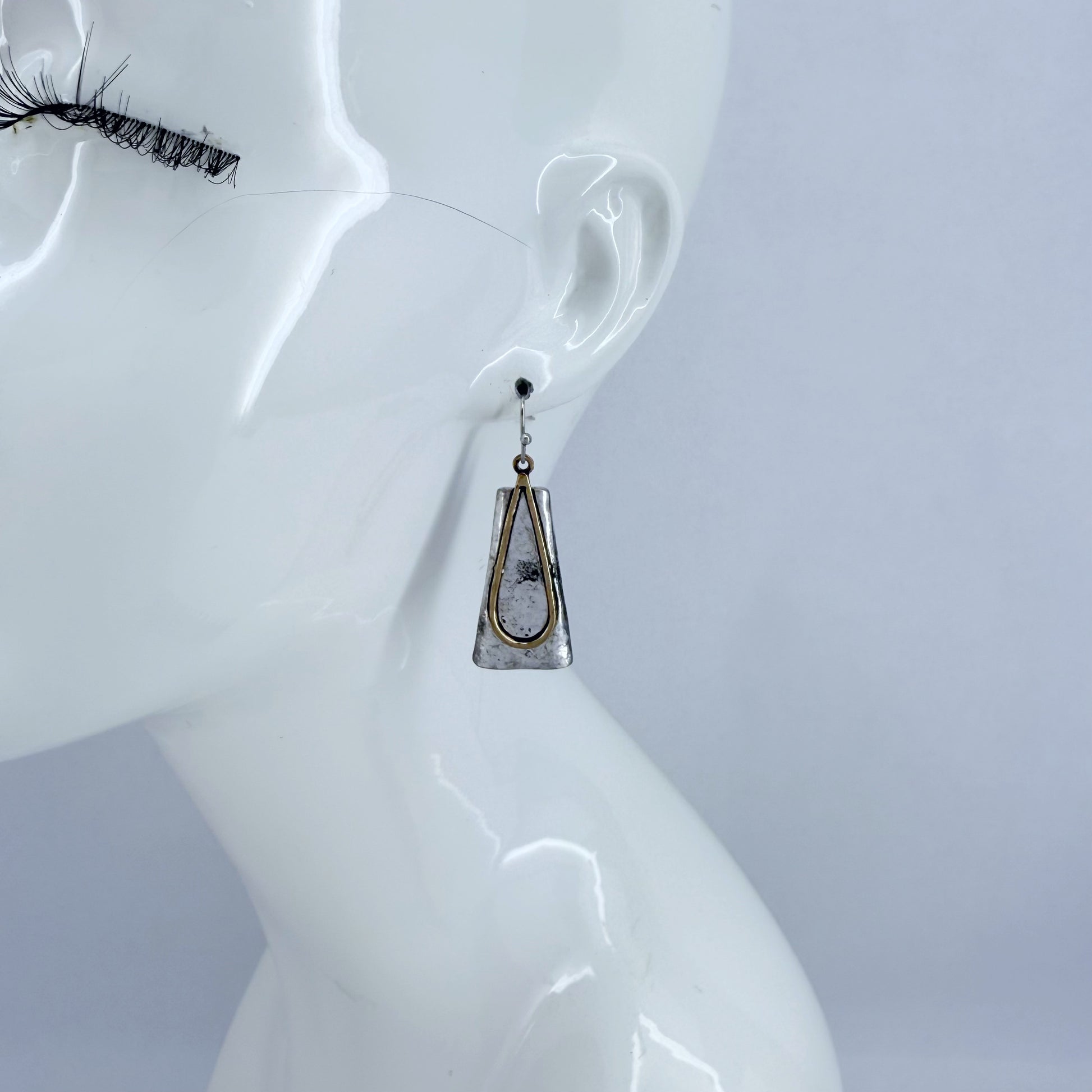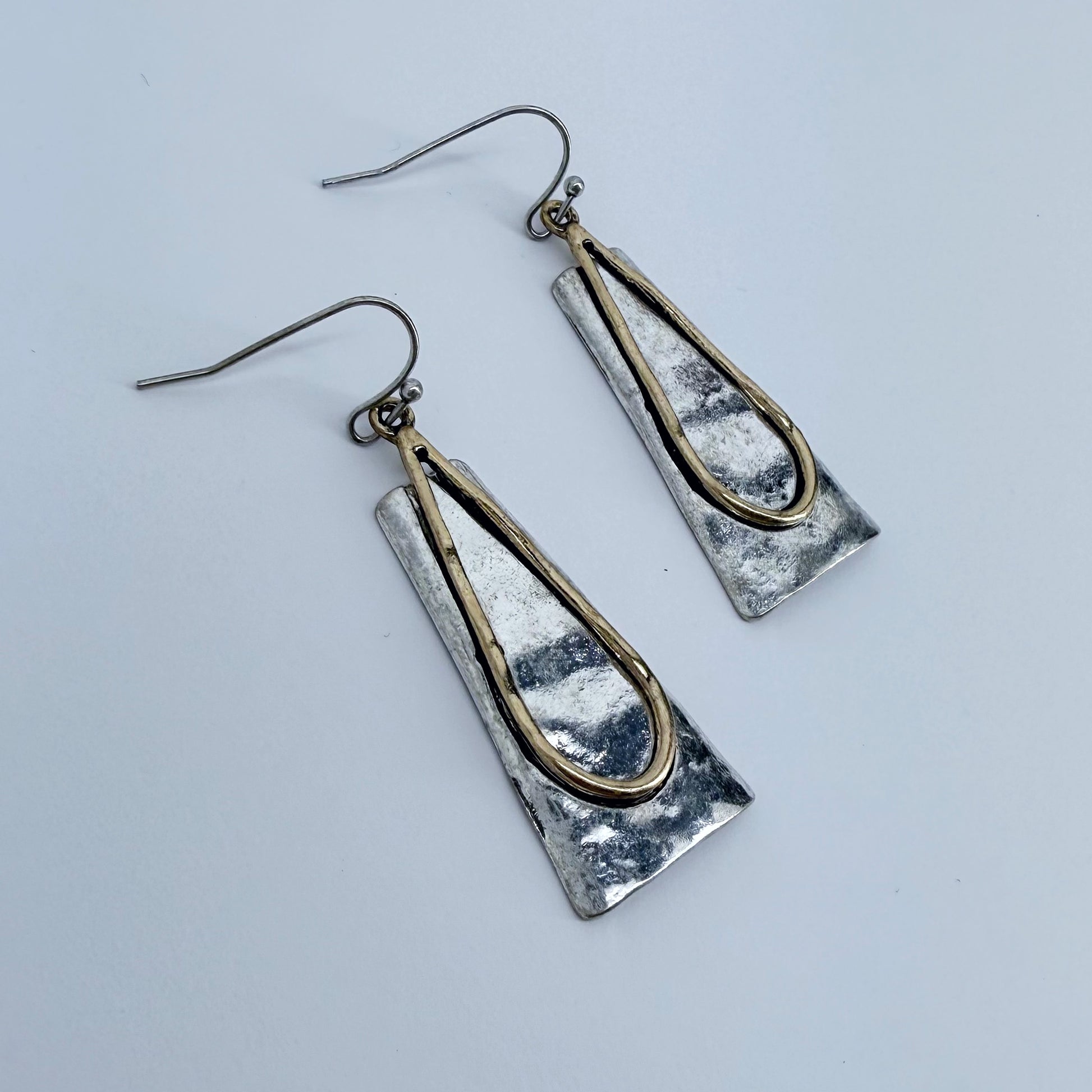 Elevate your style with these exquisite drop dangle earrings, available in Antique Silver and Gold or Patina and Rose Gold finishes. Featuring a striking triangle design, they add a touch of timeless elegance to any outfit. Perfect for making a bold yet sophisticated statement.