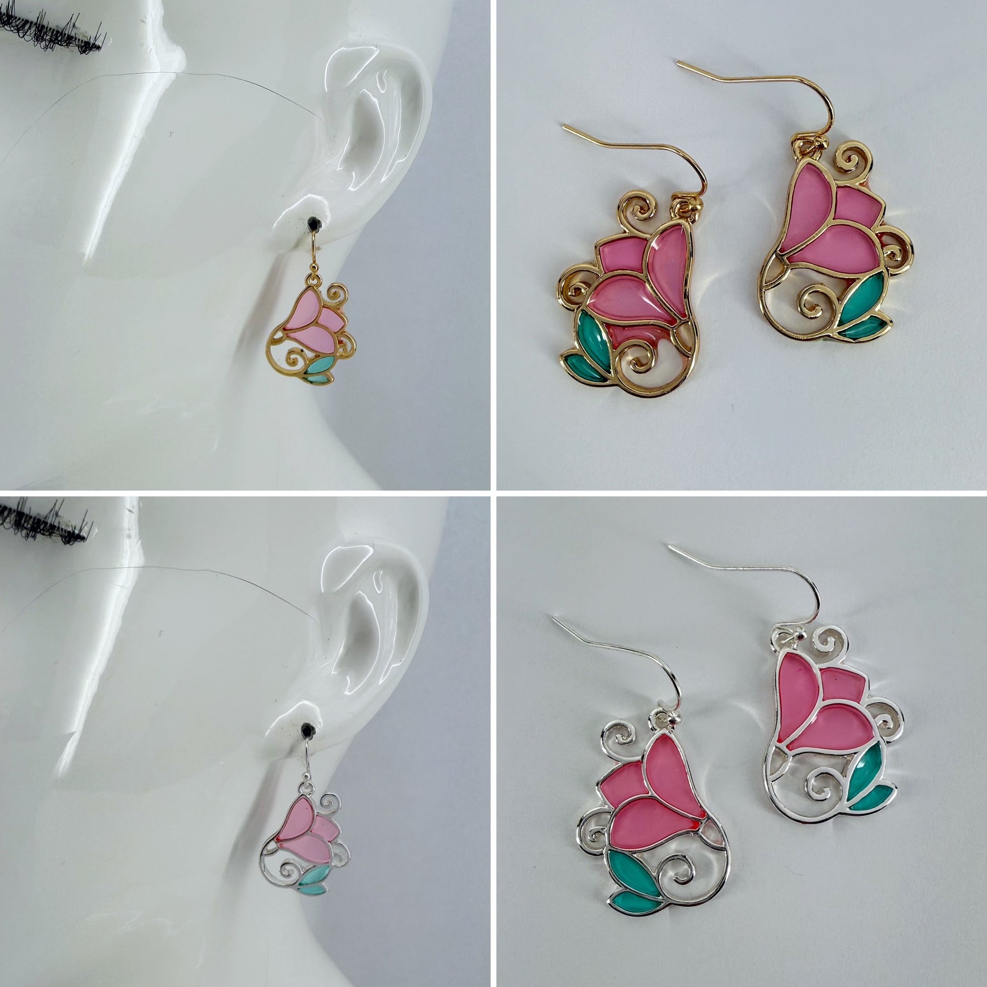 Add a touch of floral charm with these multi epoxy rose flower earrings, beautifully crafted and available in elegant gold or silver finishes.