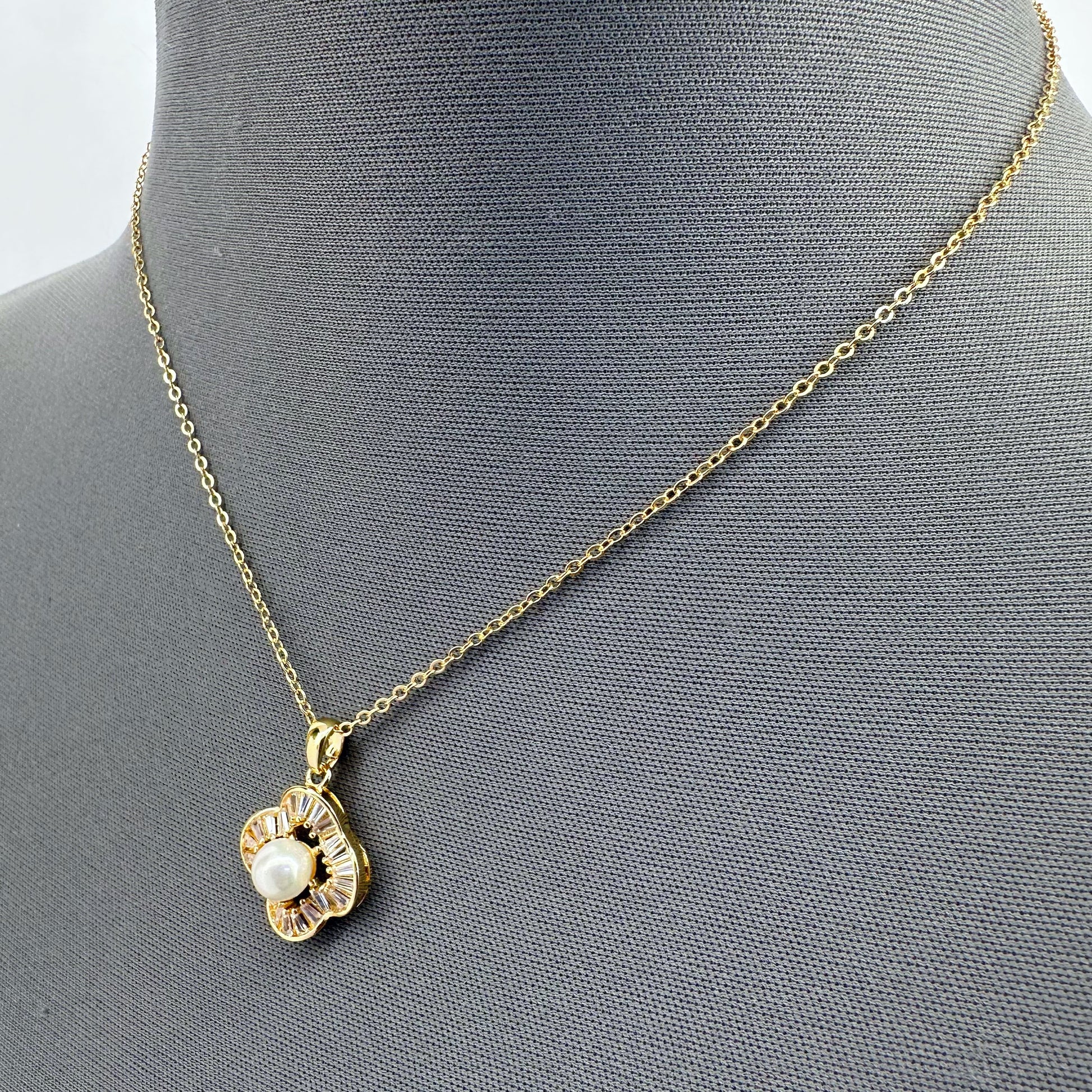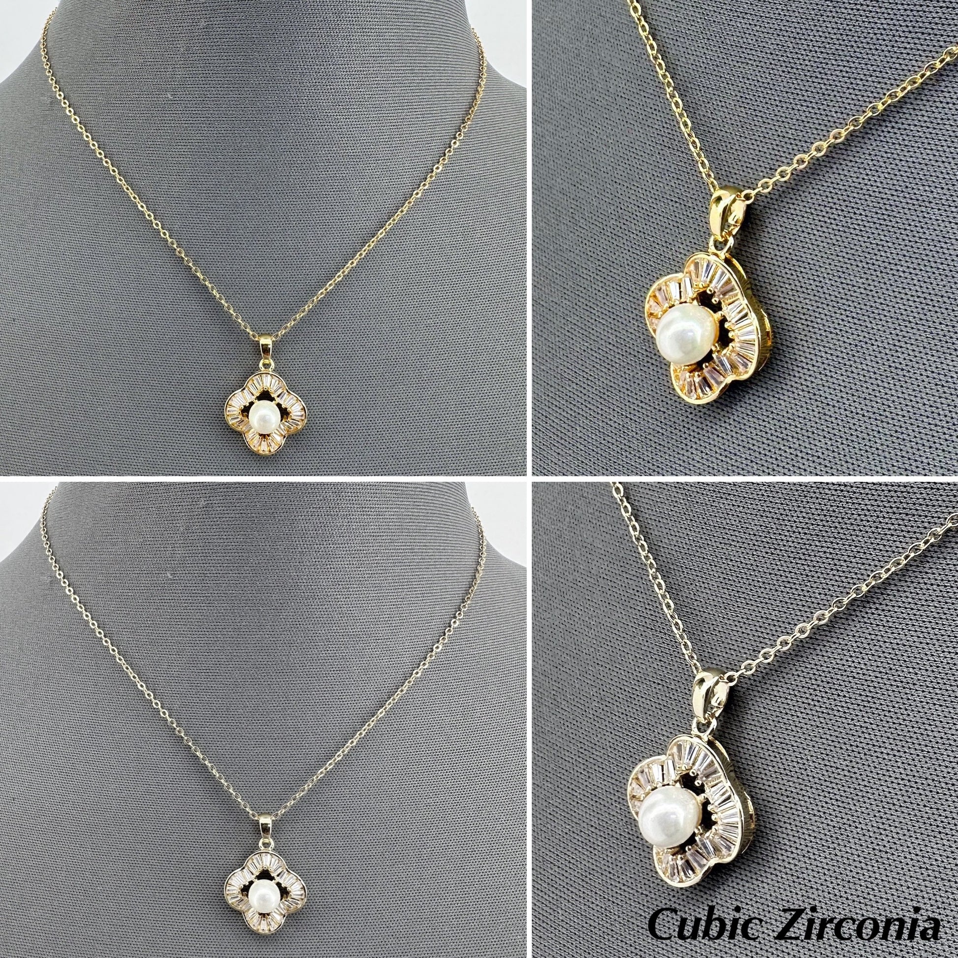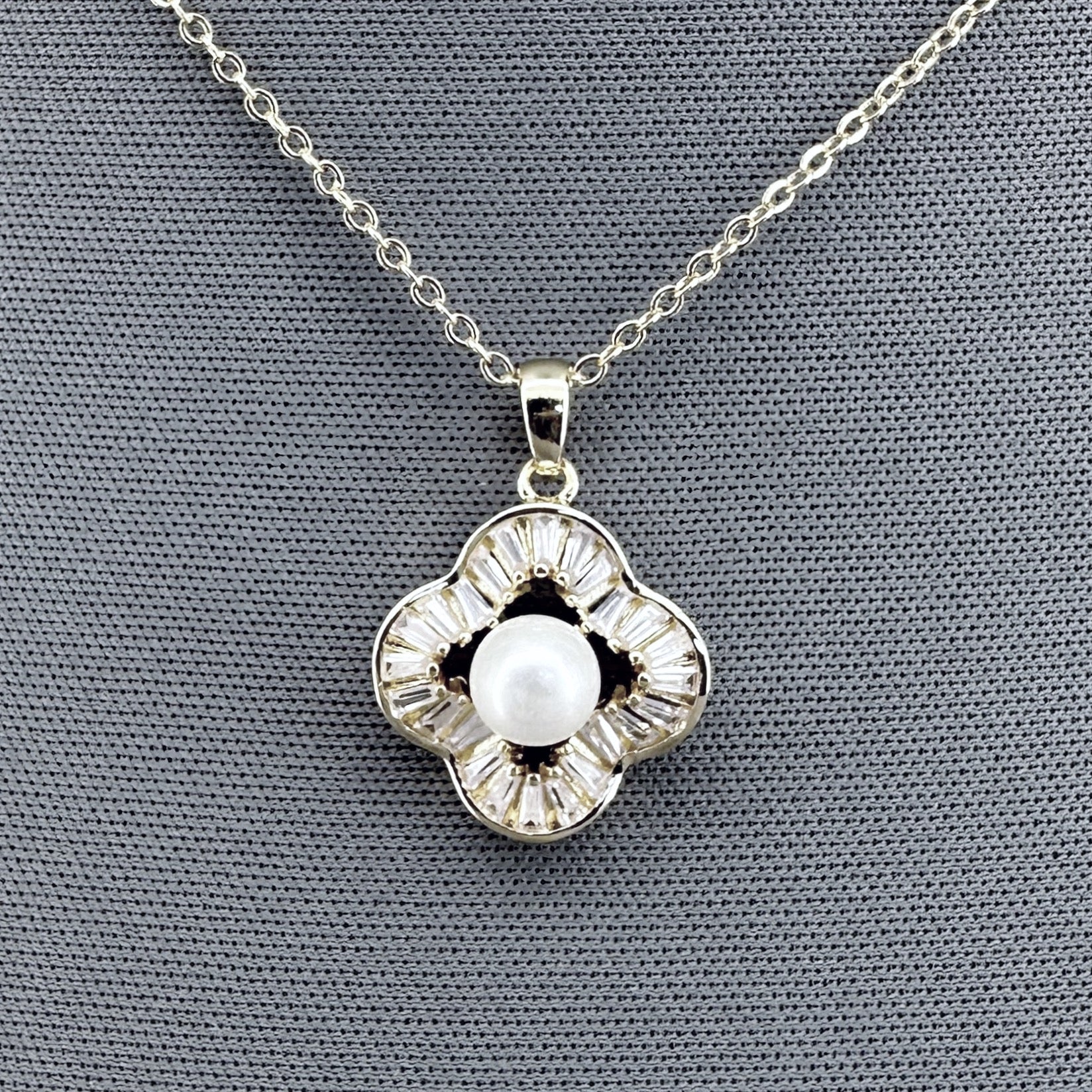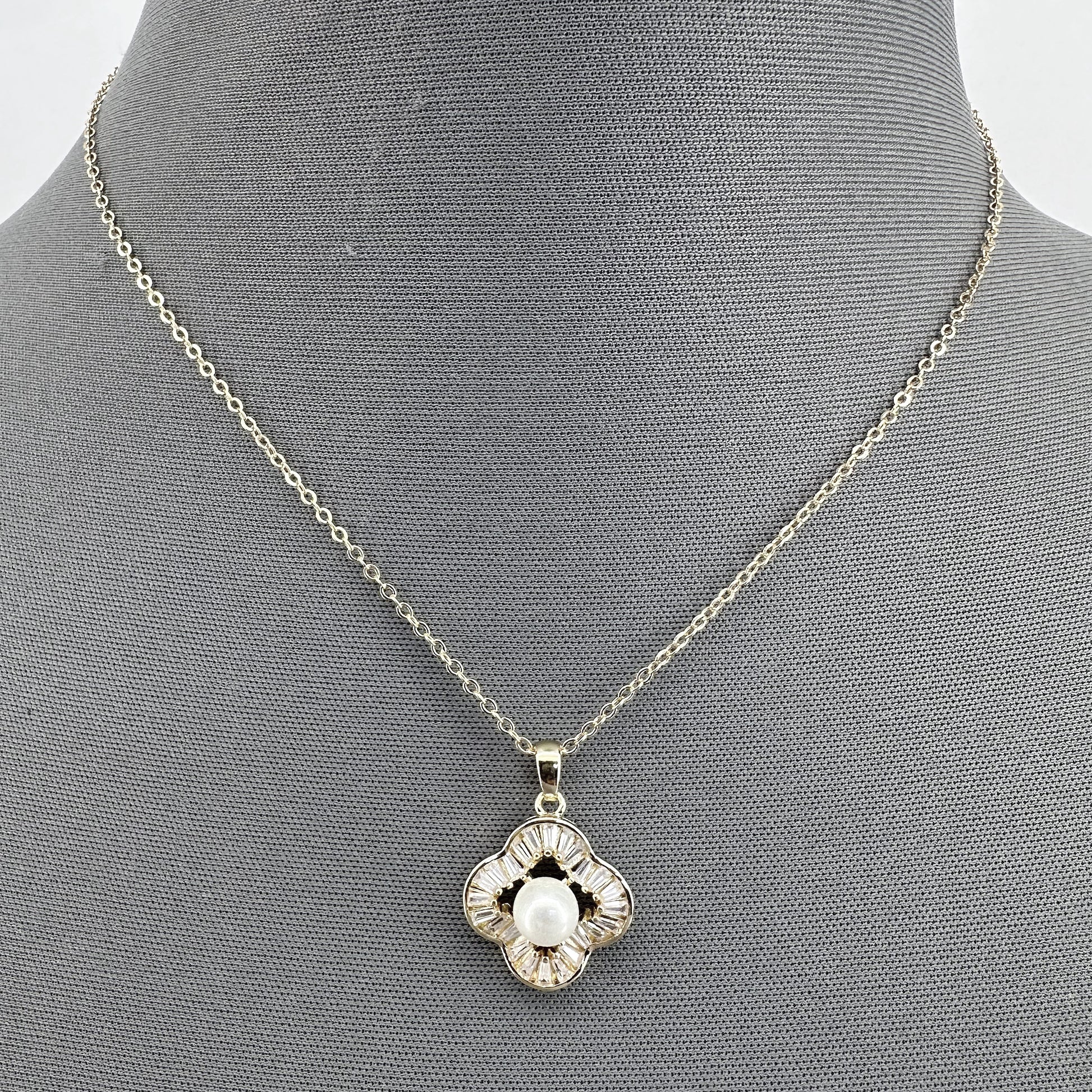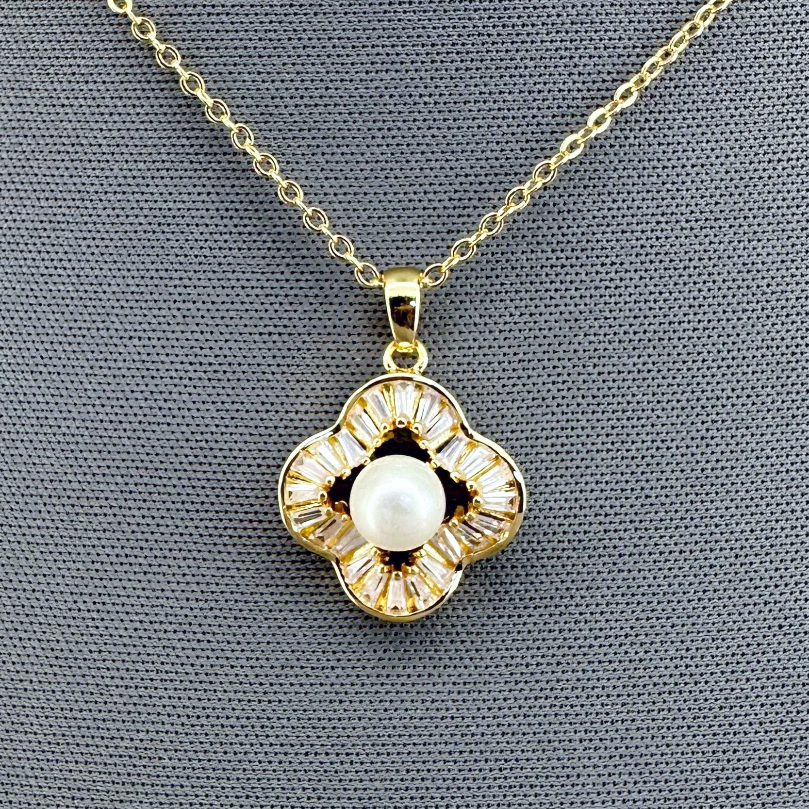 Clover Dangle with Clear Stones And Pearl Gold Or Silver