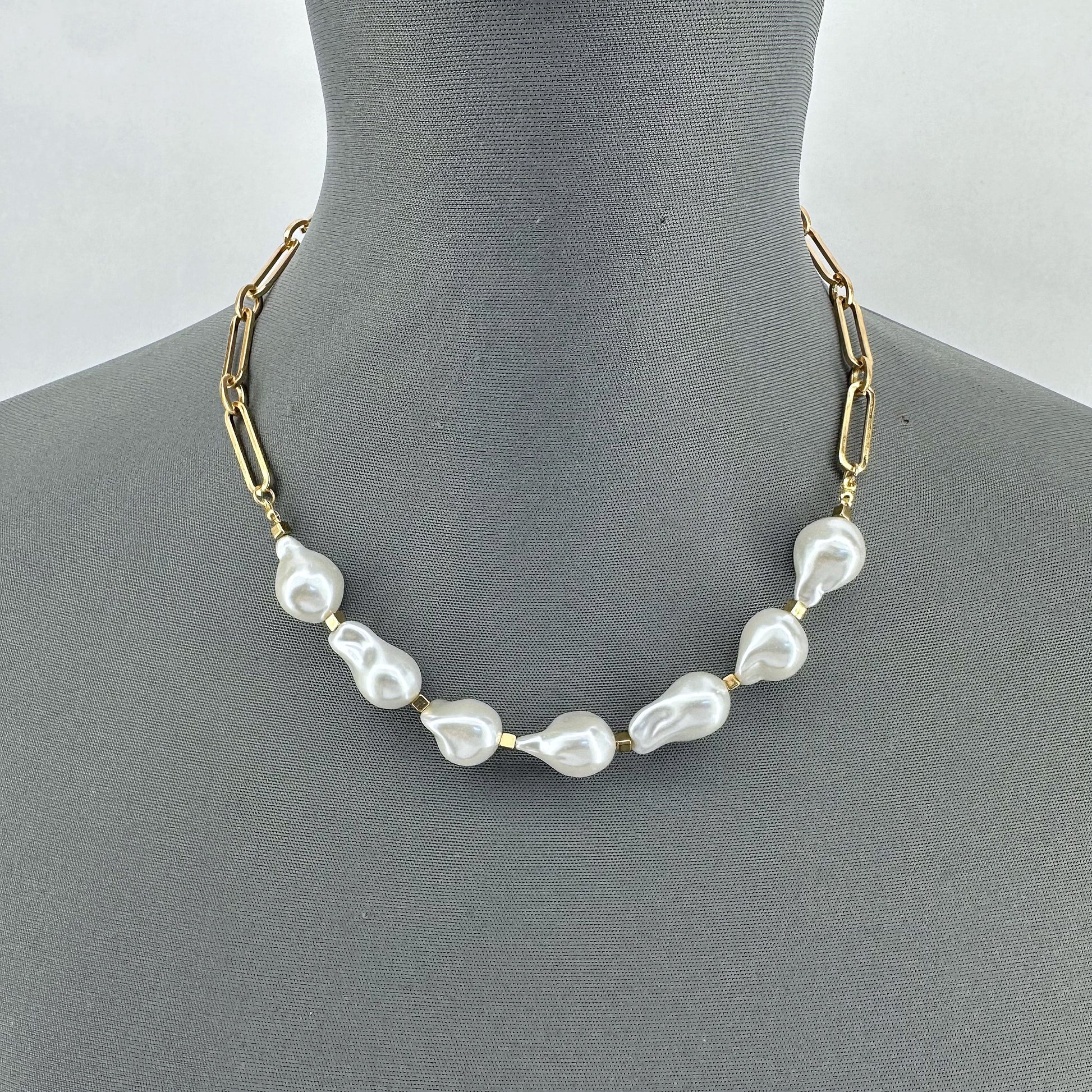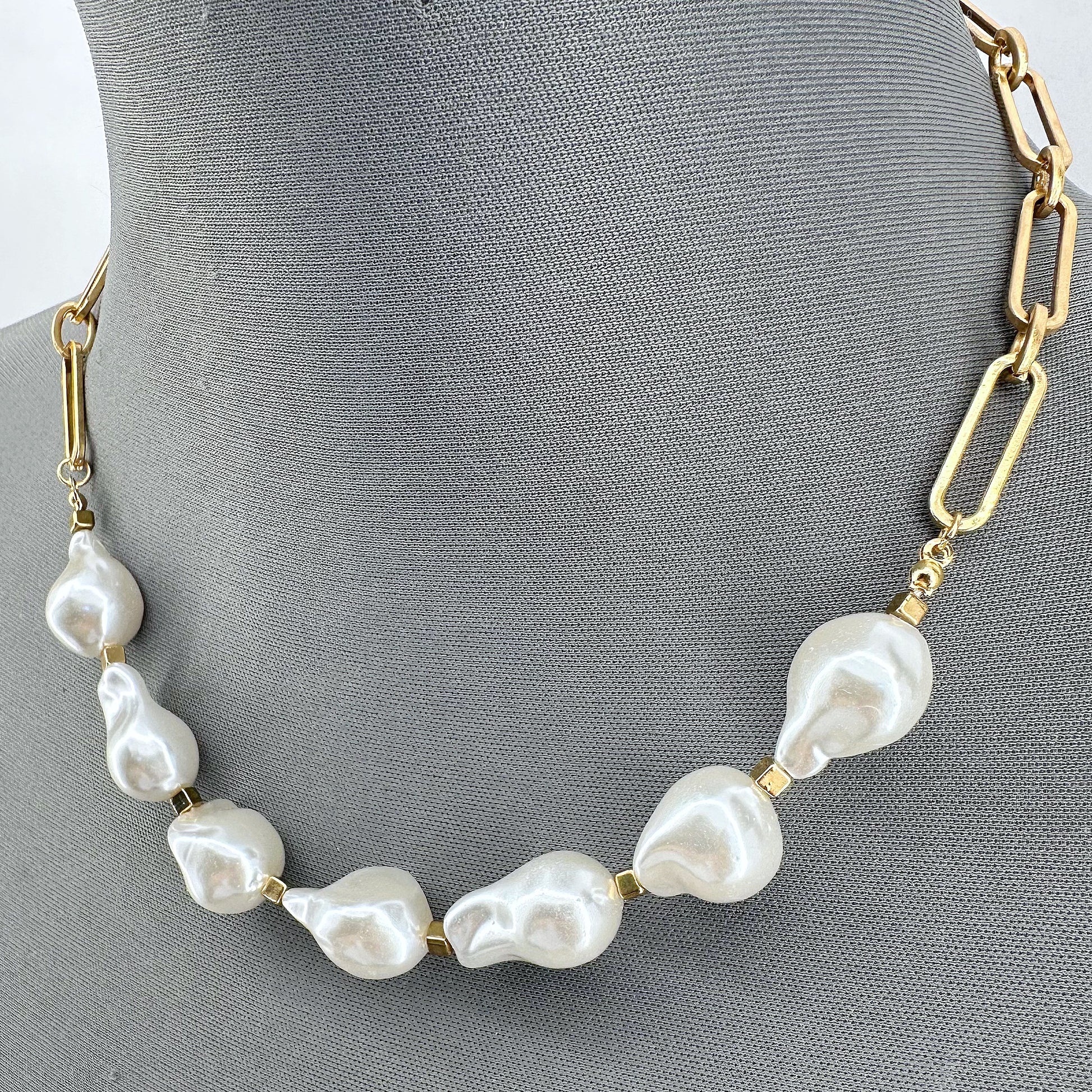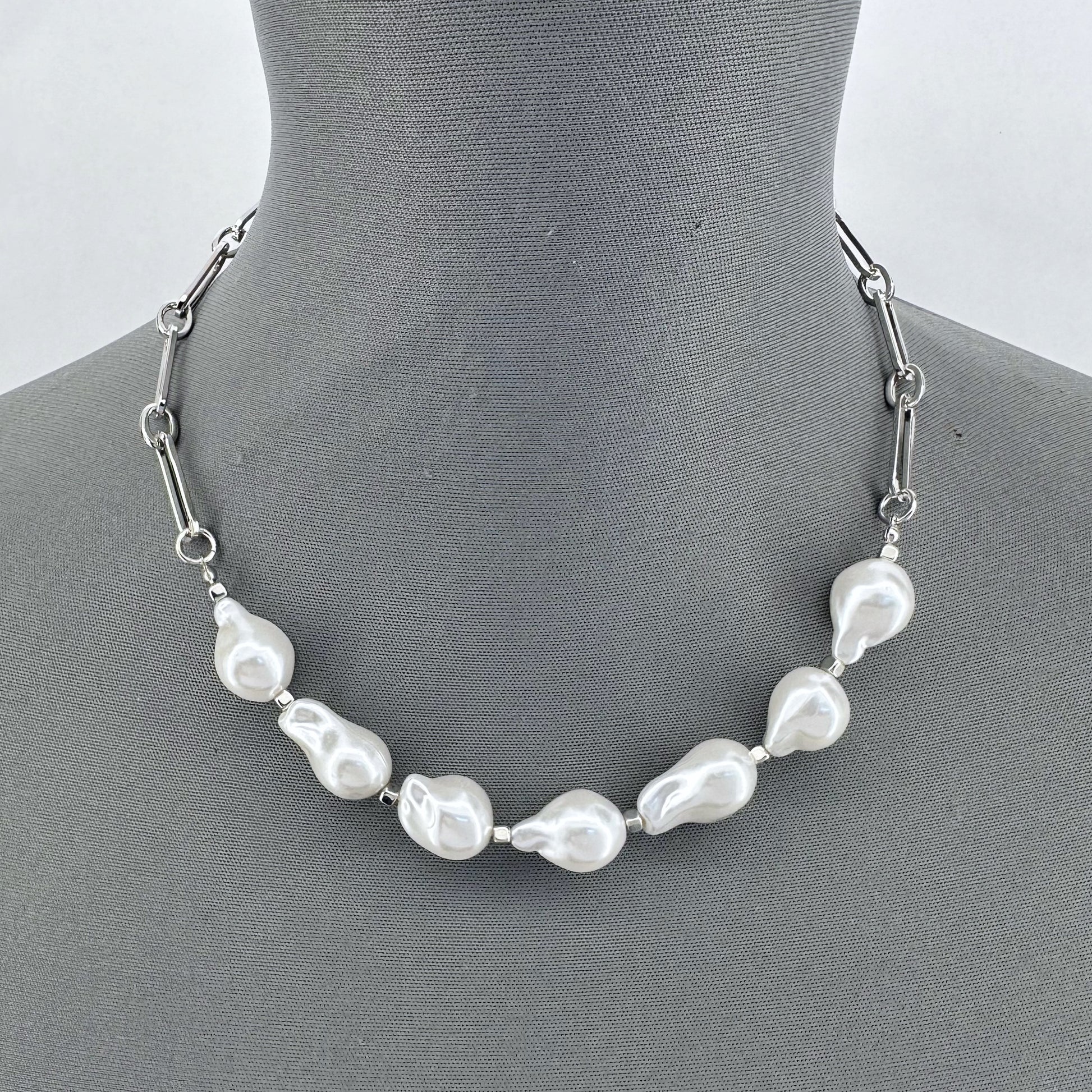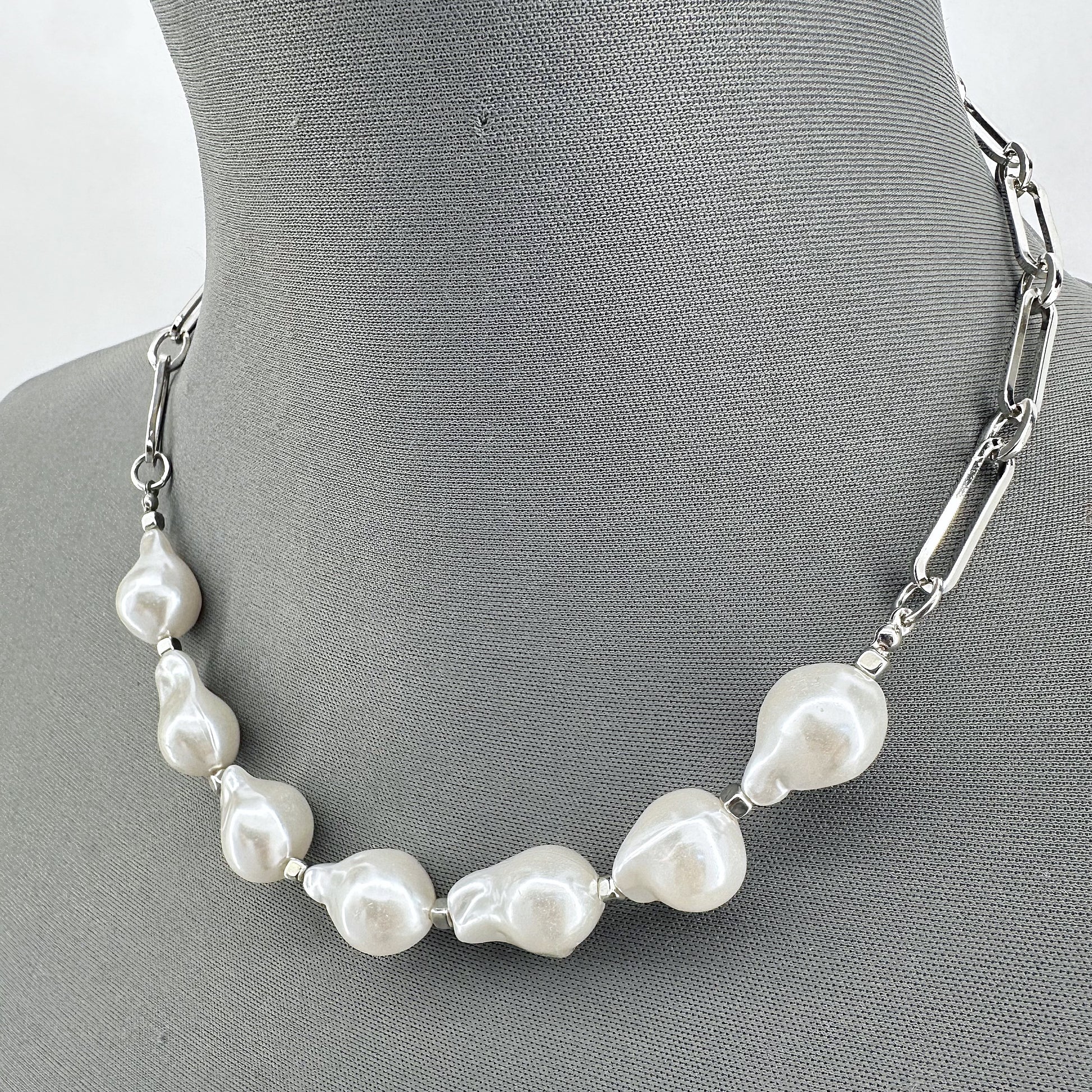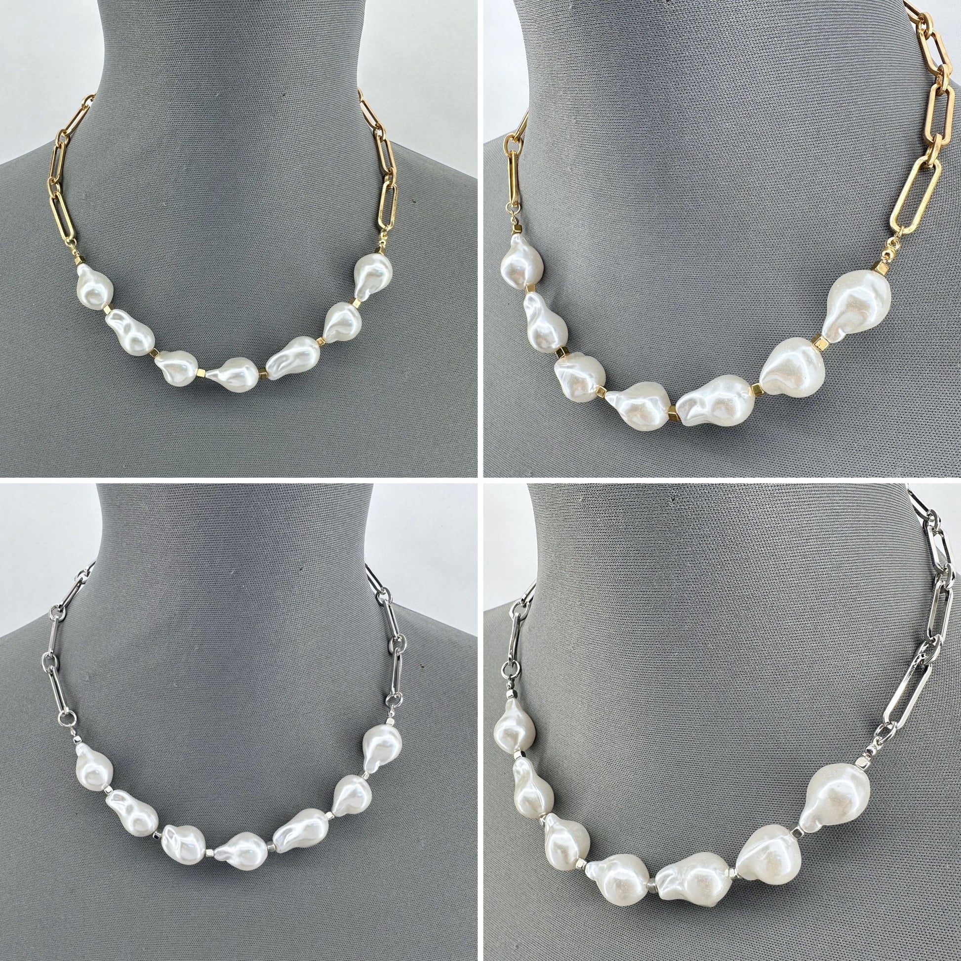 Gold Or Silver Finish Link Chain With Baroque Pearl Necklace