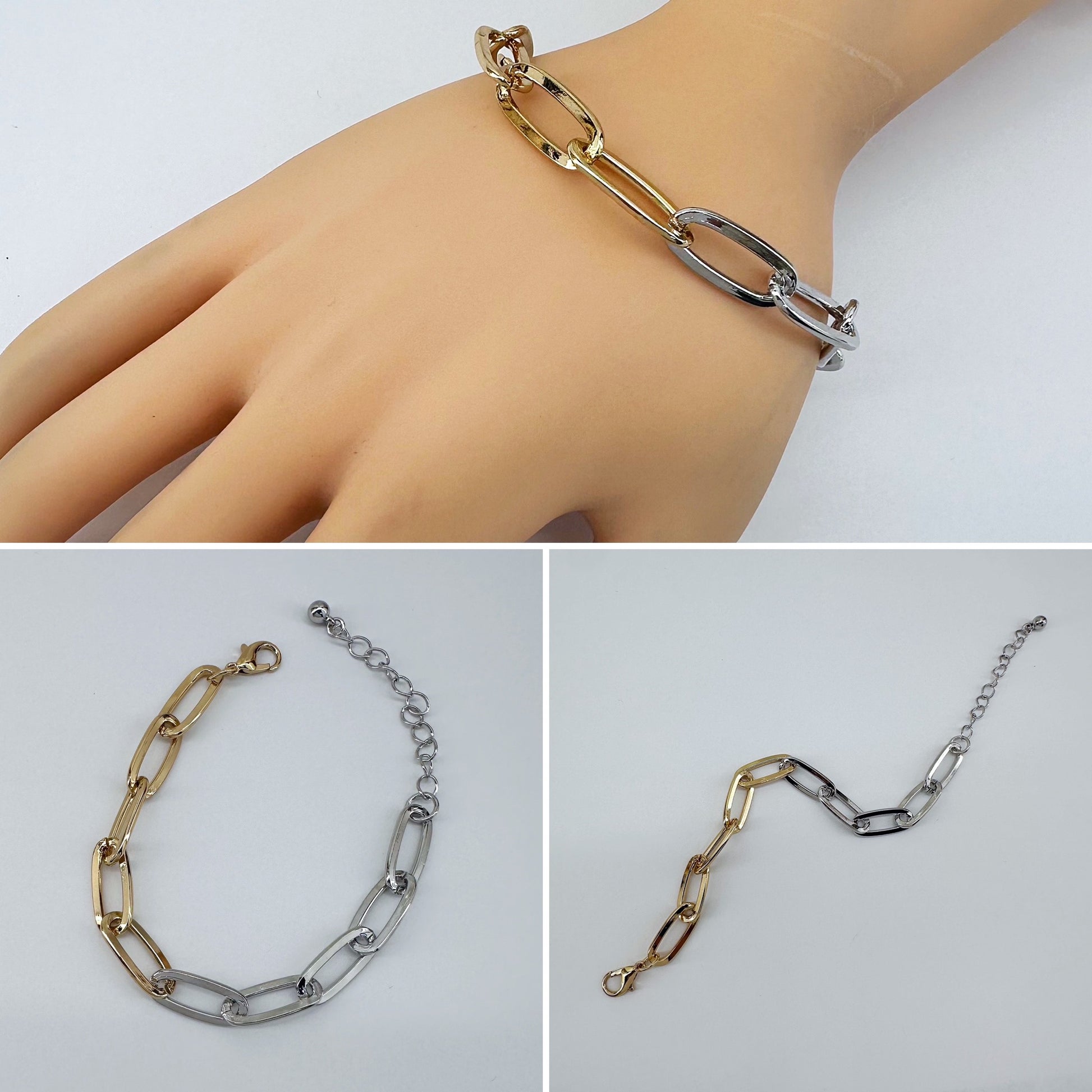 Two Tones Gold And Silver Link Chain Bracelet