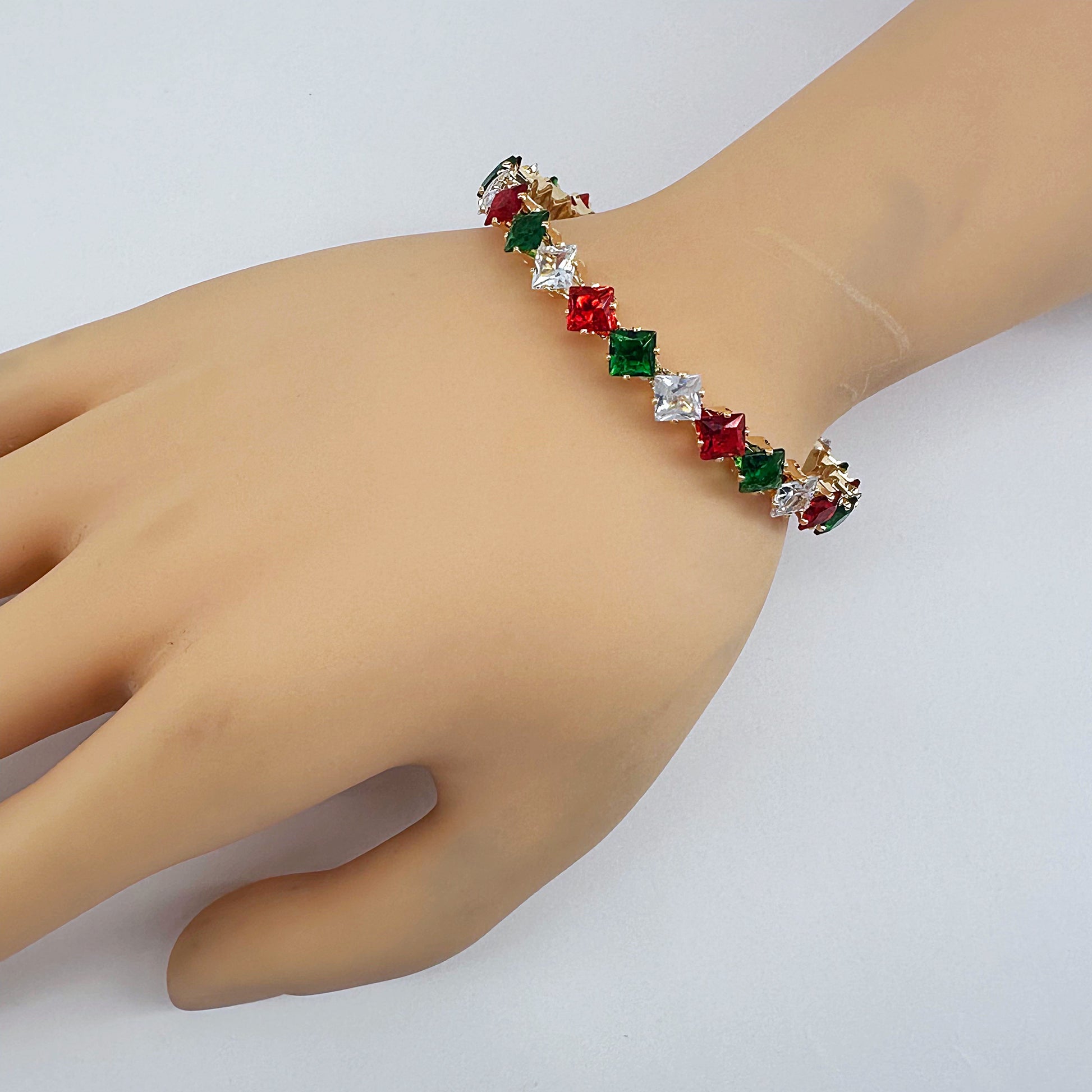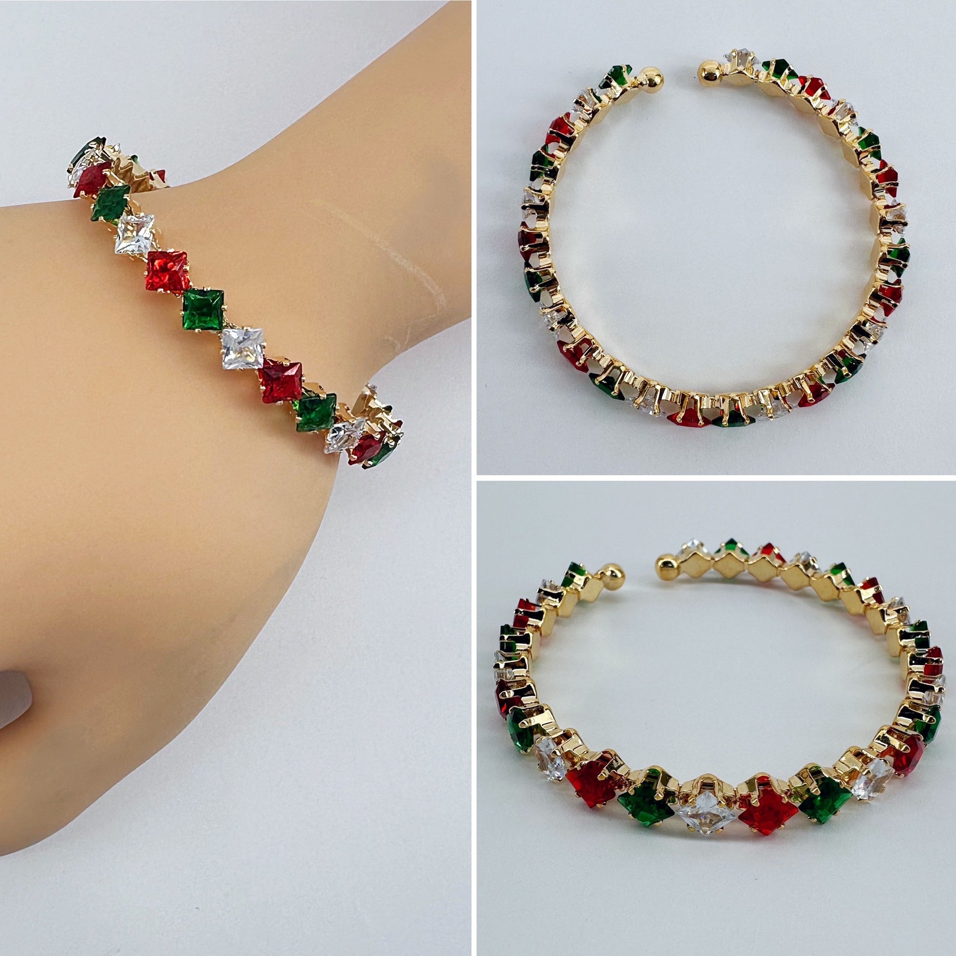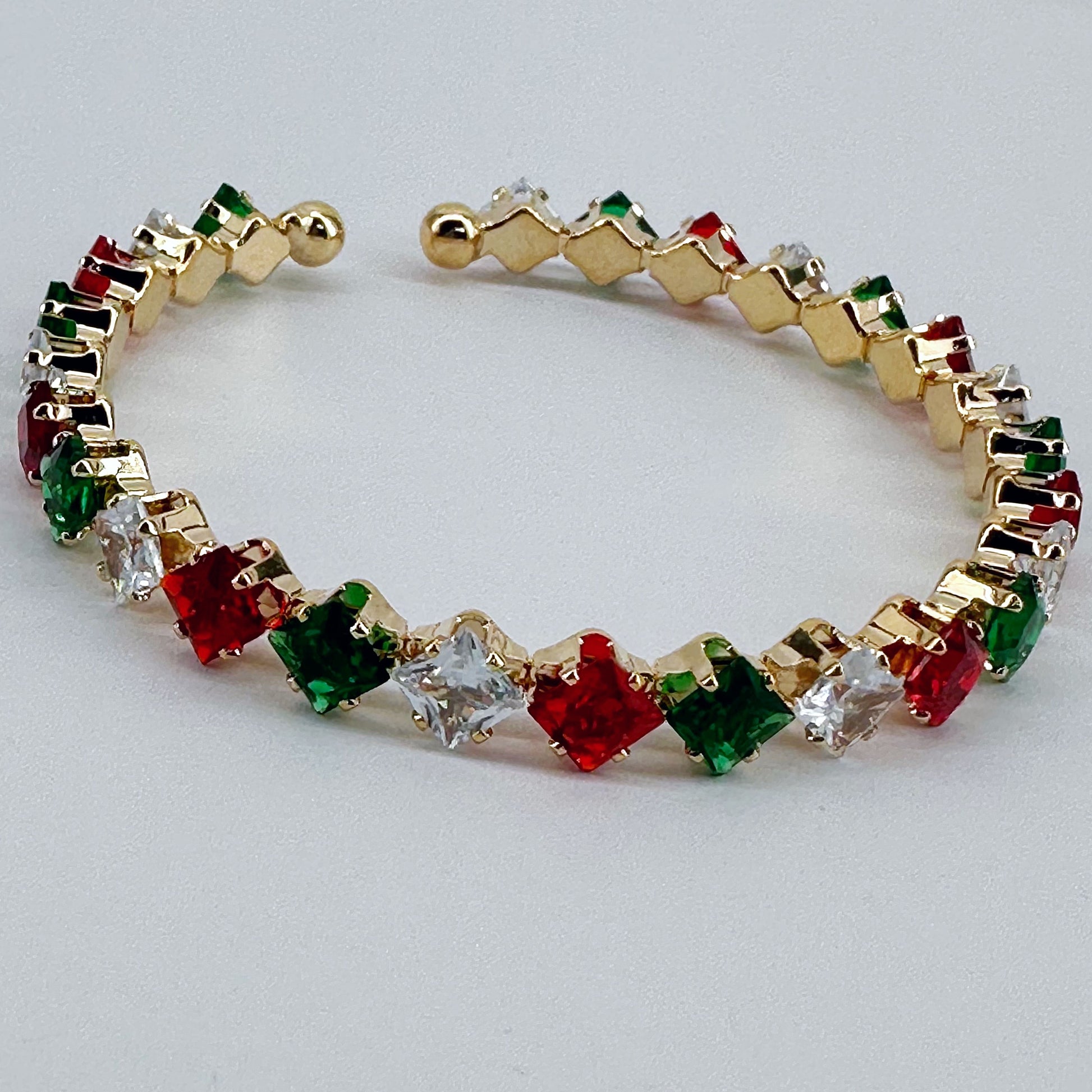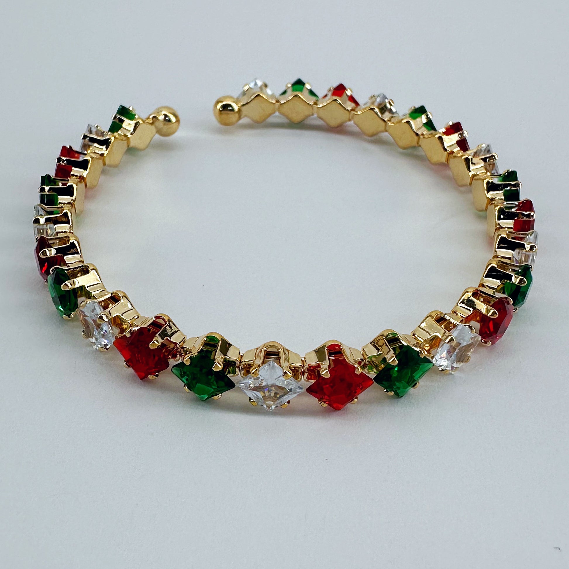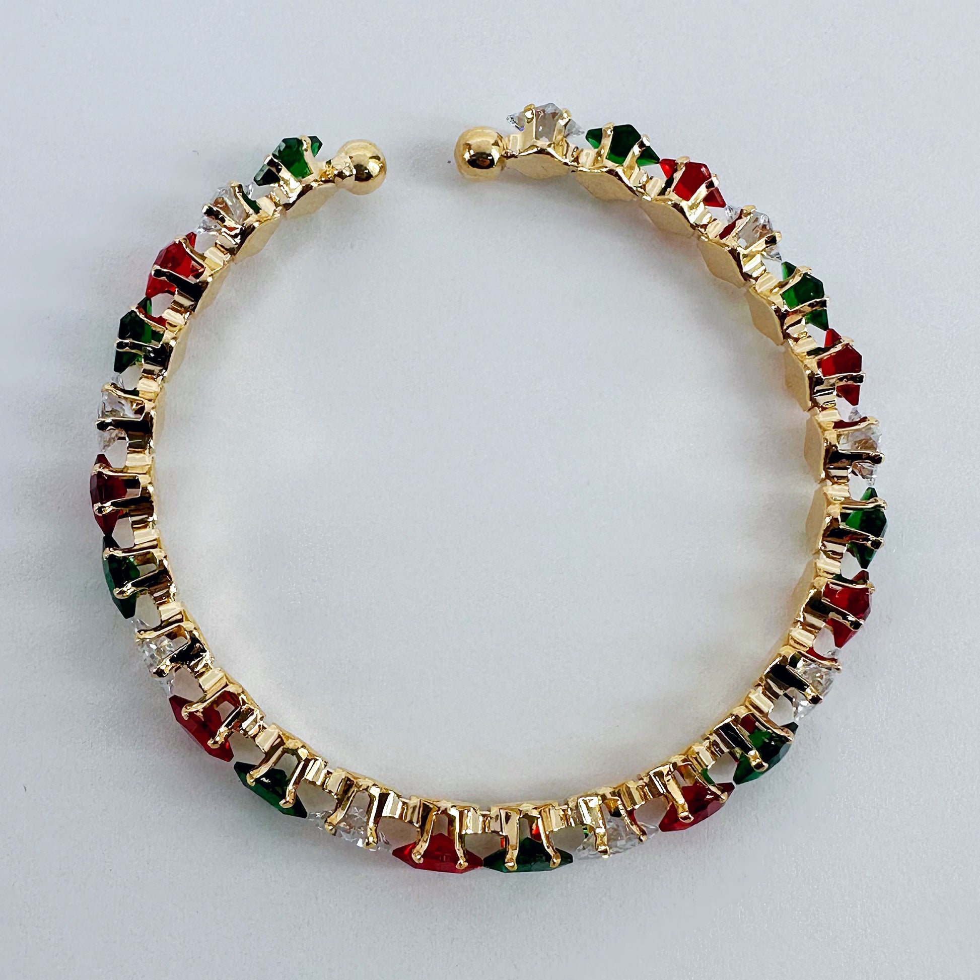 Cubic Zirconia Xmas Cuff Gold Finish Bracelet