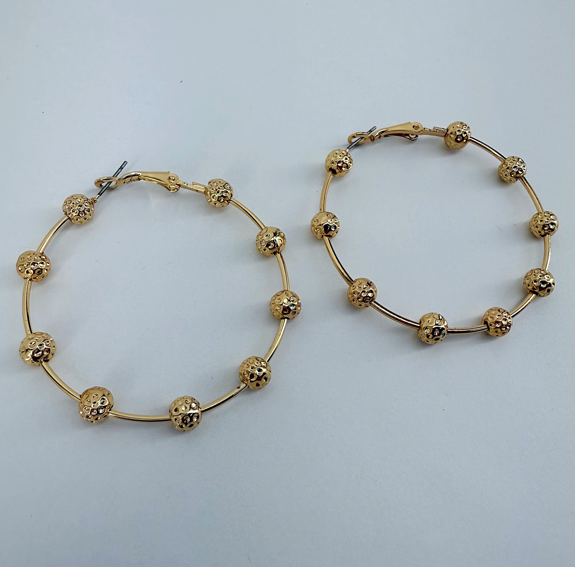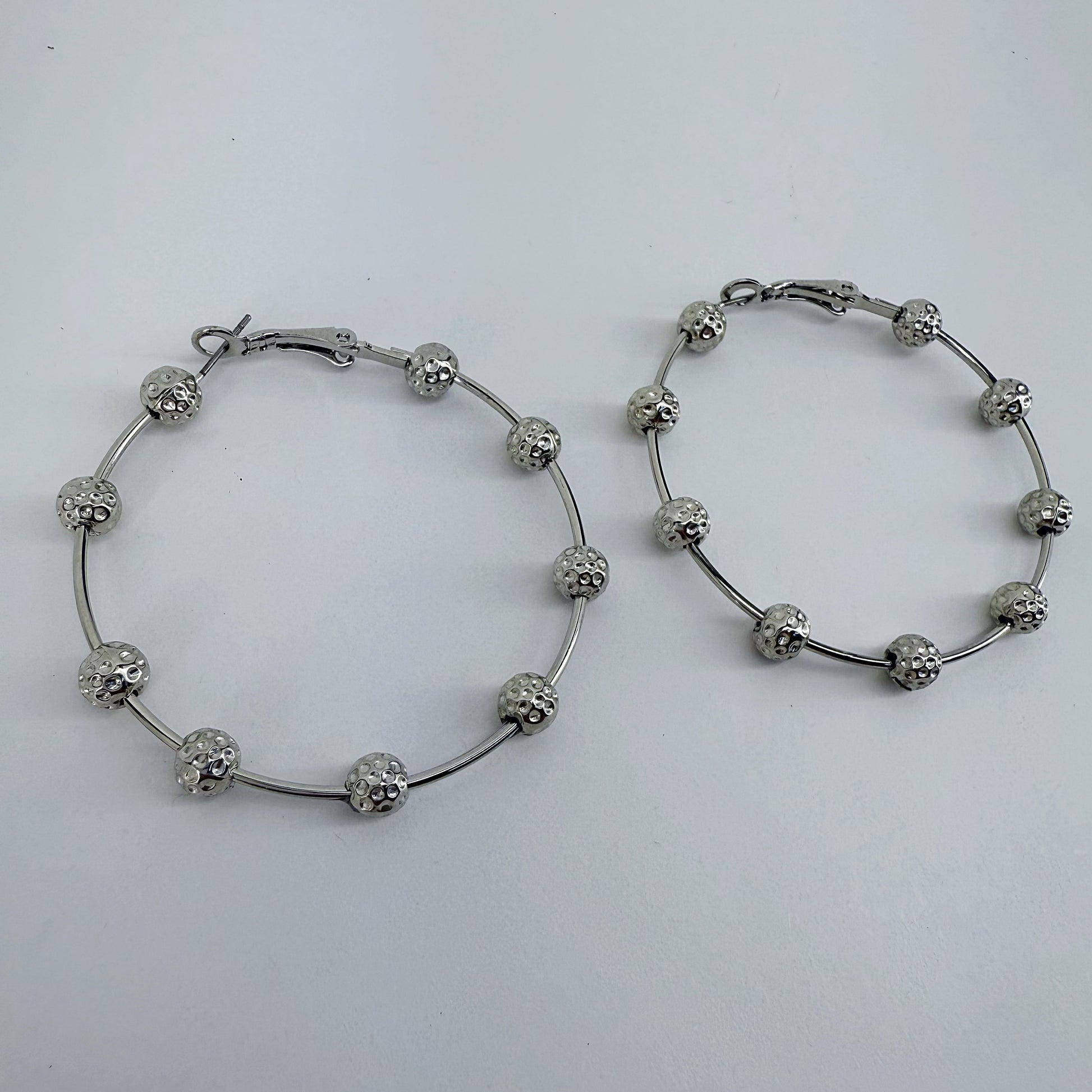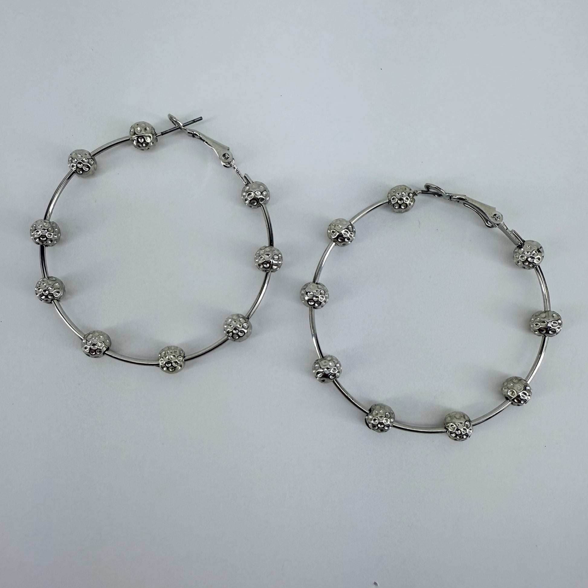 Enhance your appearance with the stunning Hoop Earring, adorned with beautifully textured Hammered Beads. At 2 inches Diameter, these earrings will add a touch of elegance and style to any outfit.