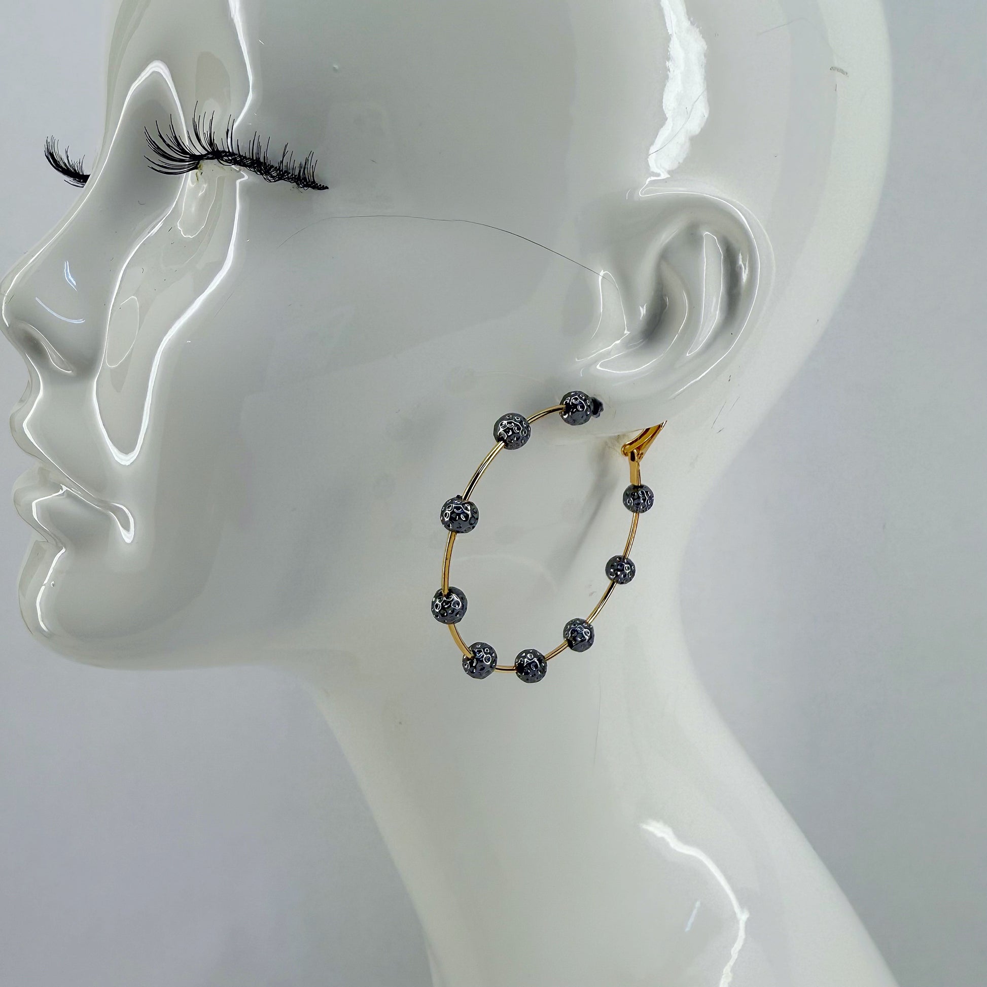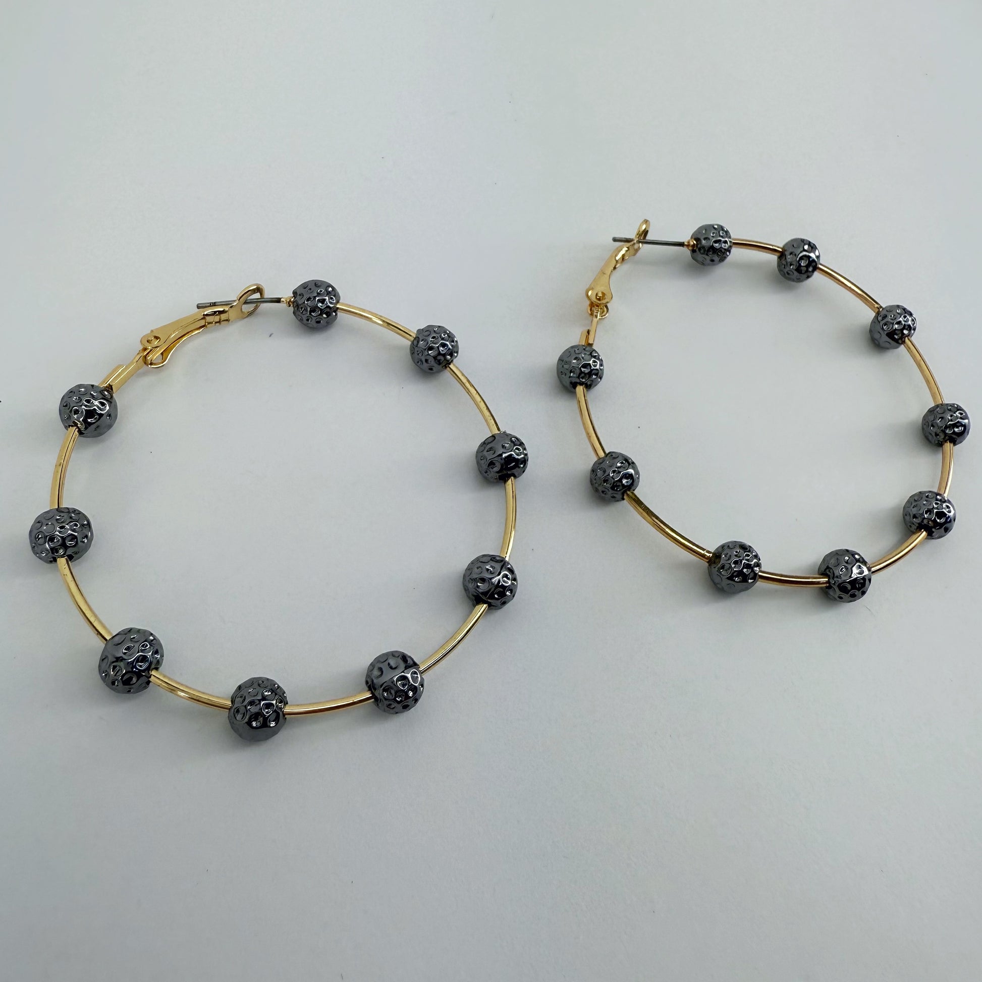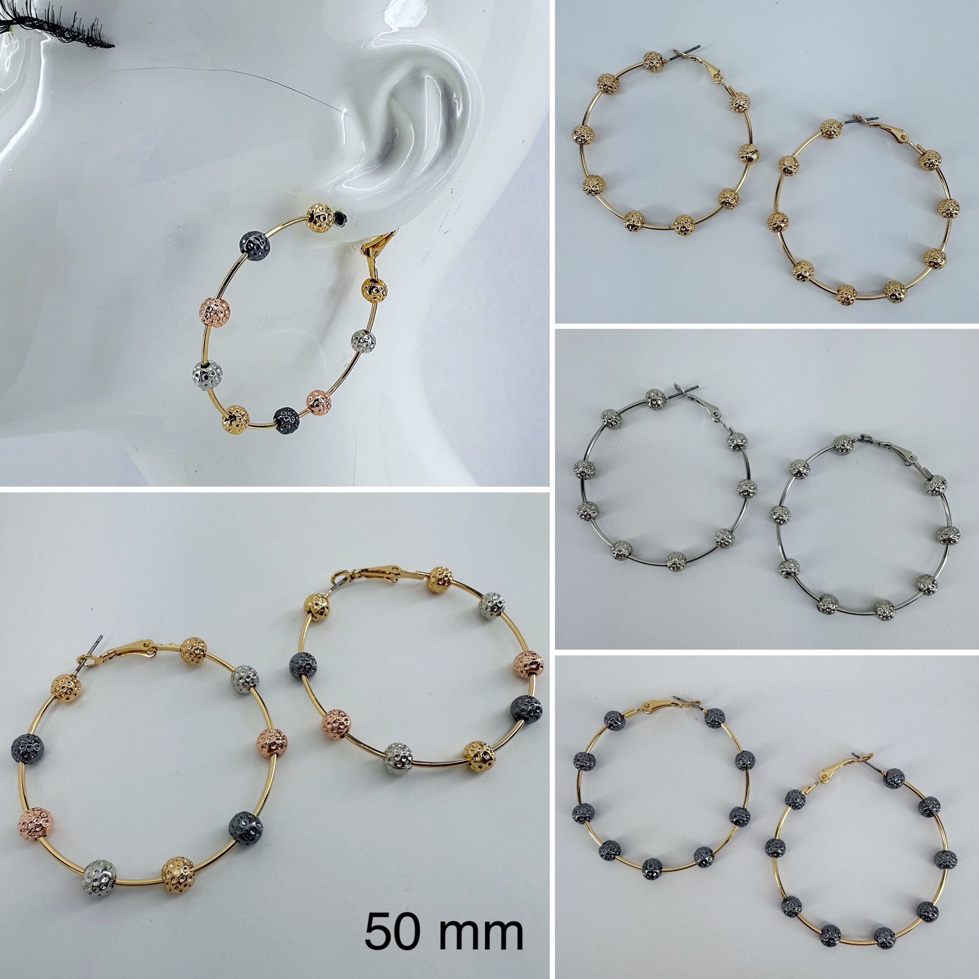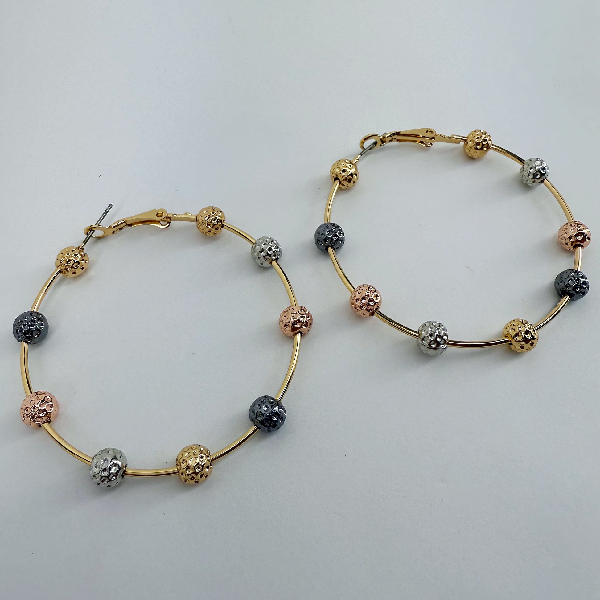 Enhance your appearance with the stunning Hoop Earring, adorned with beautifully textured Hammered Beads. At 2 inches Diameter, these earrings will add a touch of elegance and style to any outfit.