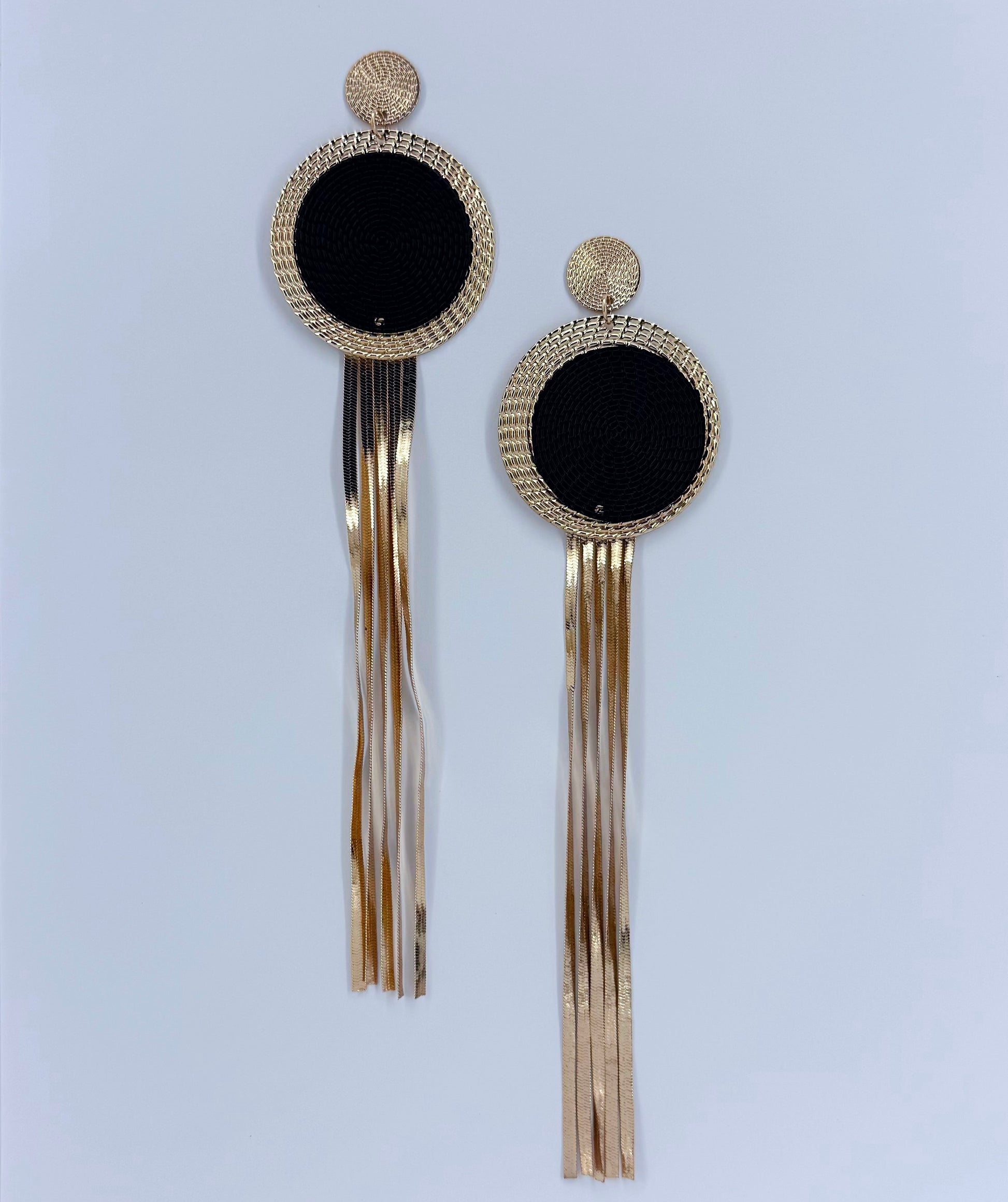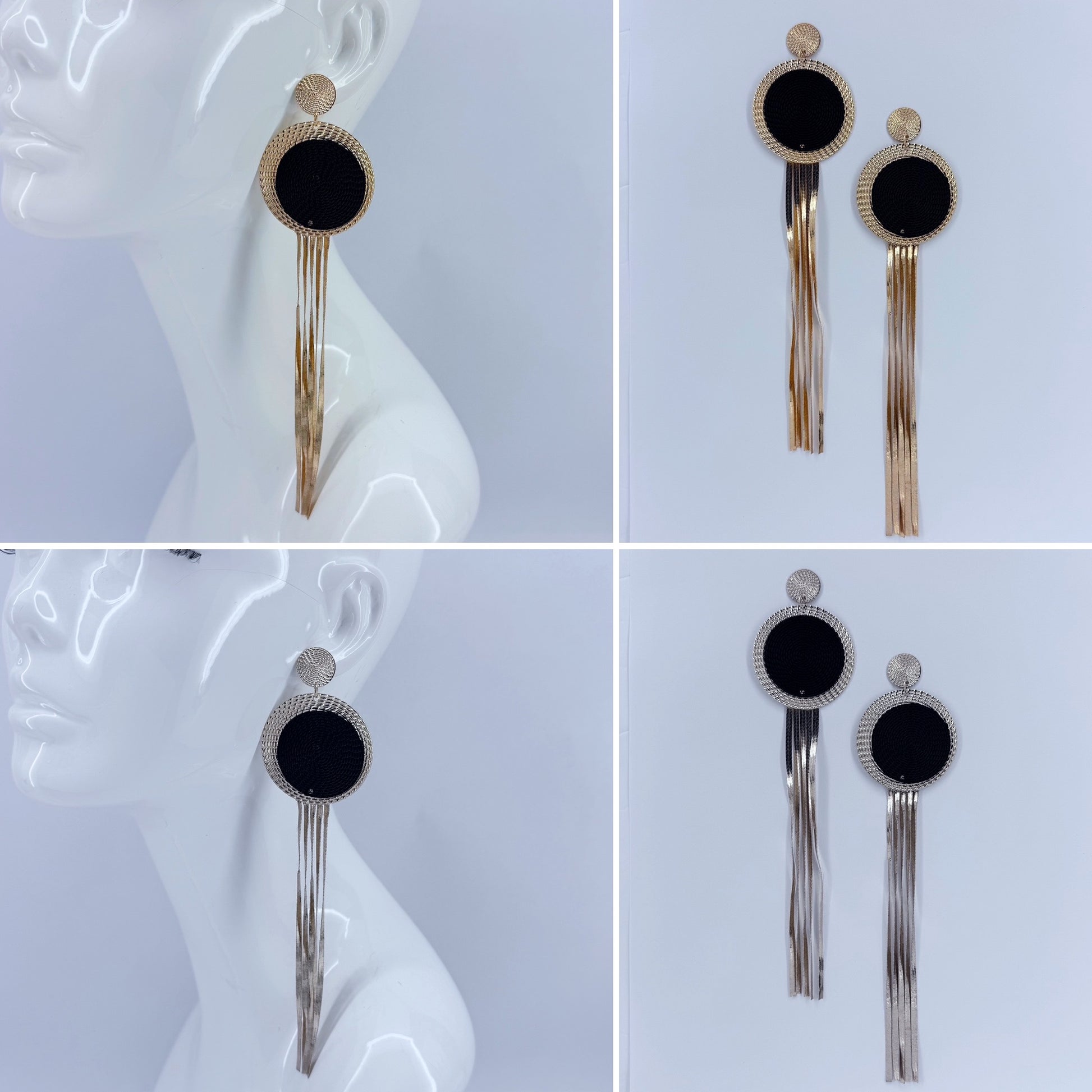 Gold or Silver Finish Extra Long herringbone Tassel Drop Dangle circle Earrings