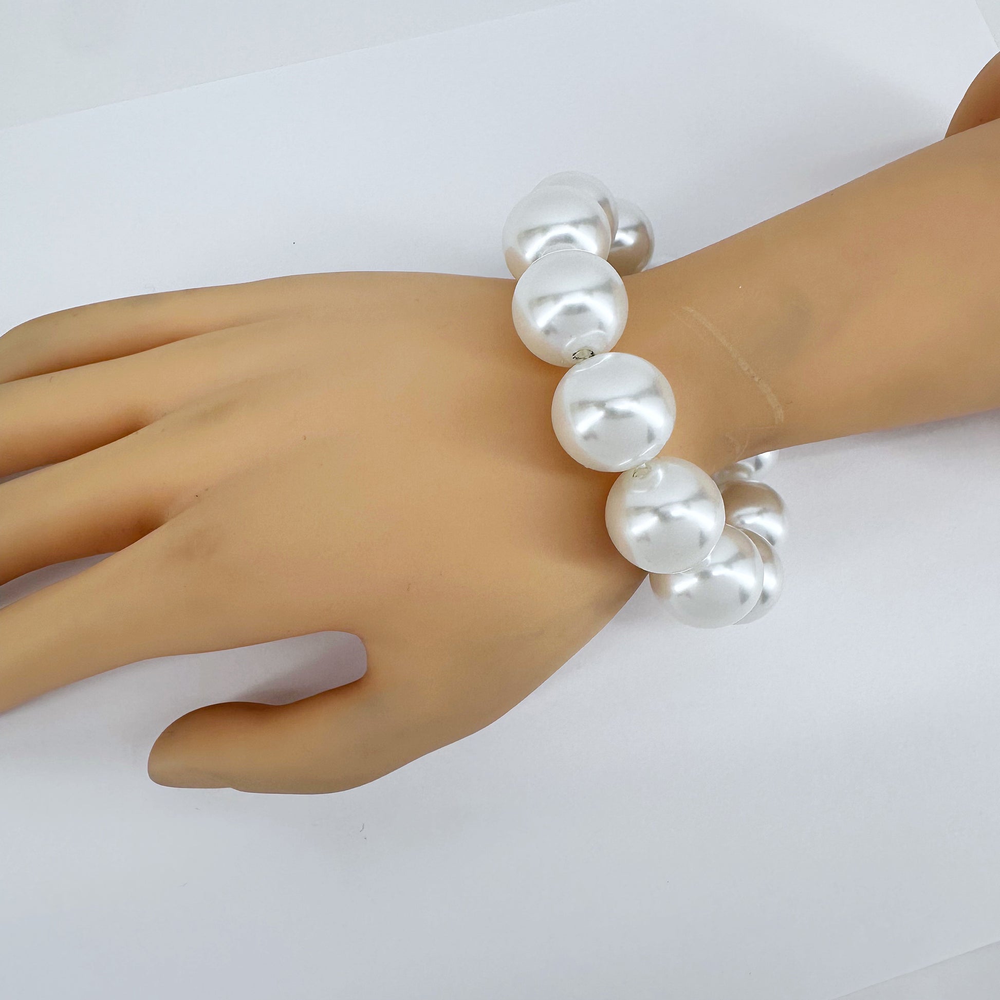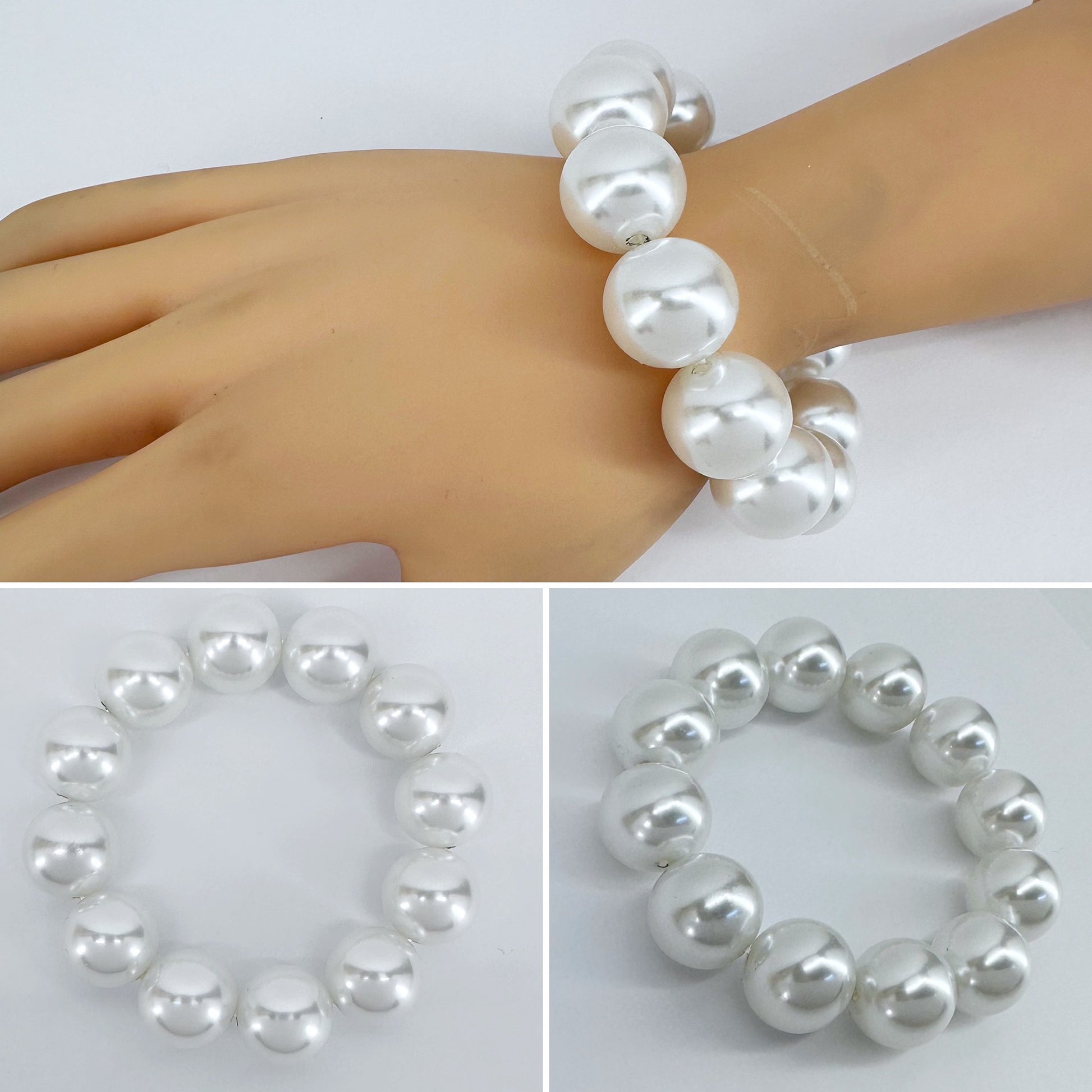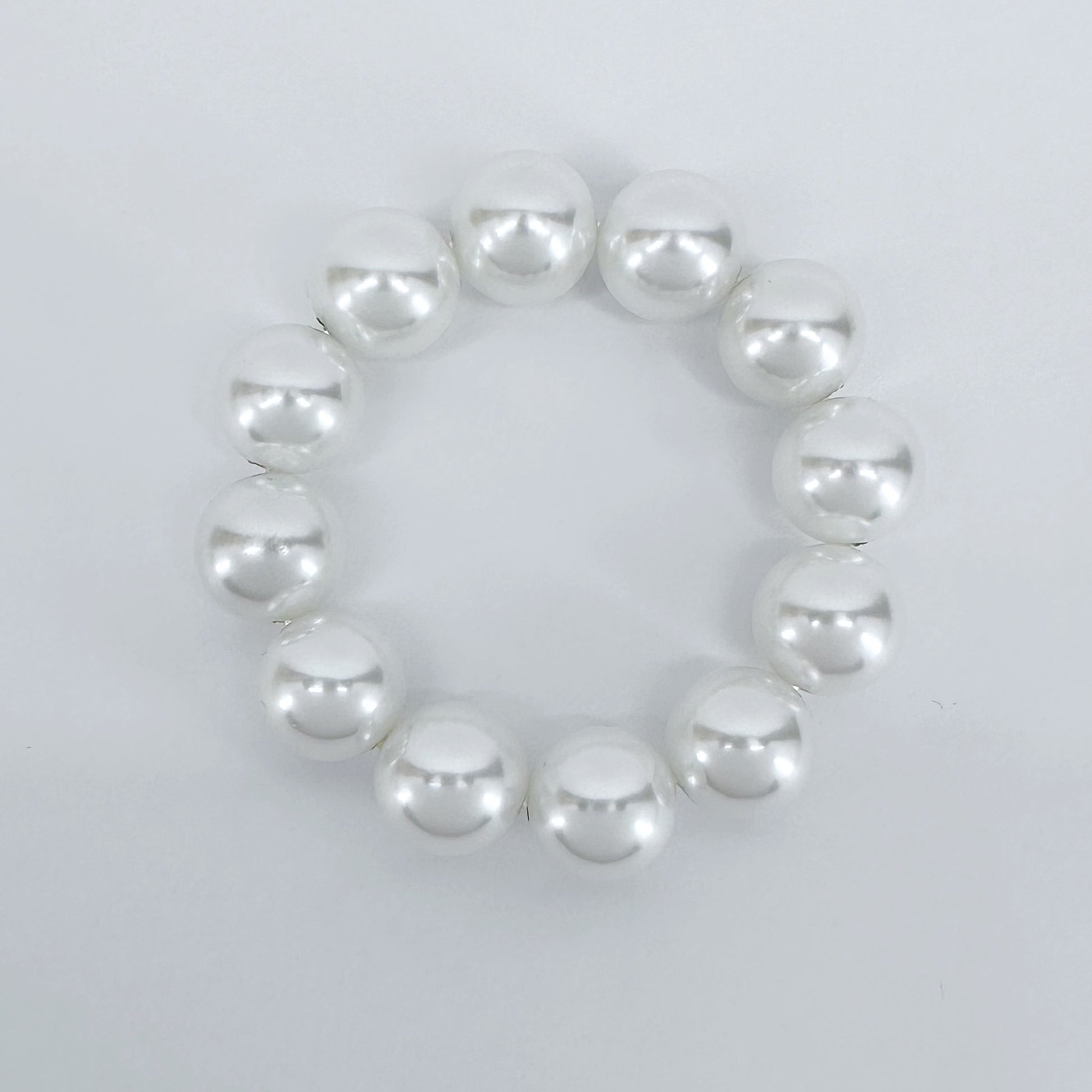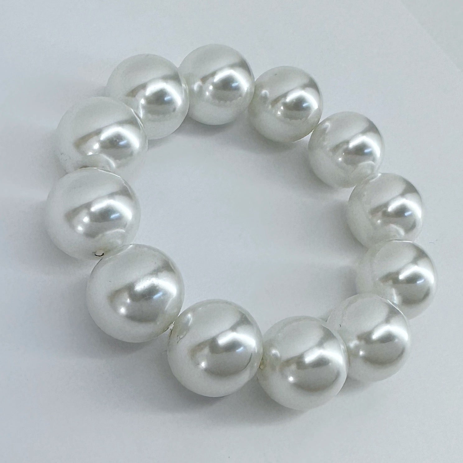 A flexible 18 mm white pearl bracelet, perfect for adding a touch of elegance to any outfit.