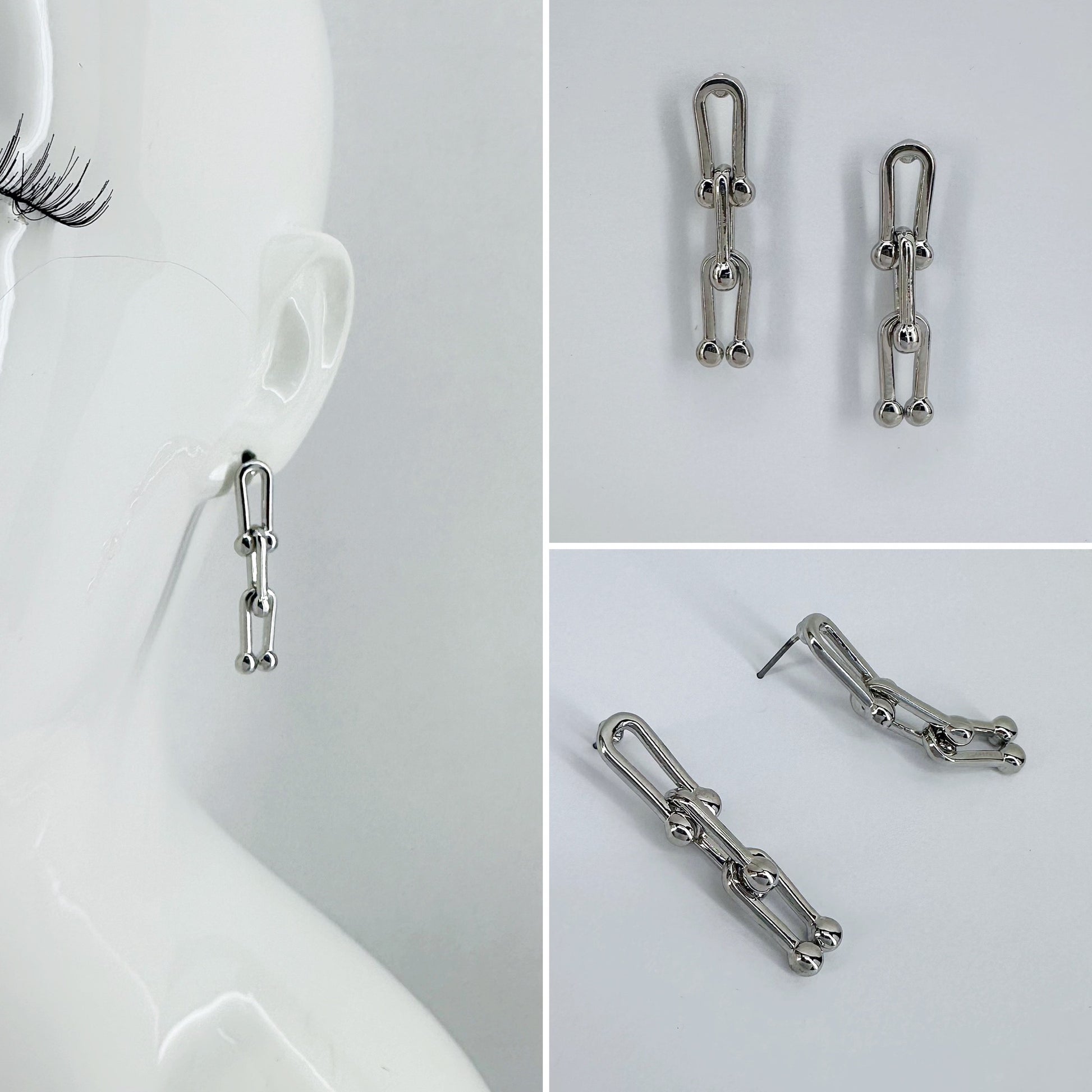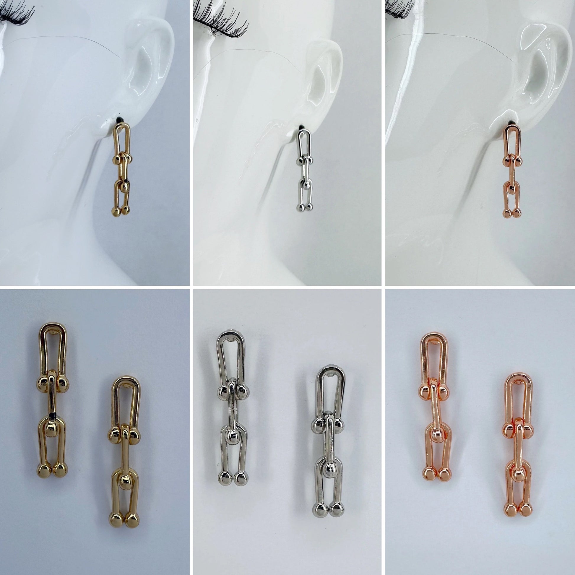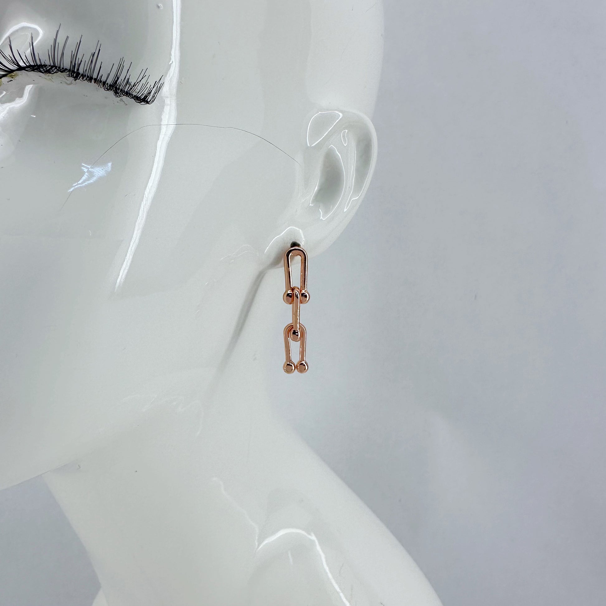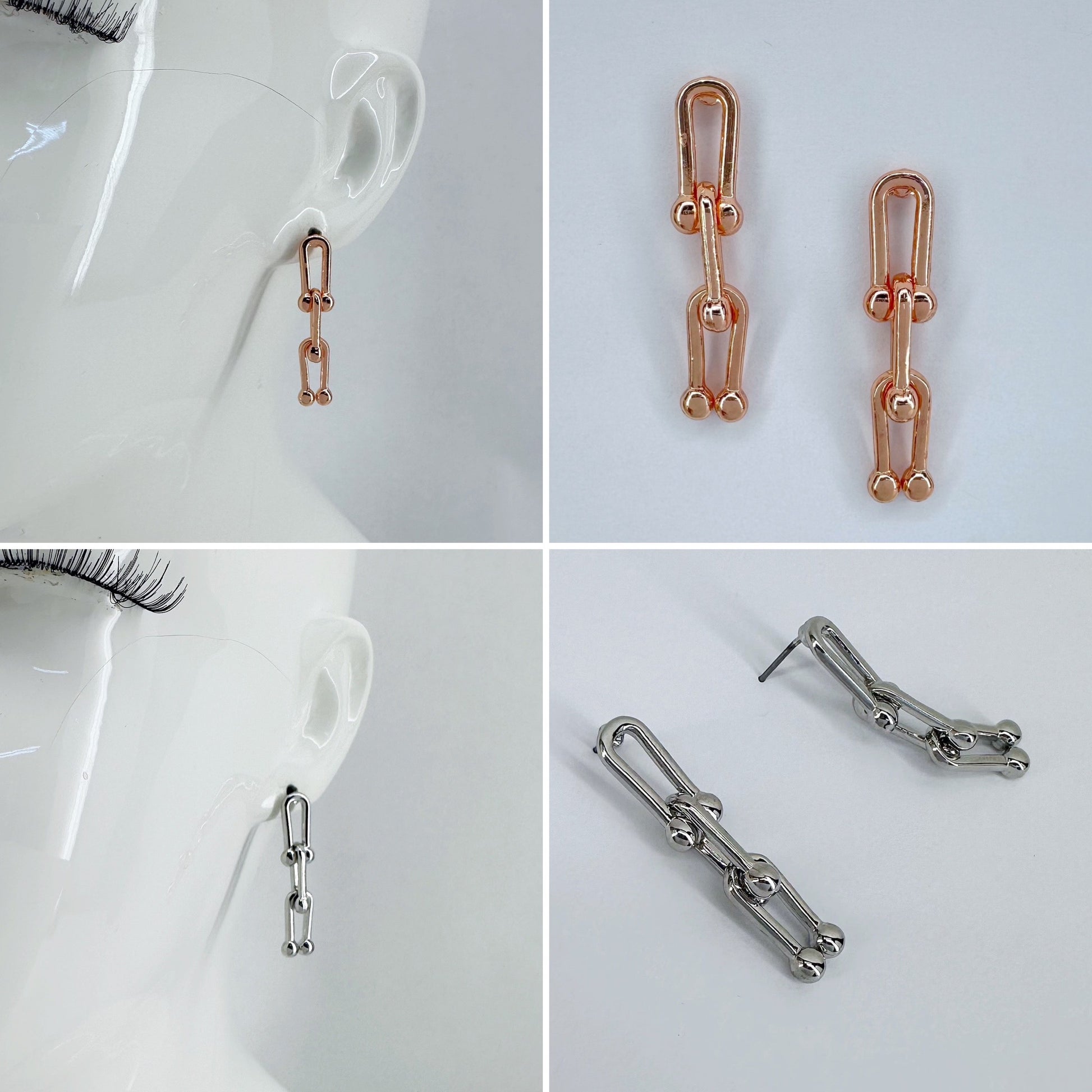 Expertly crafted earrings with a stunning silver or rose gold finish and a unique U shape design. The perfect addition to any jewelry collection.