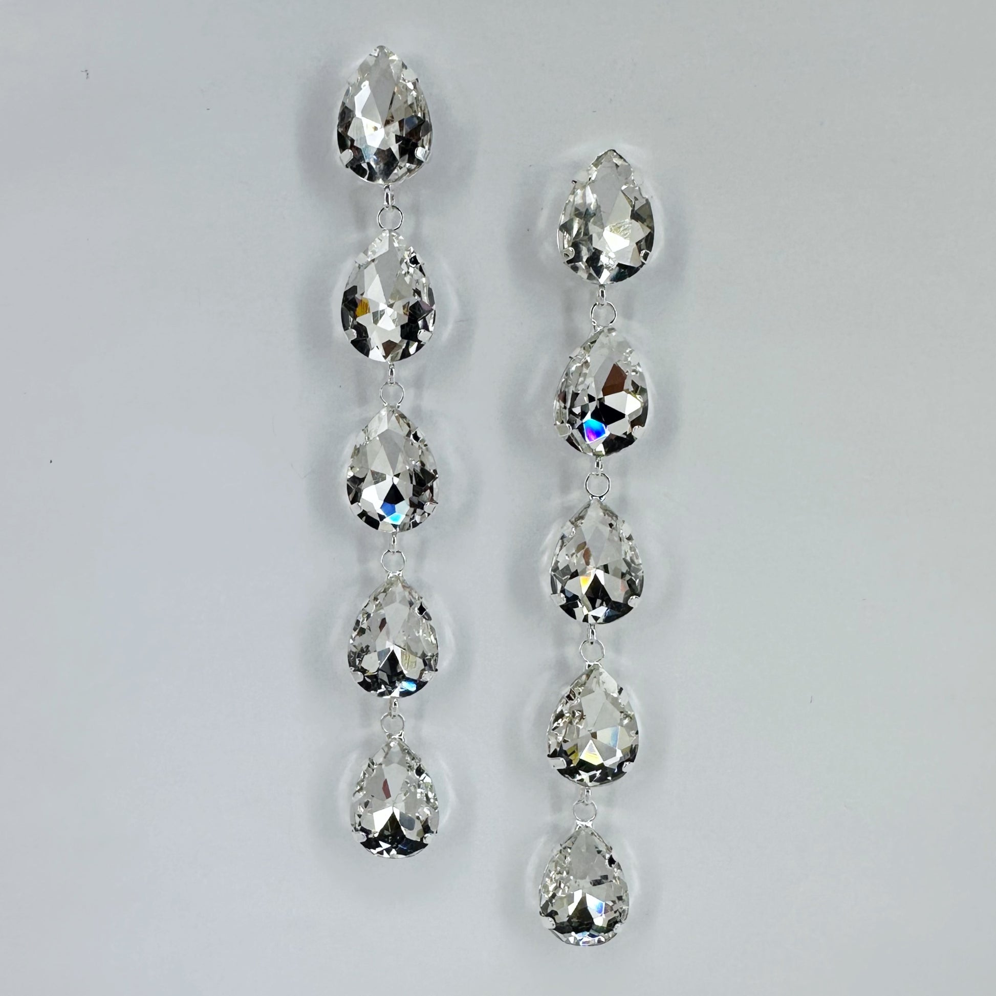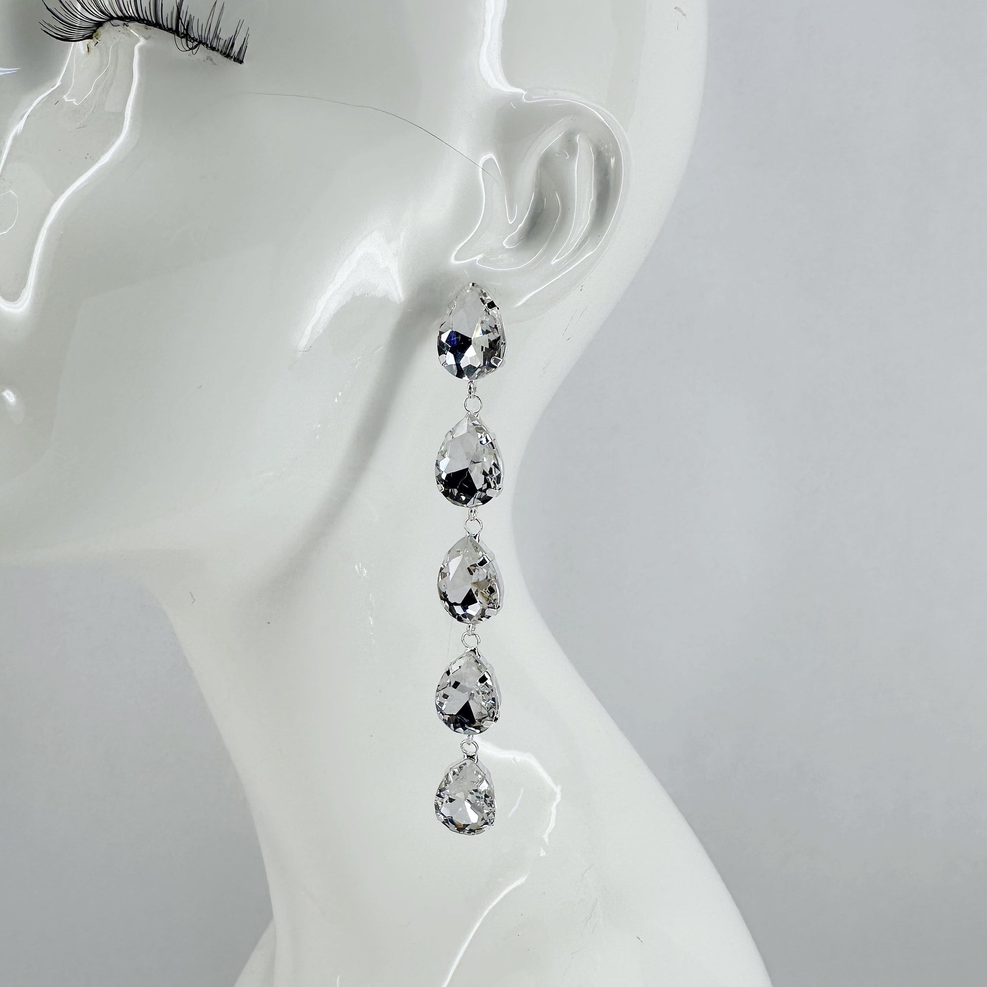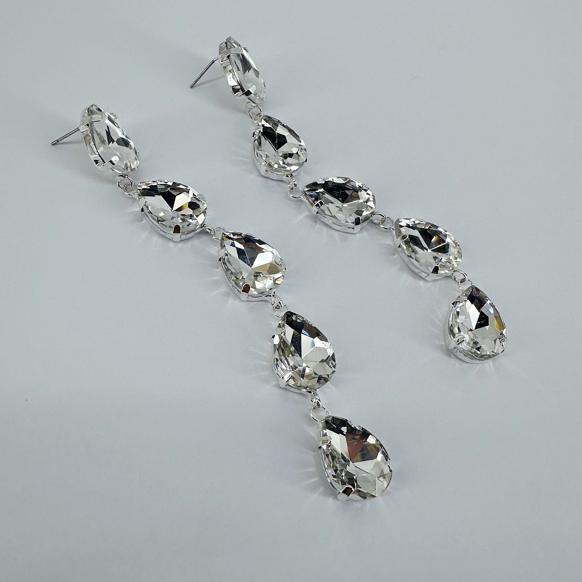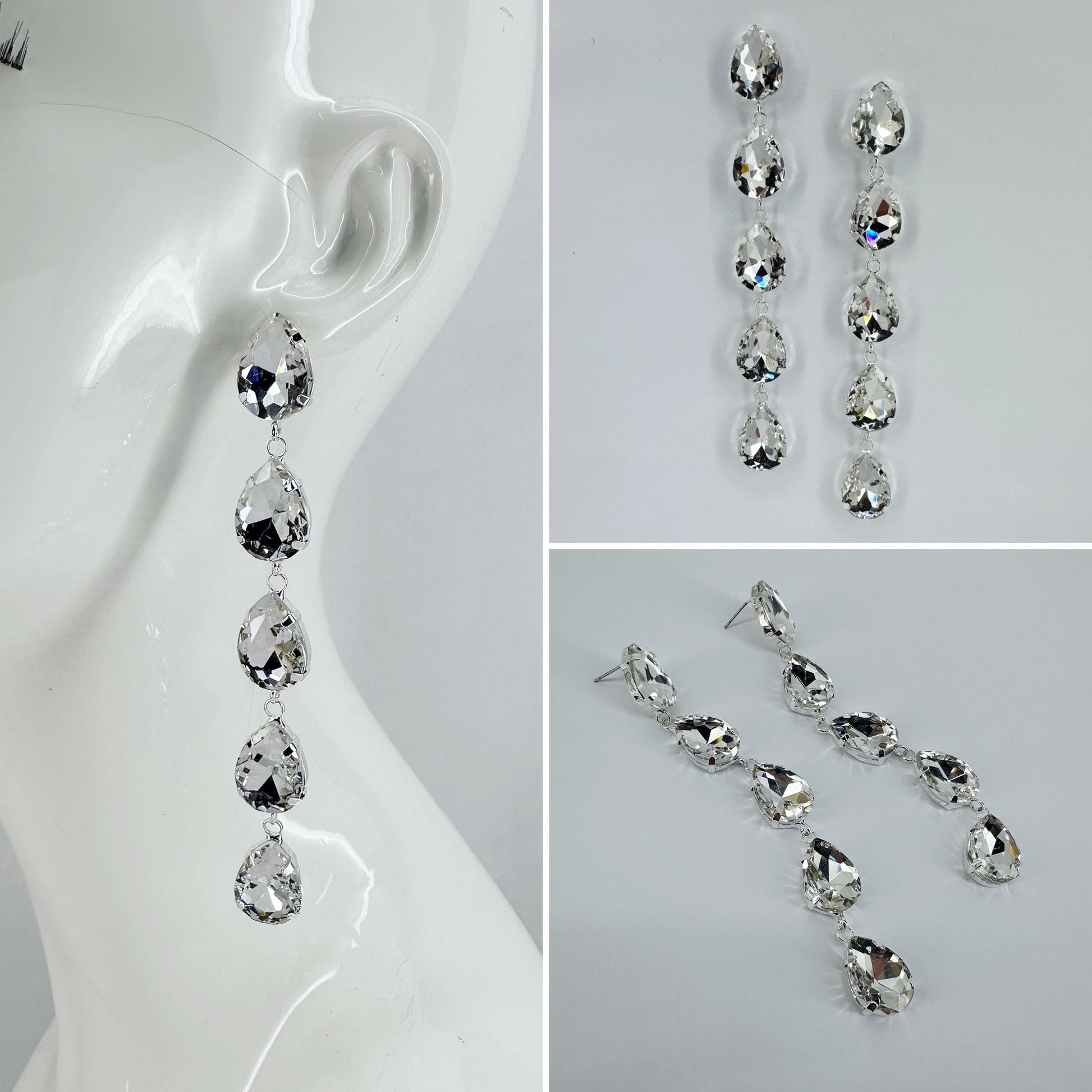 This earring boasts a teardrop shape with five silver stones, complete with post back closure.