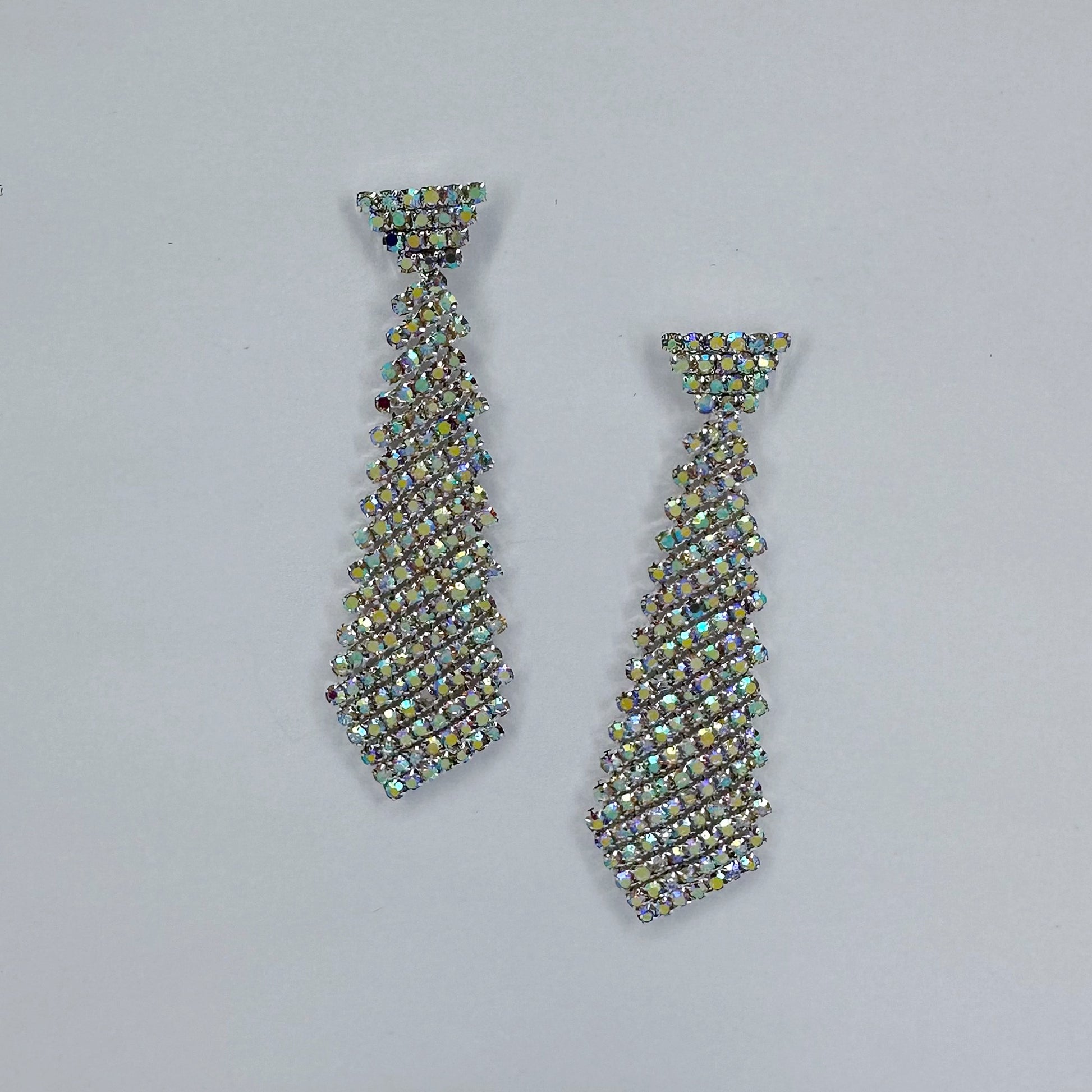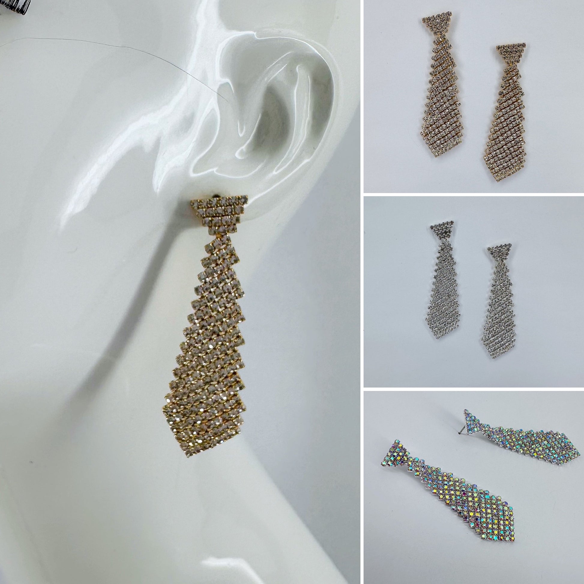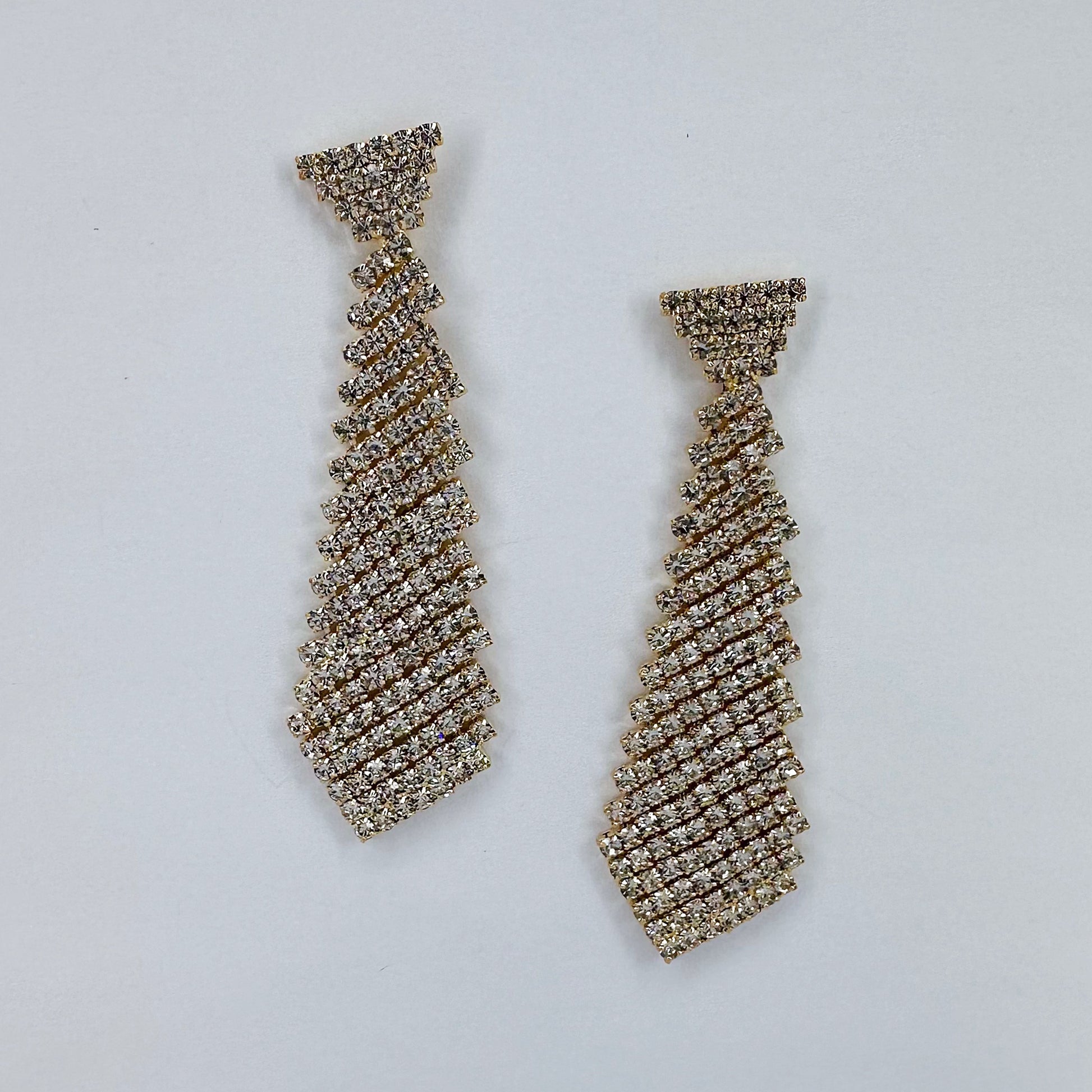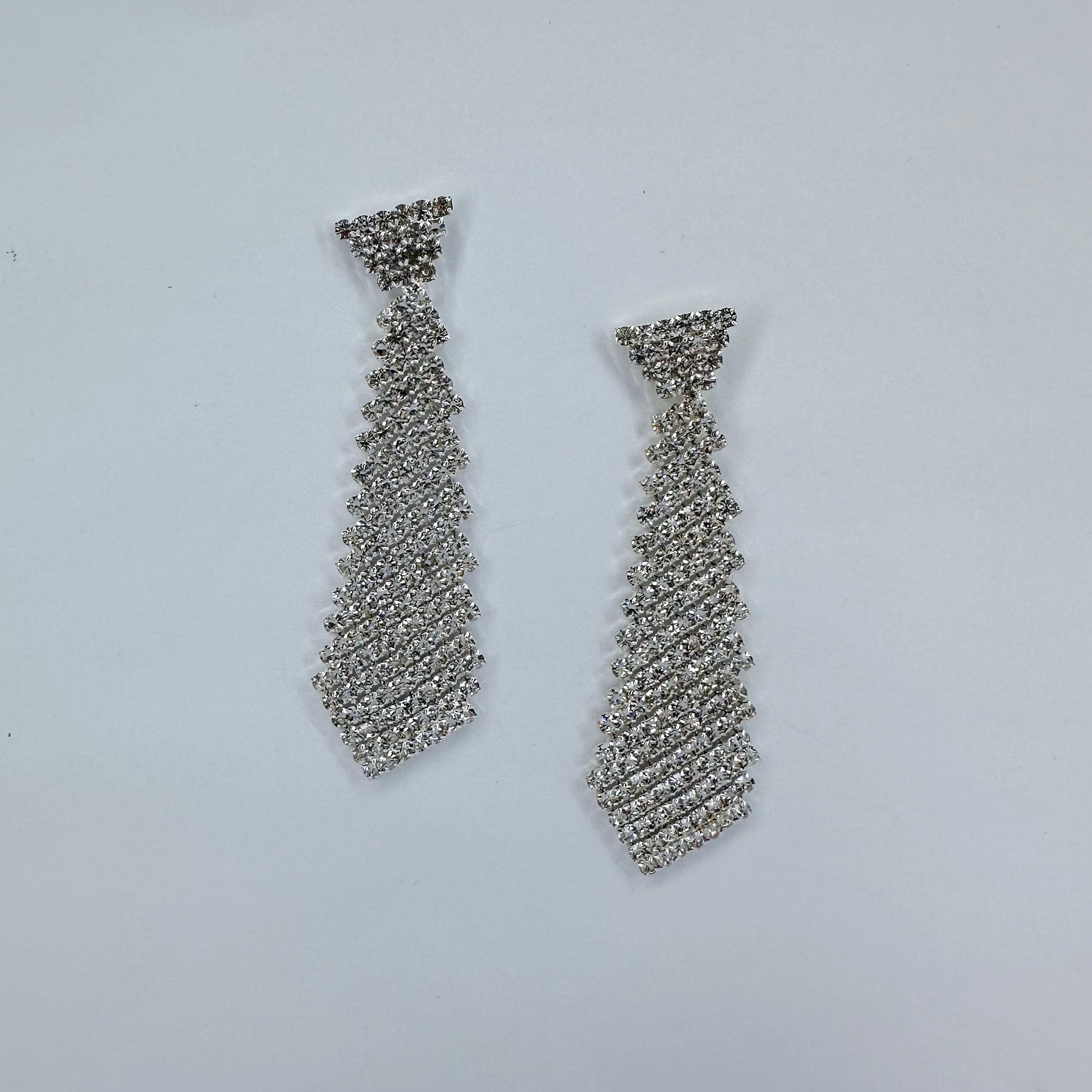 This earring features a rhinestone necktie design that is sure to make a statement.