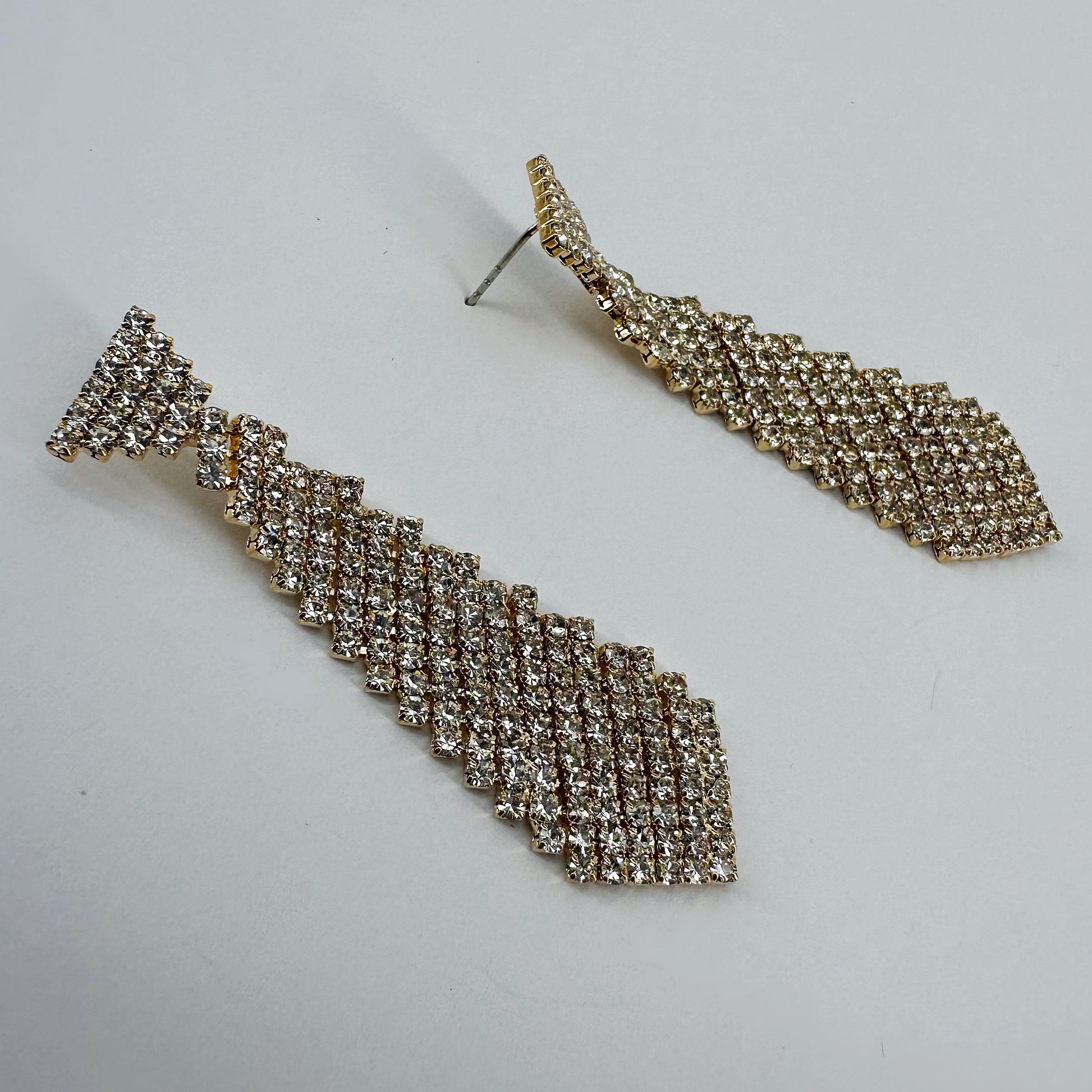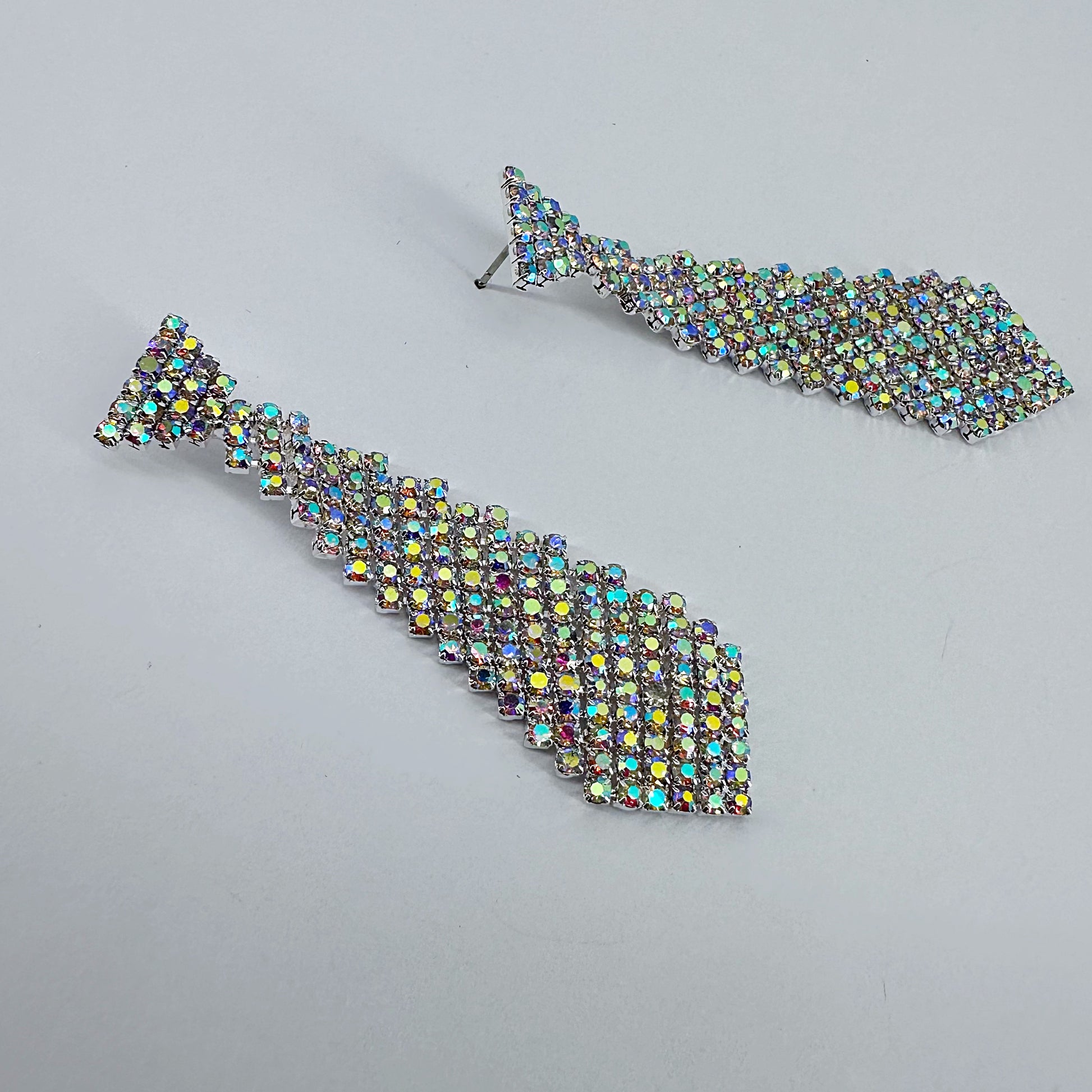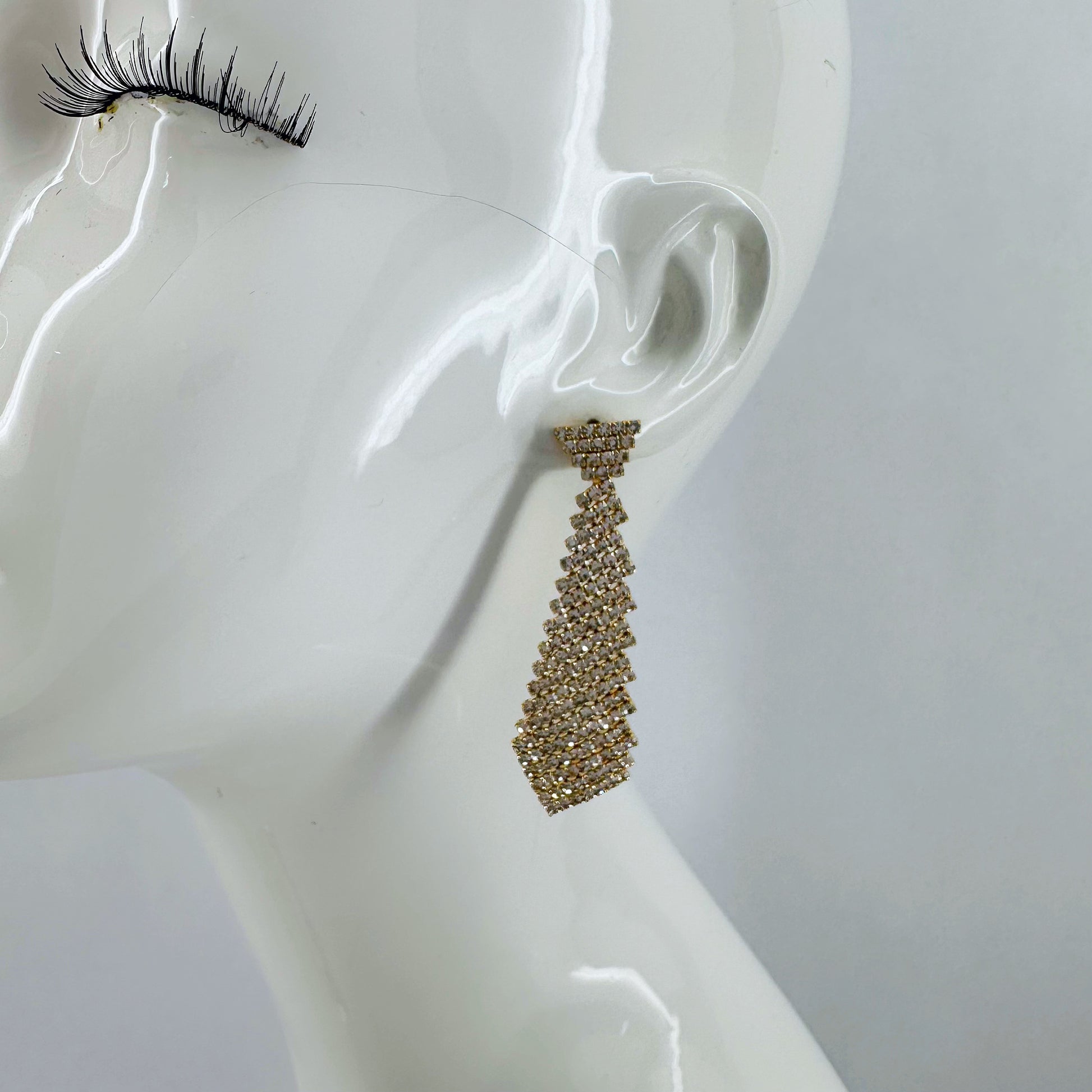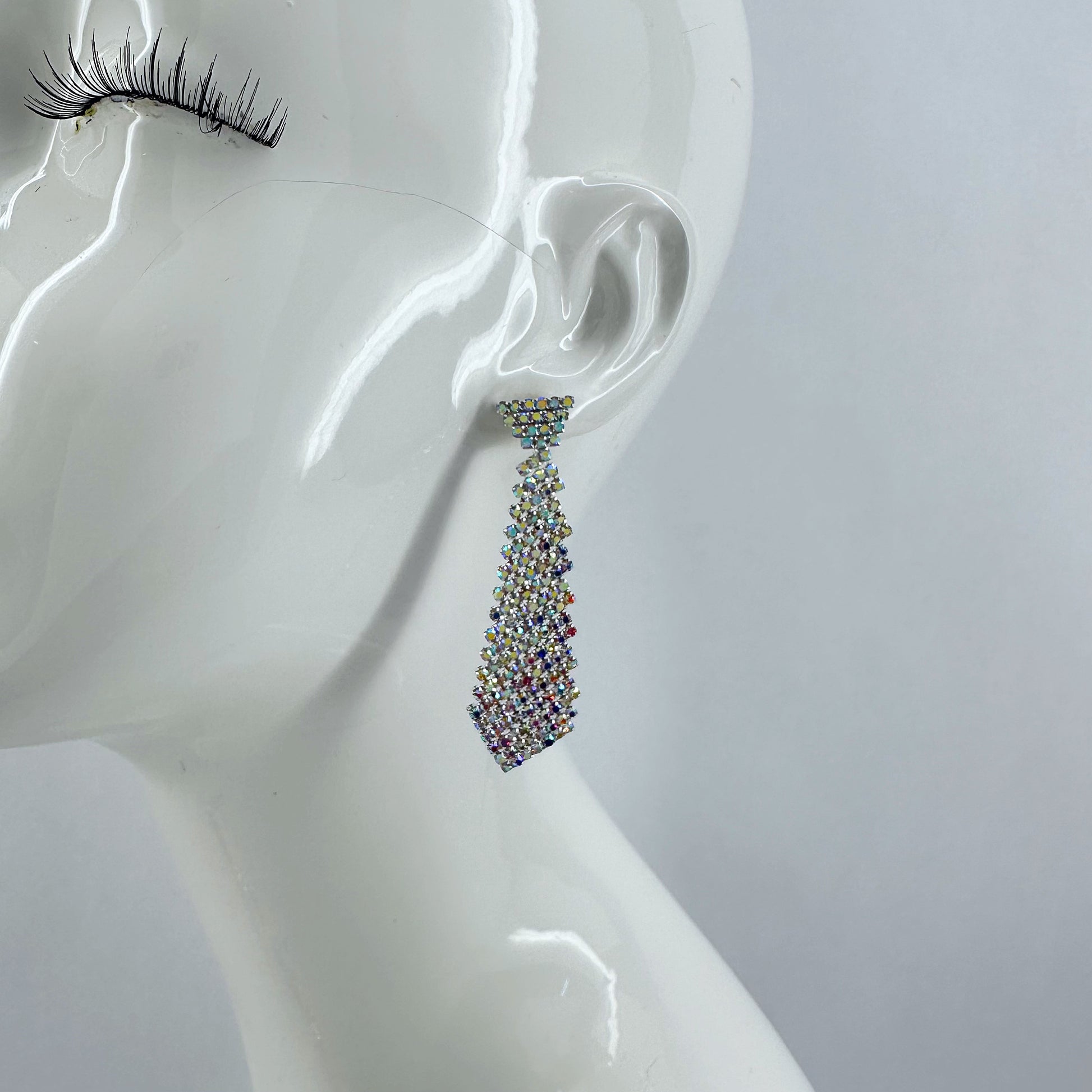 This earring features a rhinestone necktie design that is sure to make a statement.