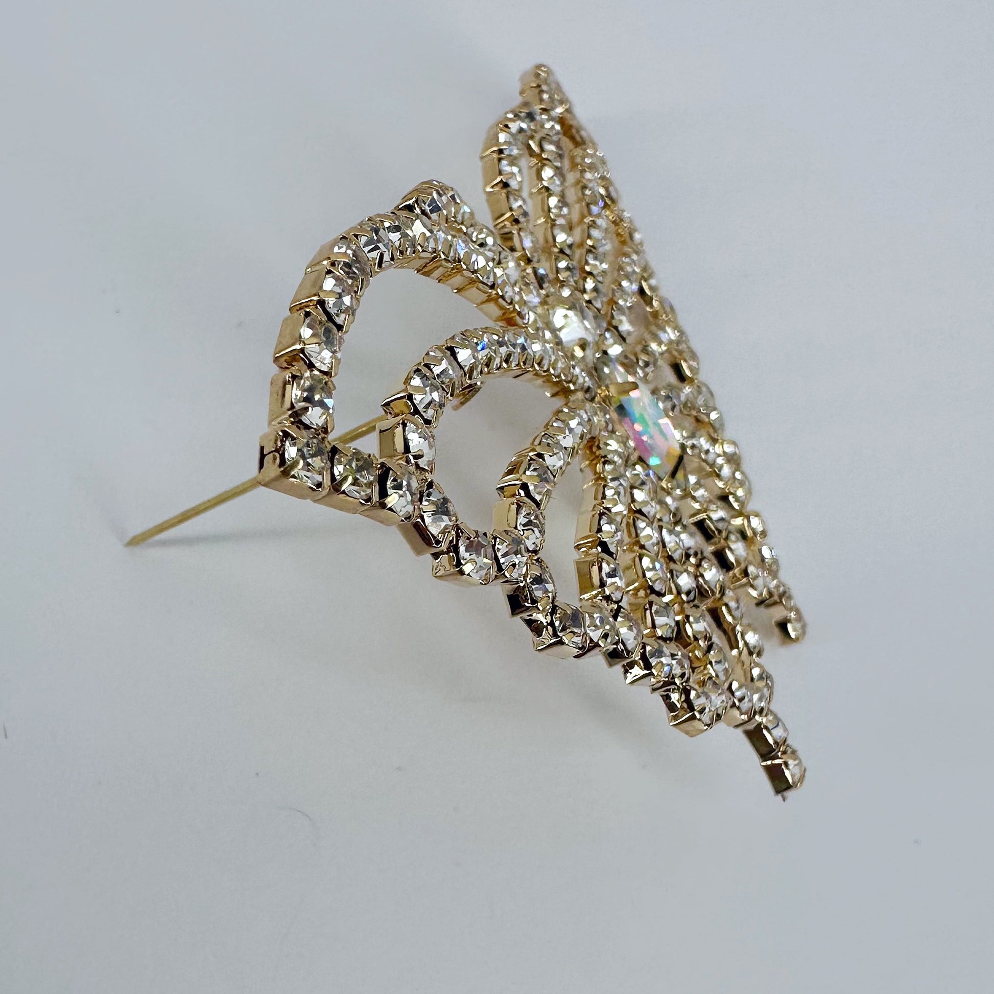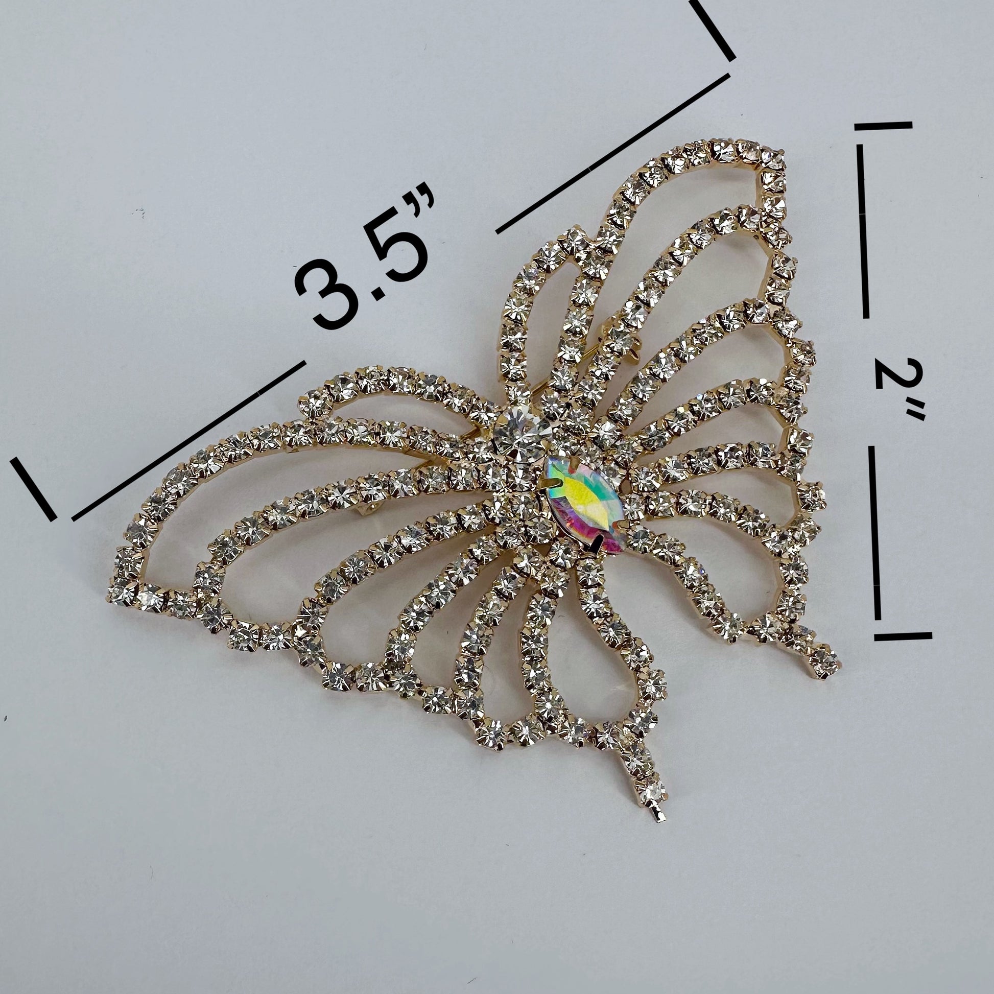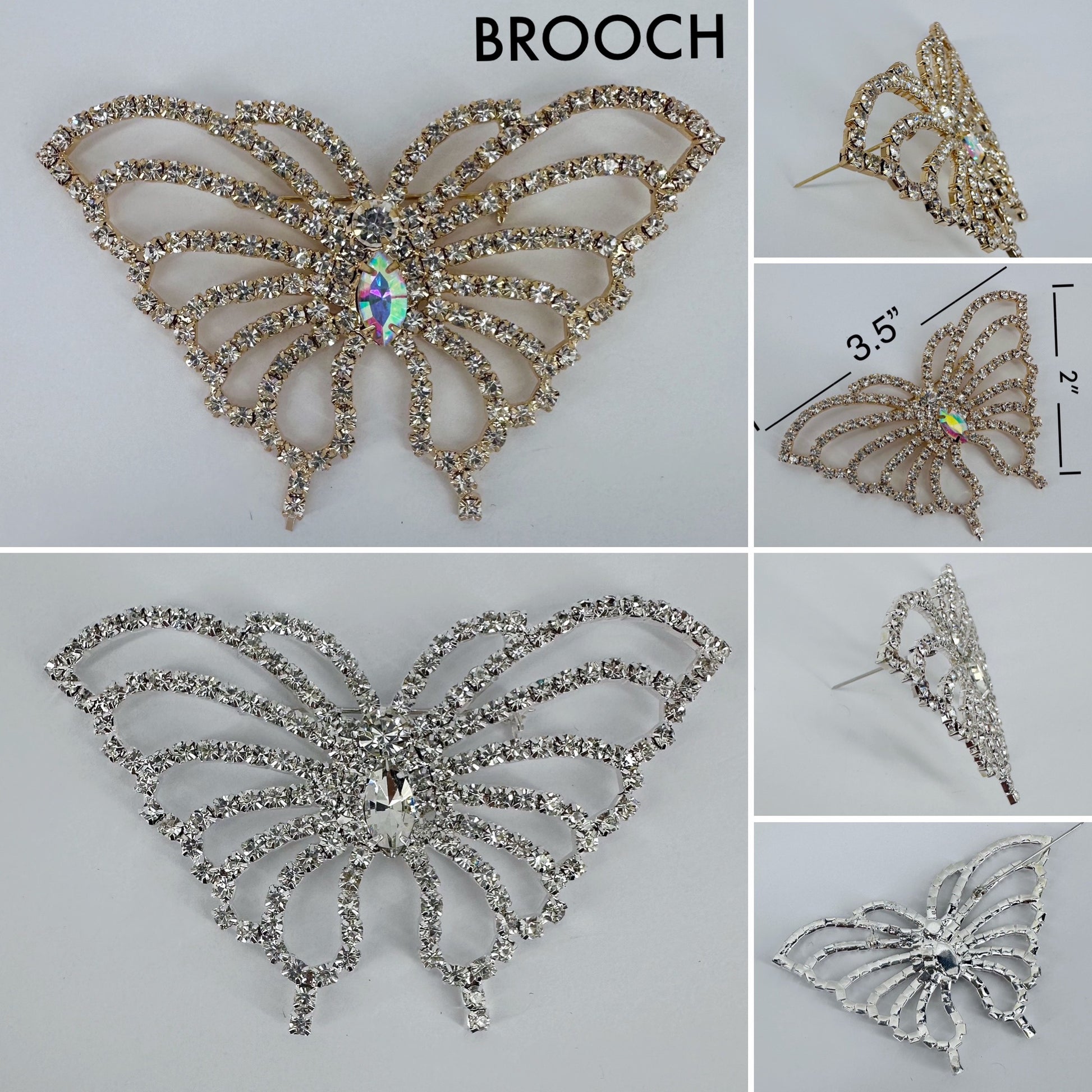 This stunning brooch features a rhinestone butterfly design in your choice of gold or silver finish.