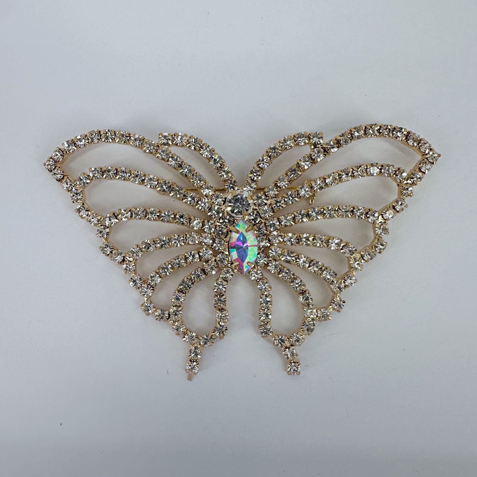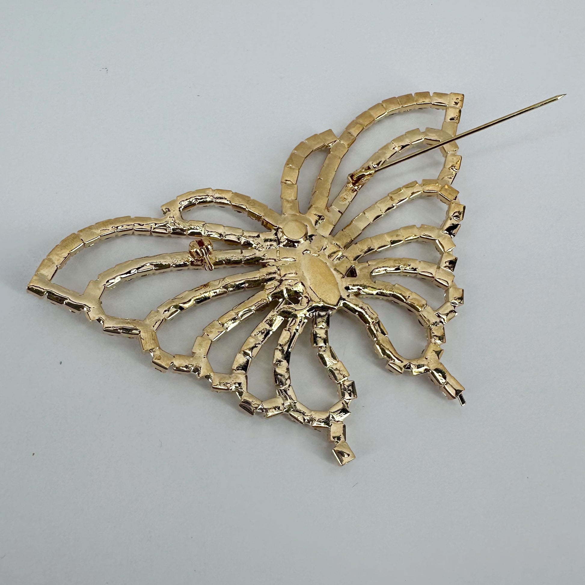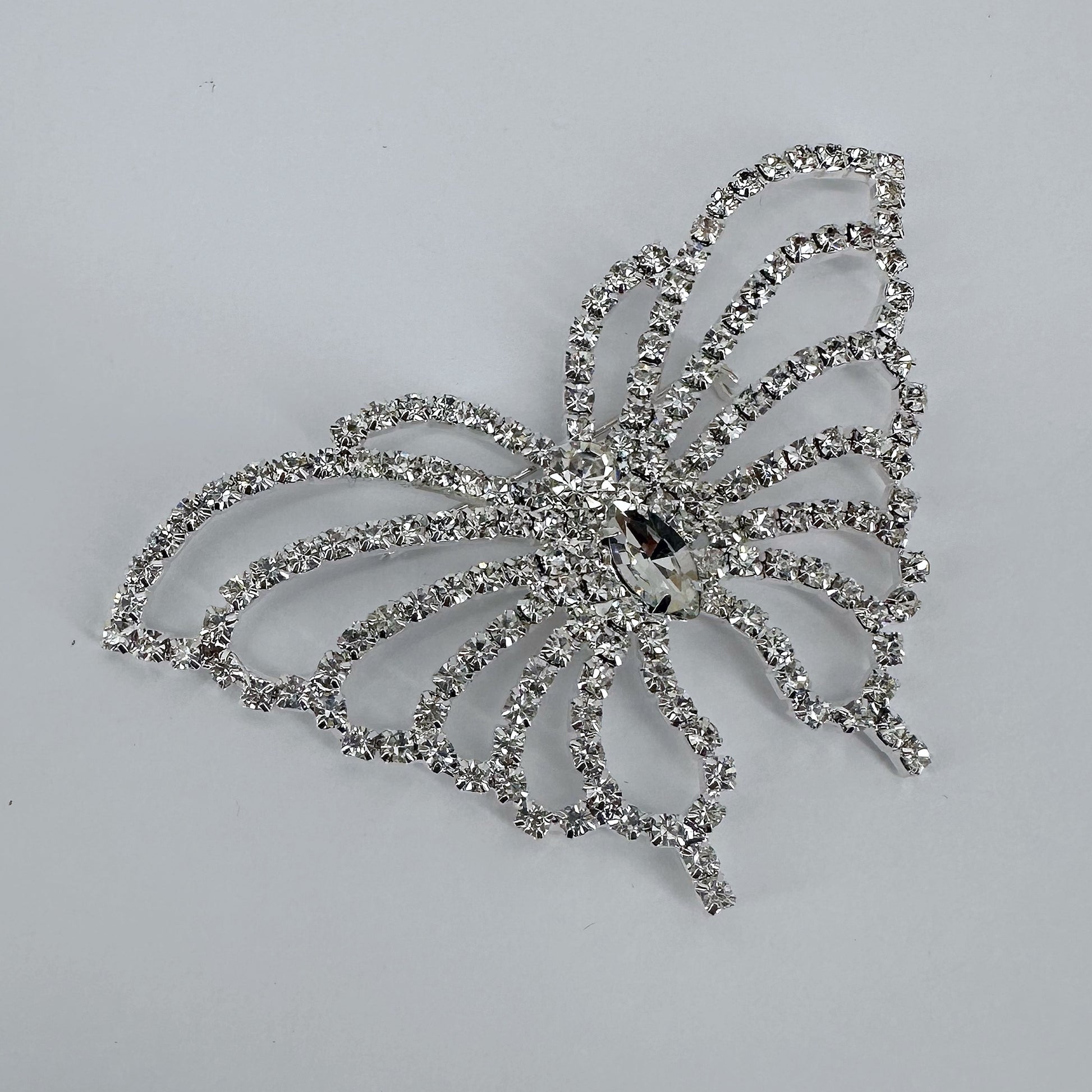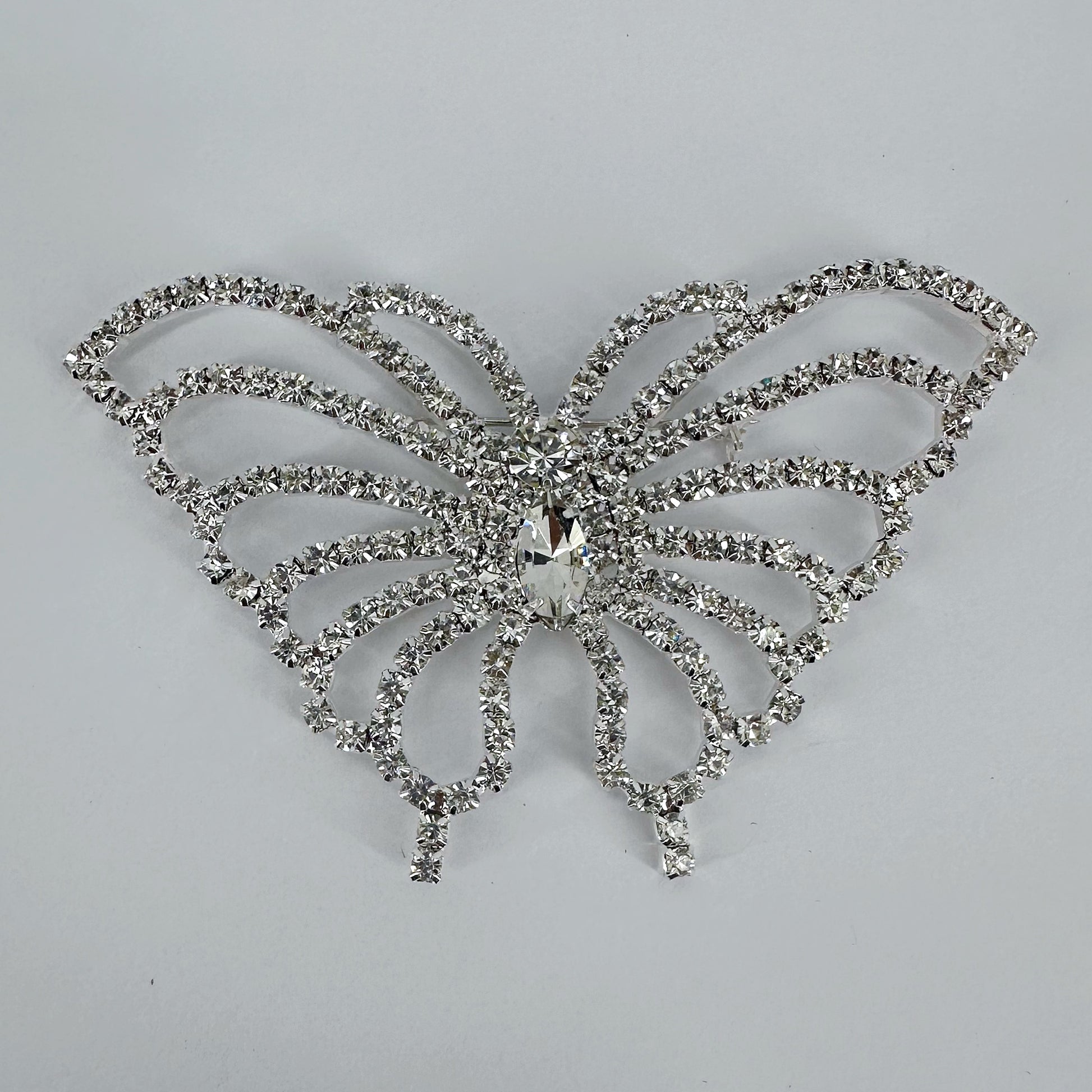 This stunning brooch features a rhinestone butterfly design in your choice of gold or silver finish.