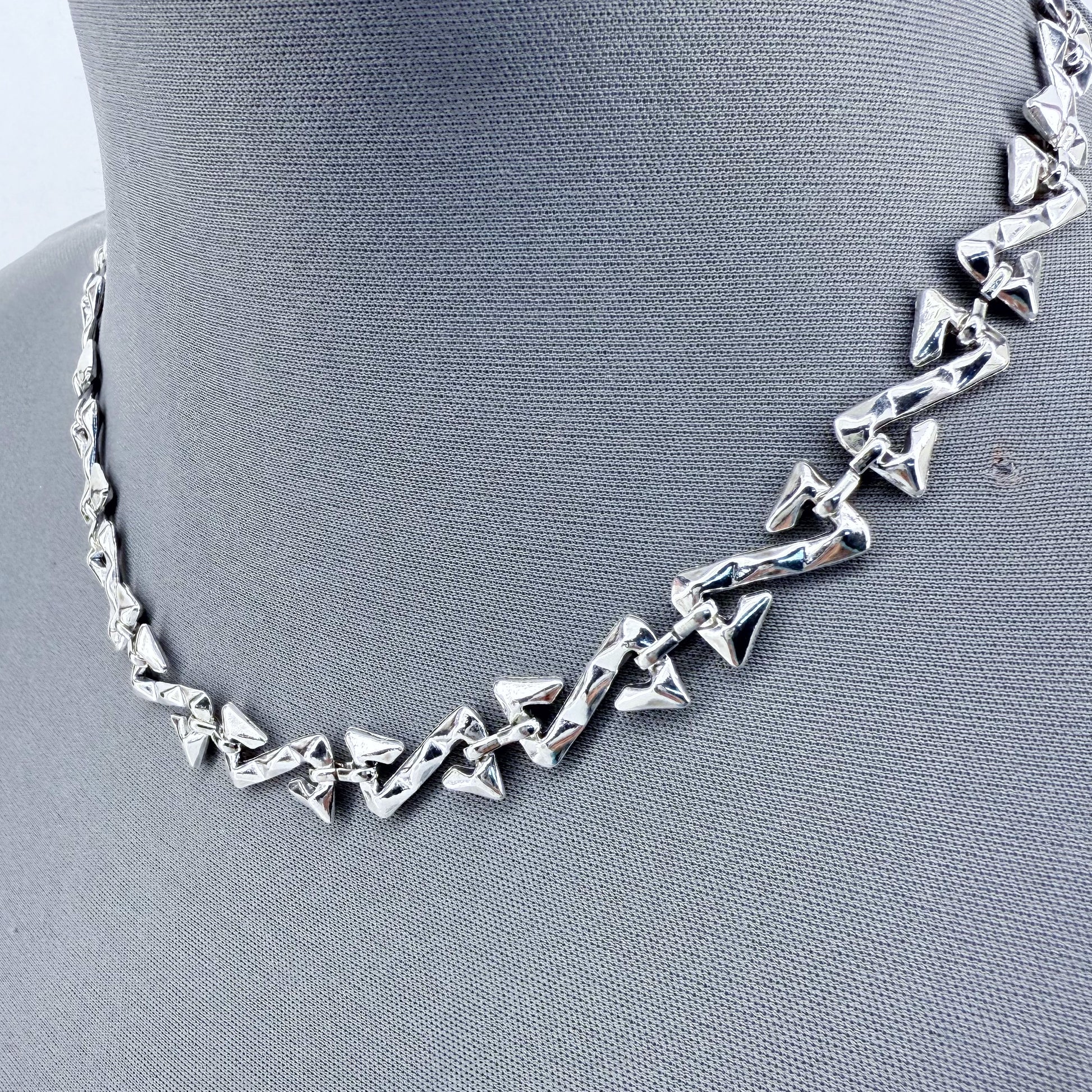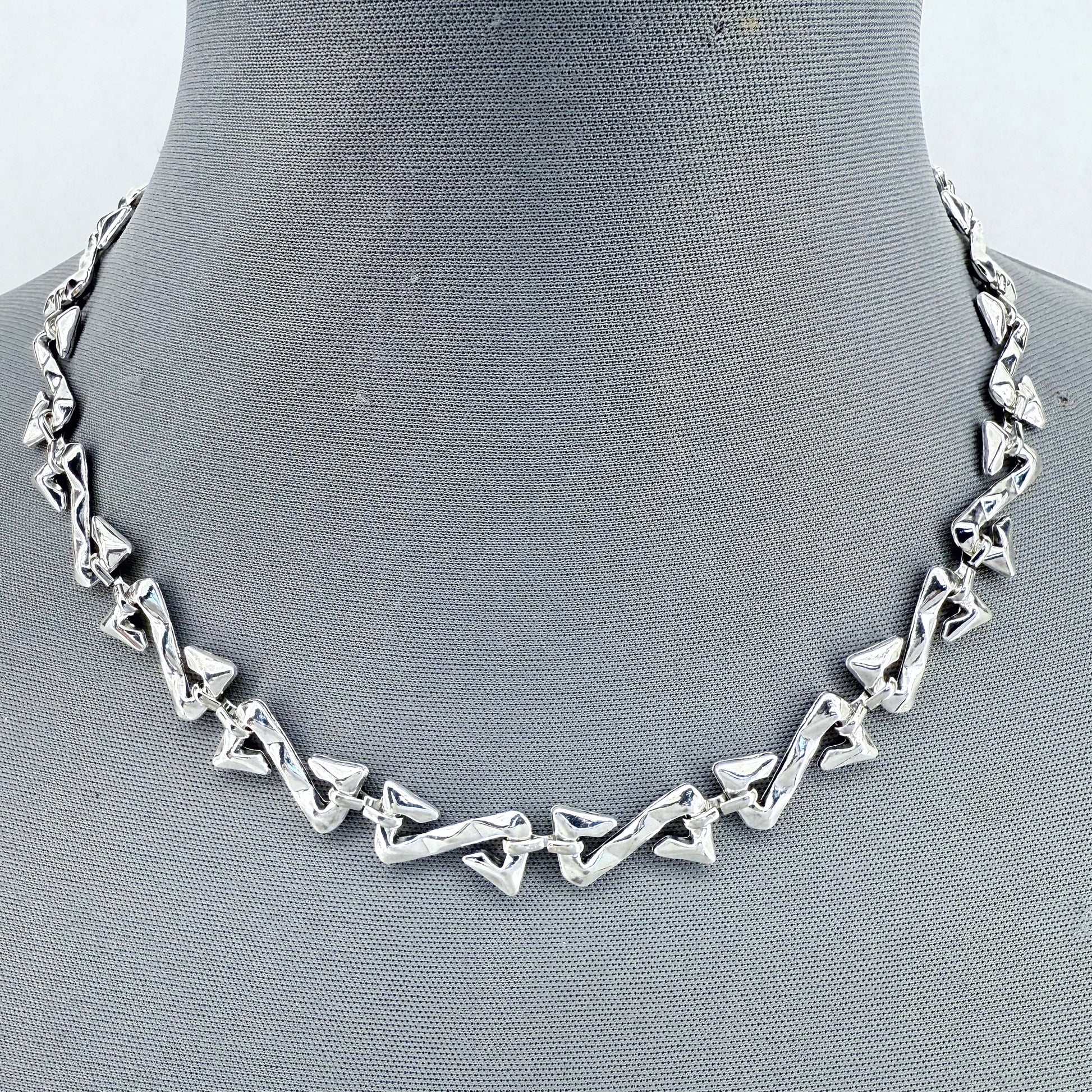 Introducing the stunning Z-shaped Design Silver Finish Necklace - a must-have for any jewelry collection! This eye-catching piece exudes elegance and sophistication, making it the perfect accessory for any outfit. The intricate design and exquisite silver finish will surely make a statement. Get ready to turn heads and feel confident wearing this beautiful necklace!