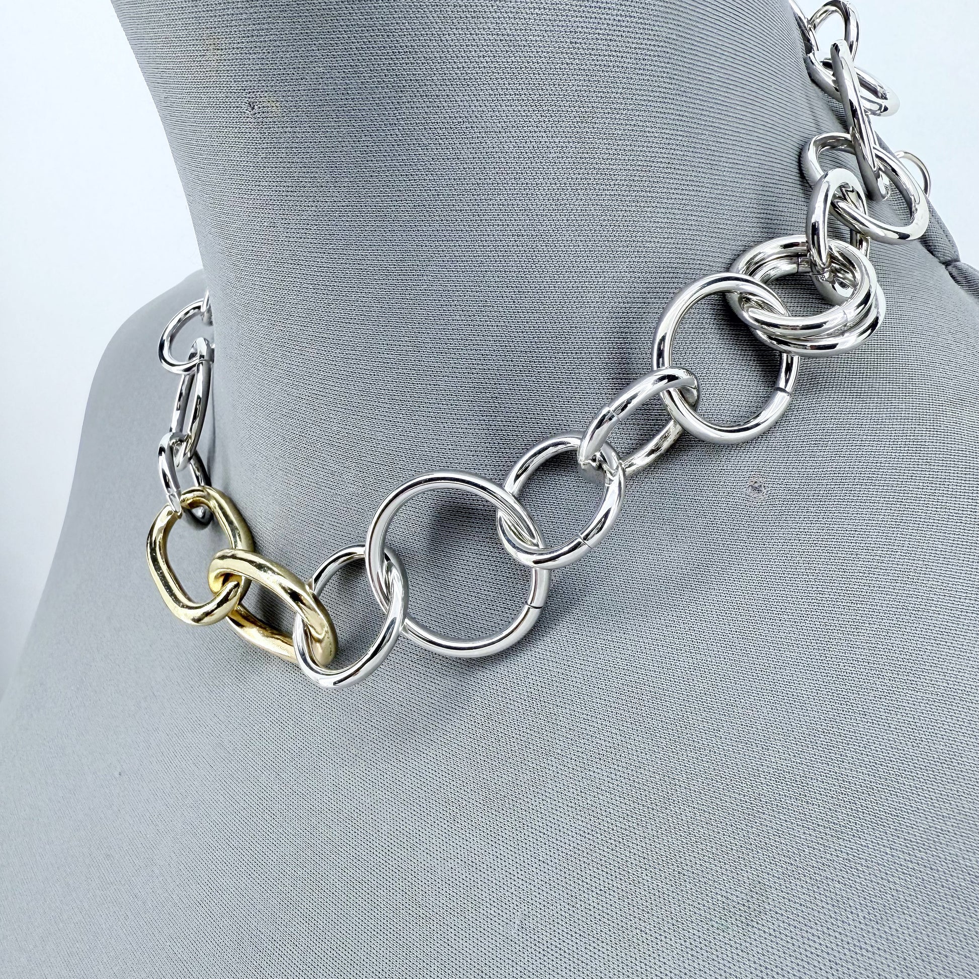 2 tone Gold and Silver Finish Circles Choker Necklace