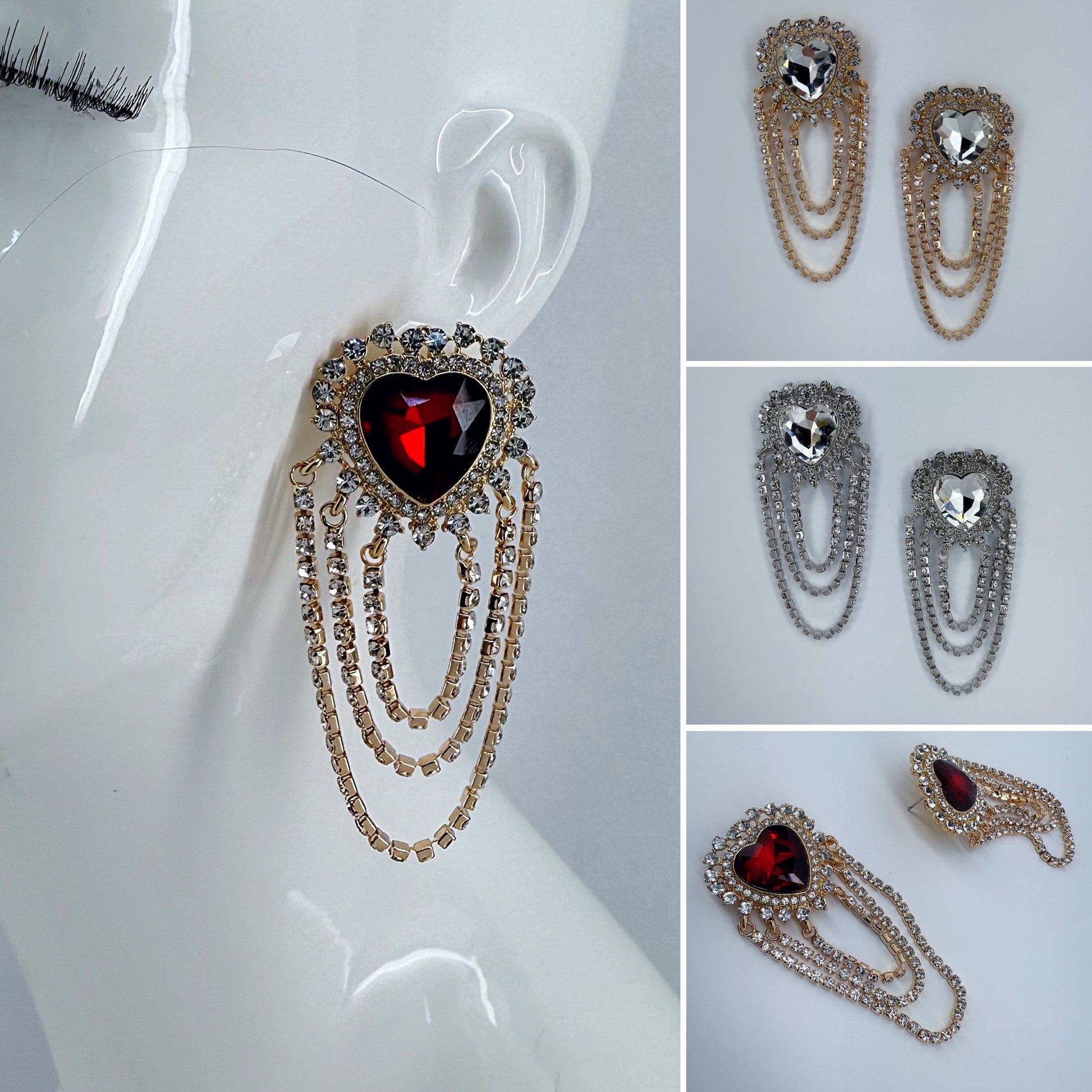 Upgrade your look with these stunning Post Back Heart Design earrings, featuring gorgeous rhinestone tassels and available in a dazzling gold or sleek silver finish. Perfect for adding a touch of glamour and luxury to any outfit.