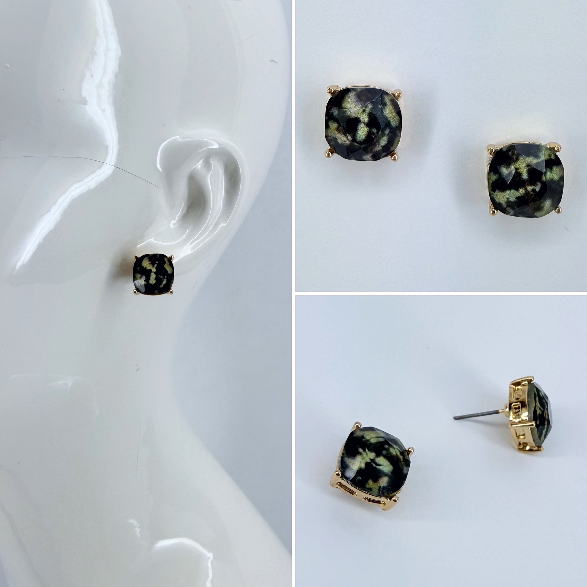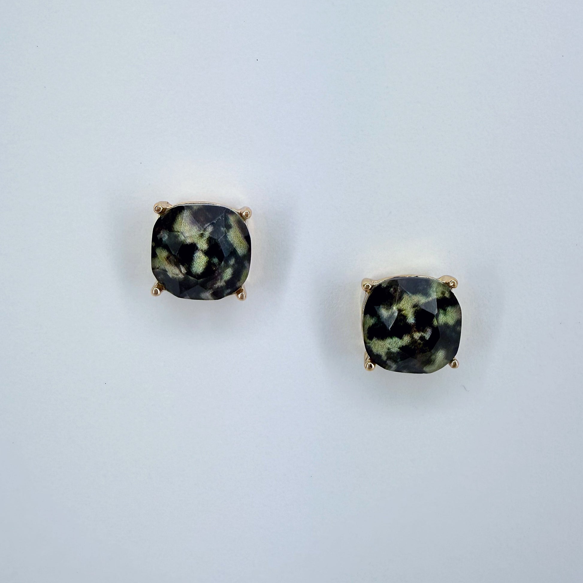 Unleash your inner style with the stunning green camo color of our stud cushion cut cushion!