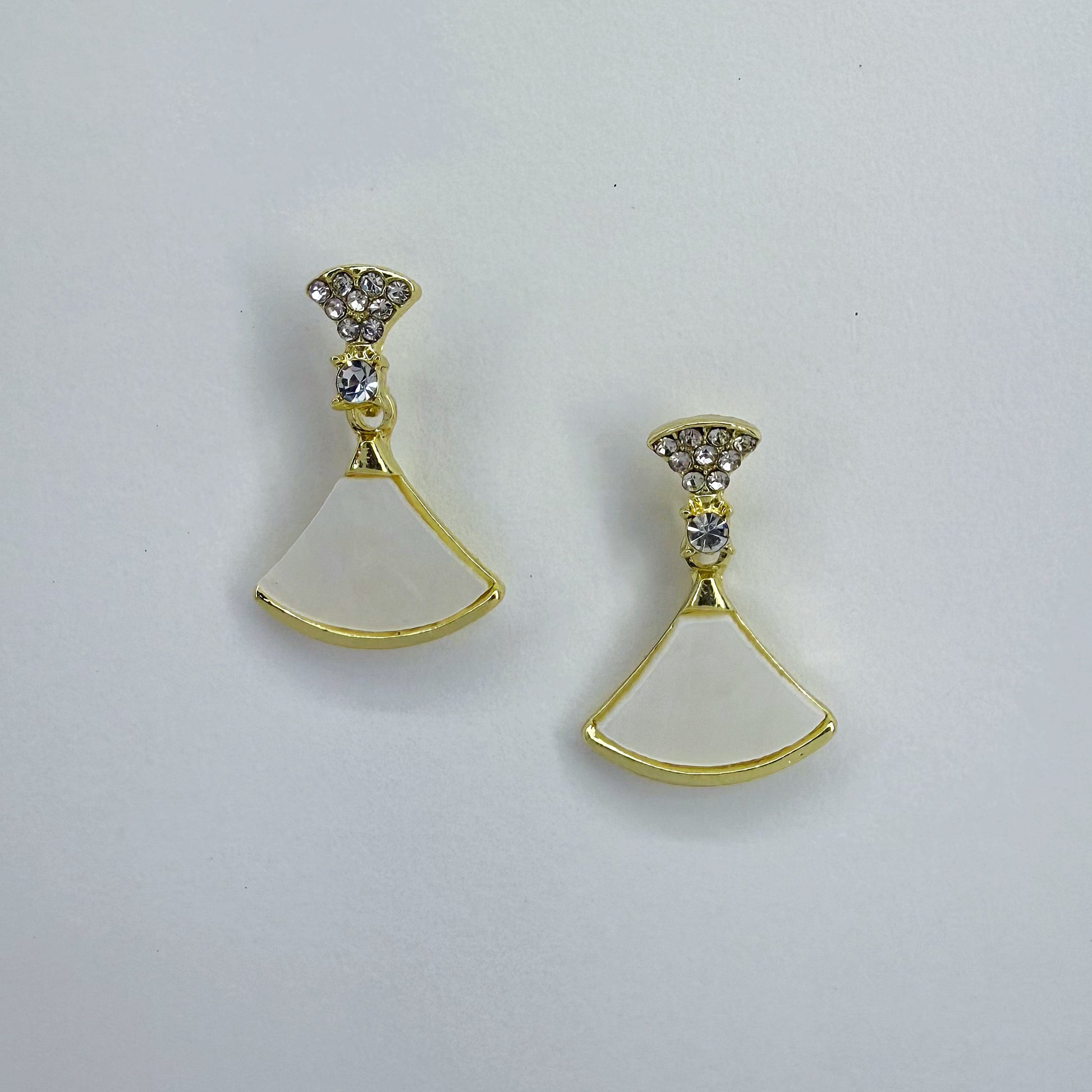 Experience the exquisite beauty and sophistication of these stunning gold-finished earrings. Adorned with shimmering rhinestones and lustrous mother of pearl, these designer-inspired earrings exude elegance and charm. Elevate your style with these dazzling accessories today!