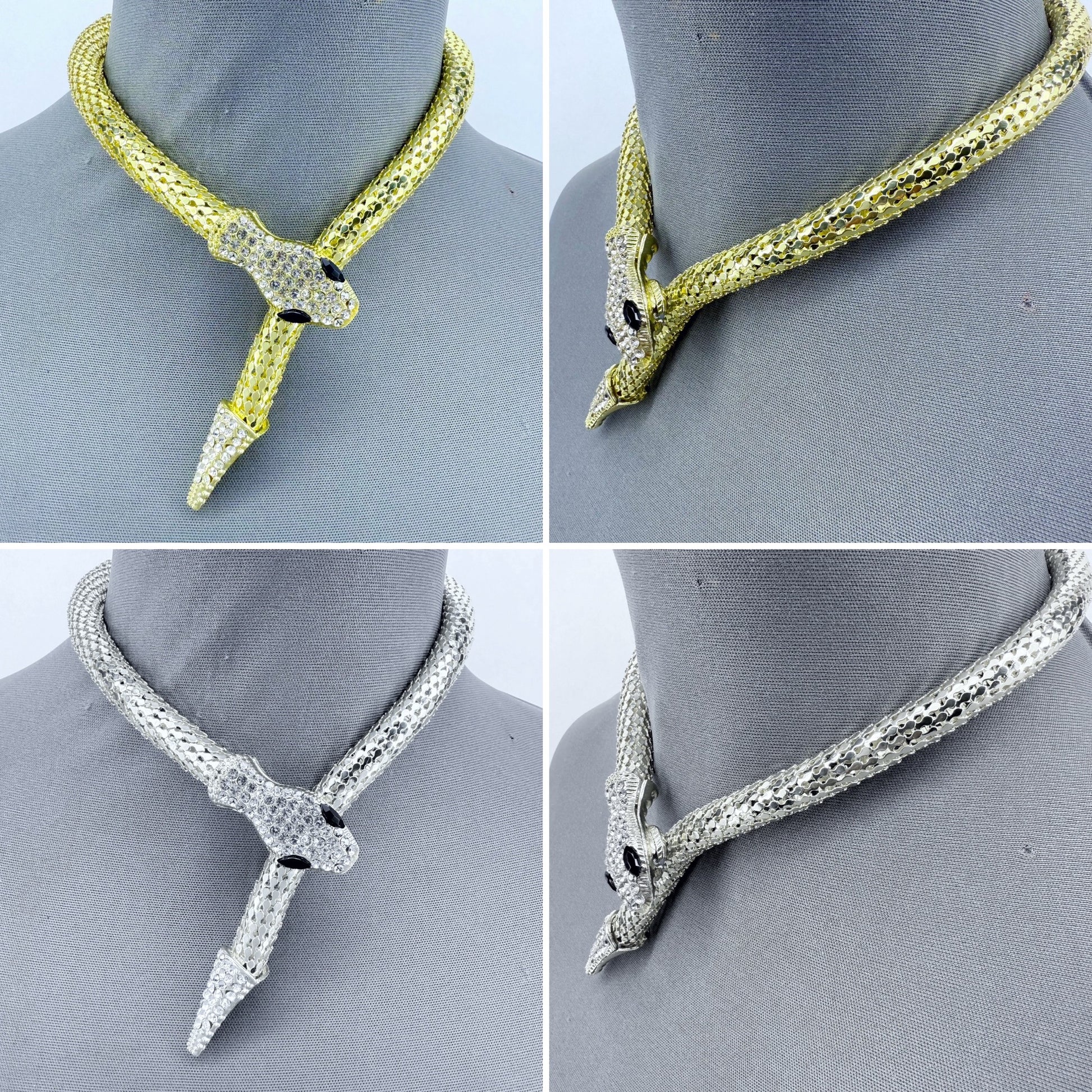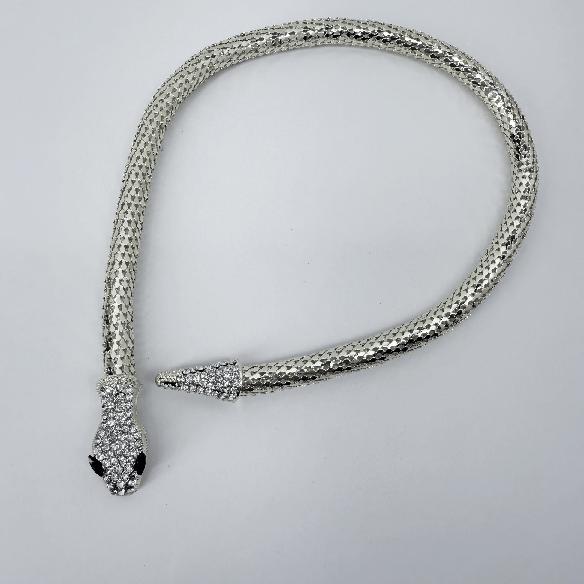 Experience a stunning transformation with our Flexible Snake Design Necklace. This exquisite piece features sparkling rhinestones and a magnetic closure, available in both gold and silver finishes. Elevate your style with this versatile accessory that radiates elegance and sophistication. Get yours today!