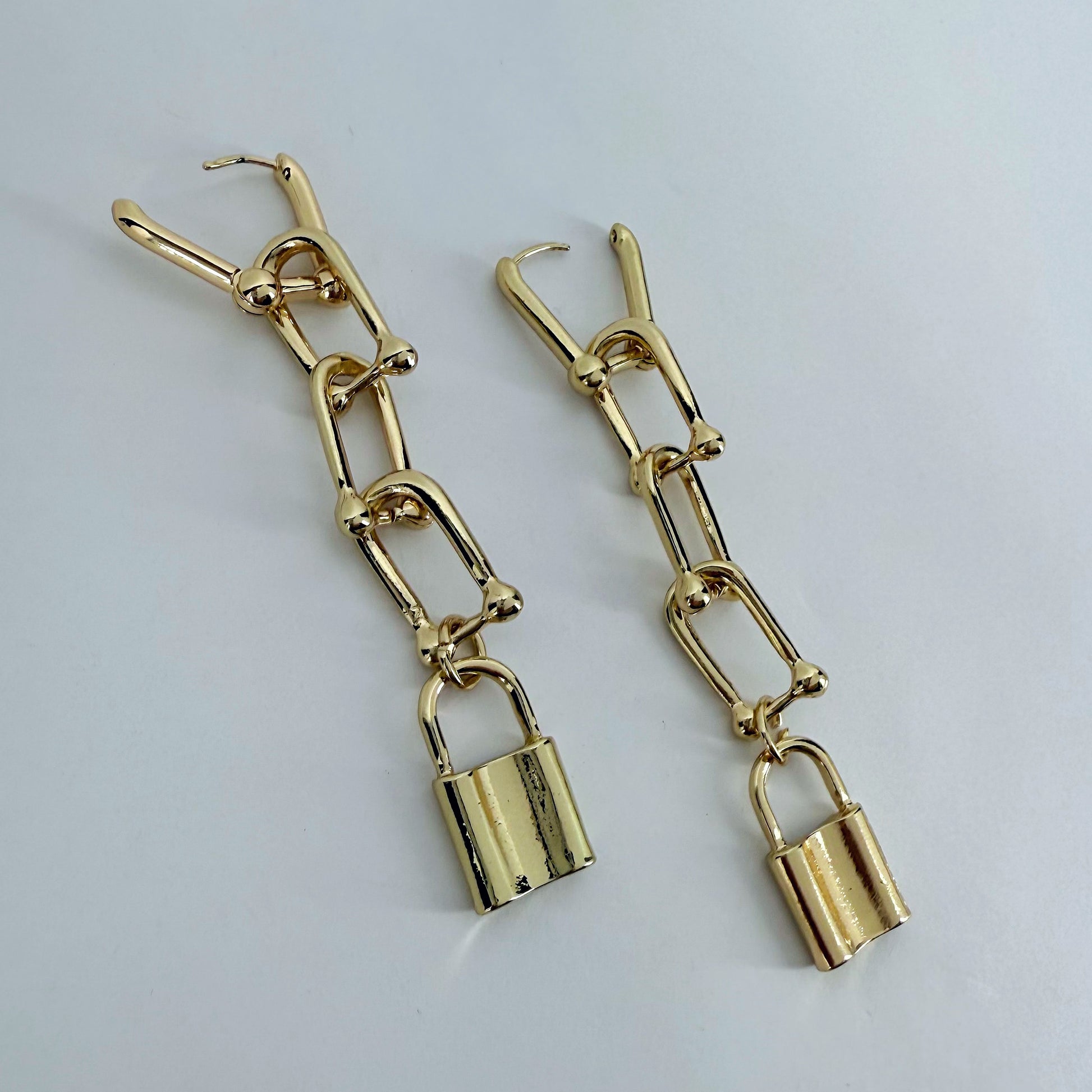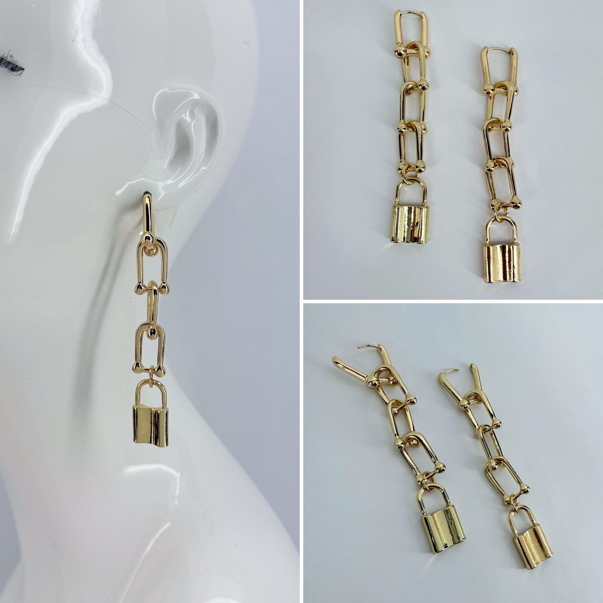 Elevate your style with this gold-finished U link chain featuring a secure hook and a charming lock dangle, combining elegance with a bold statement.