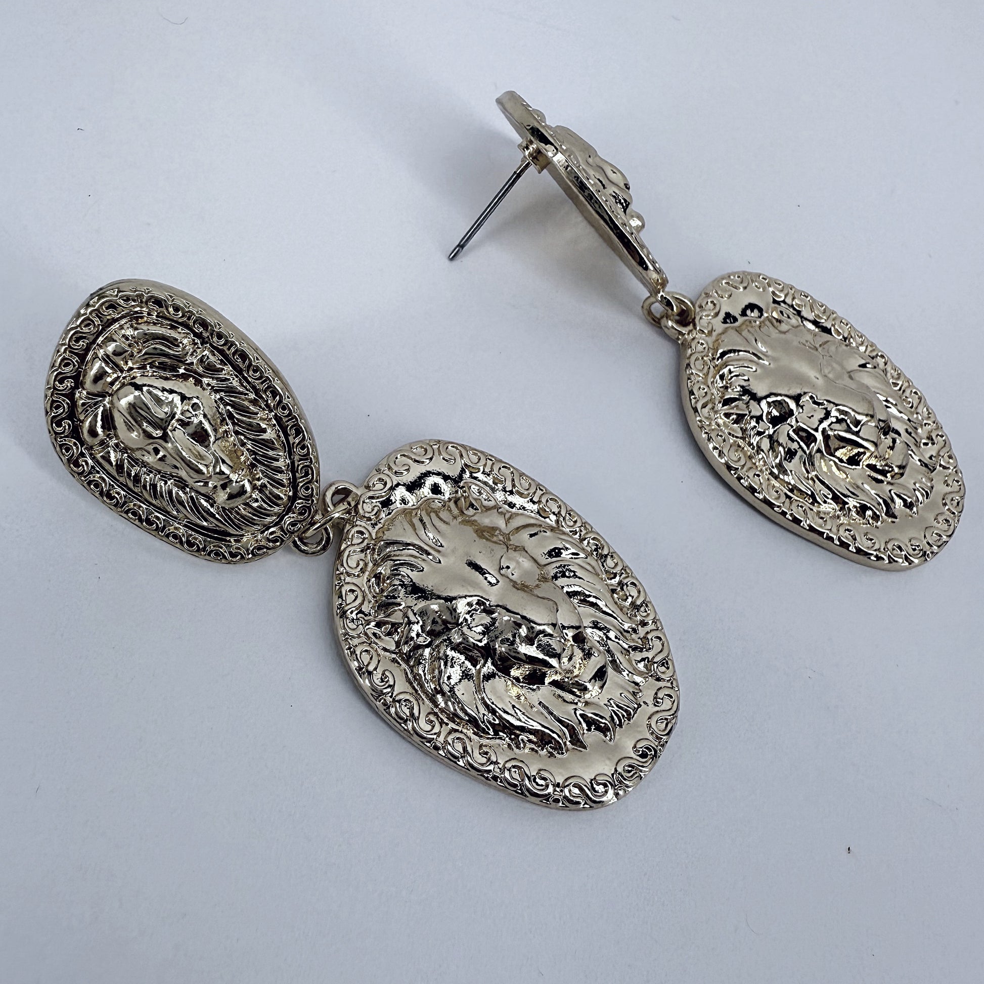 Elevate your style with these striking drop dangle earrings featuring a lion head design, available in gold or silver with secure post backs. Inspired by designer elegance, they add a bold yet refined touch to any outfit.
