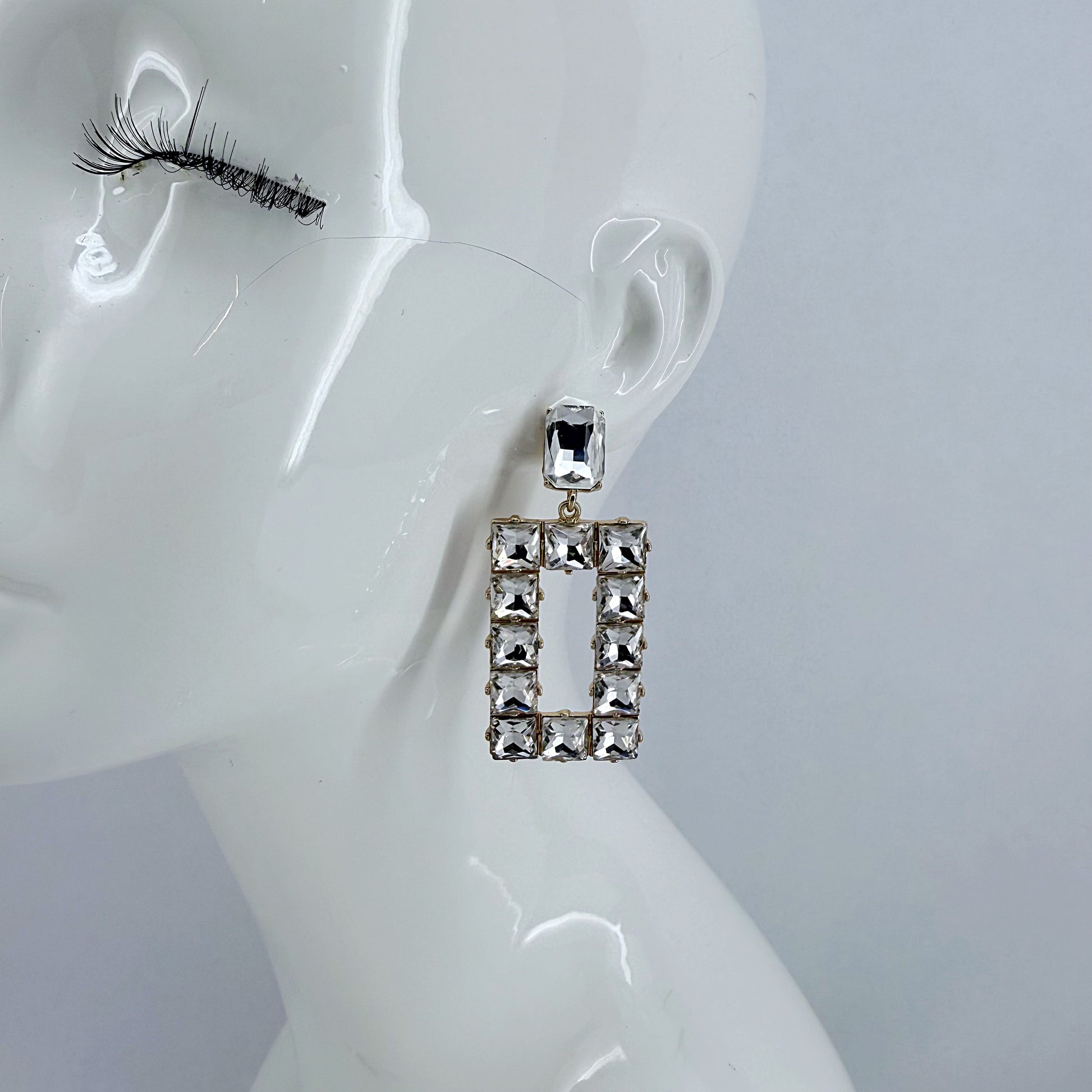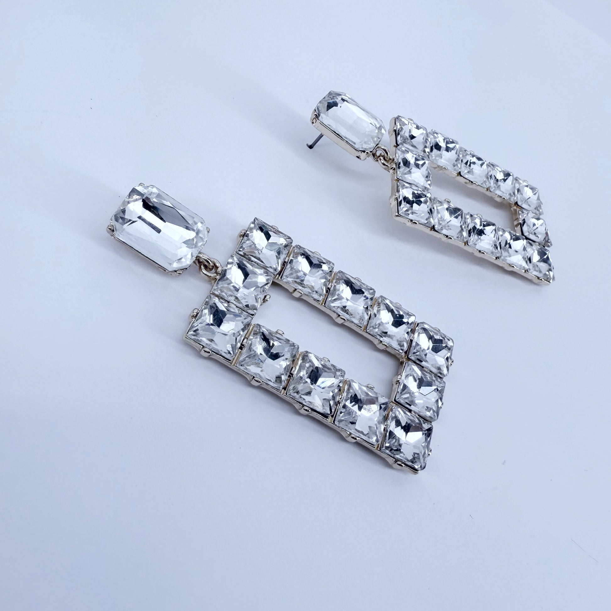 Elevate your look with these elegant rectangle drop earrings, featuring clear rhinestones and a secure post back design for comfortable wear.